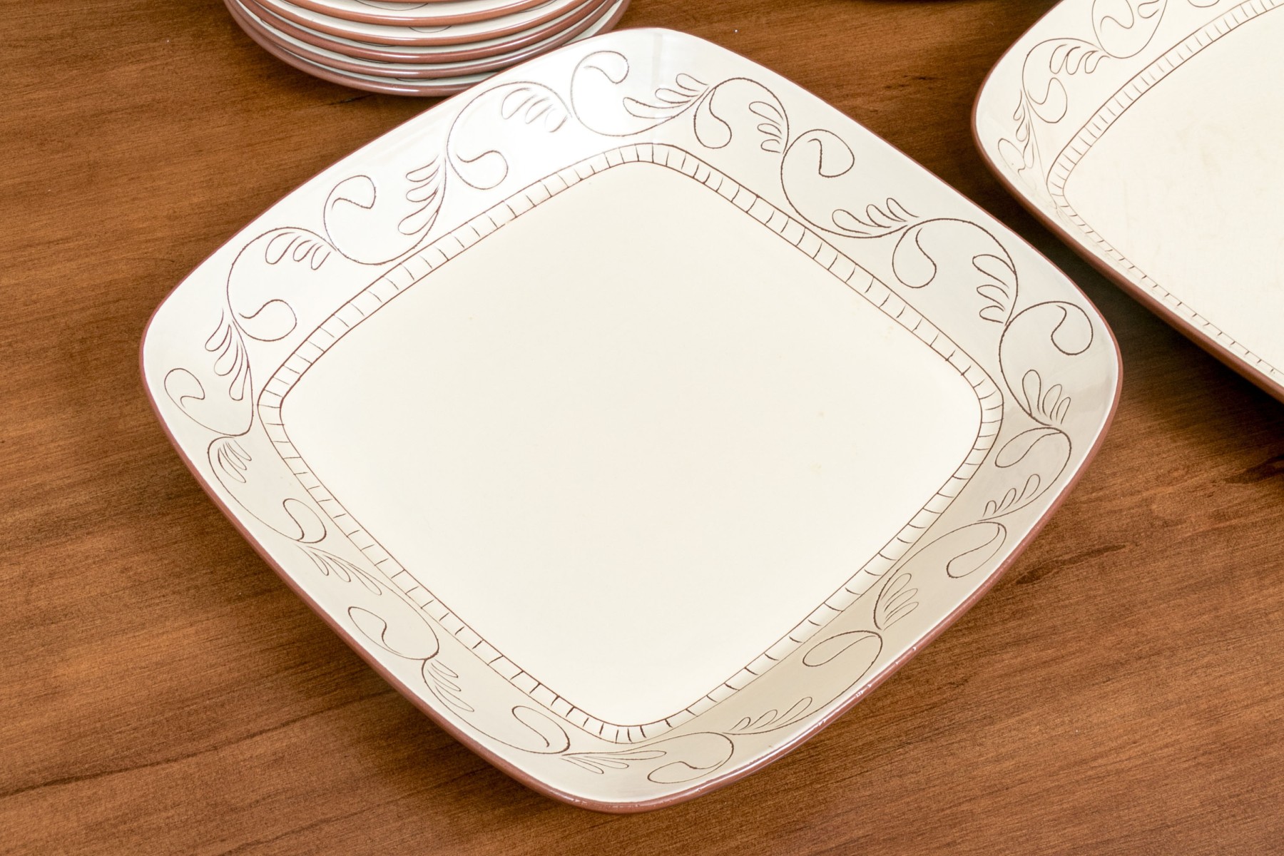 Includes 8 large entree dishes with 9 salad plates, 2 serving bowls.