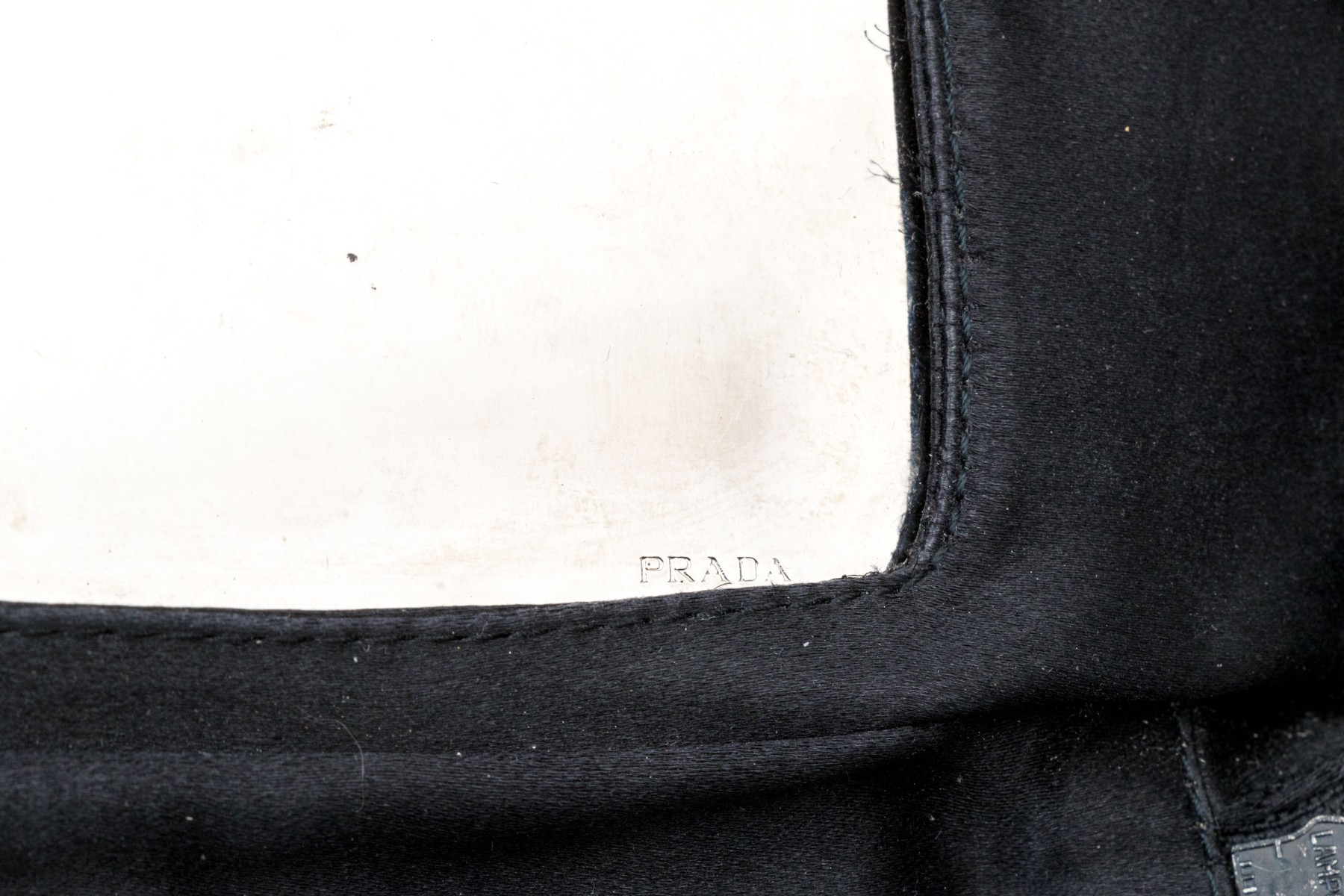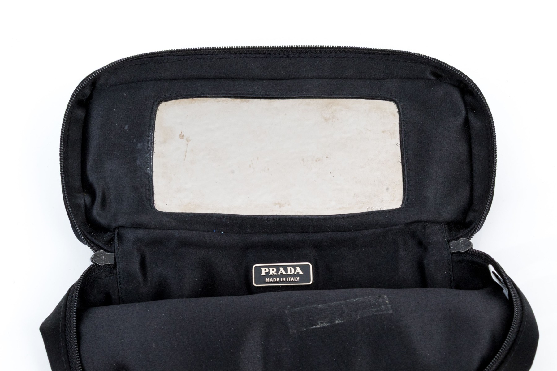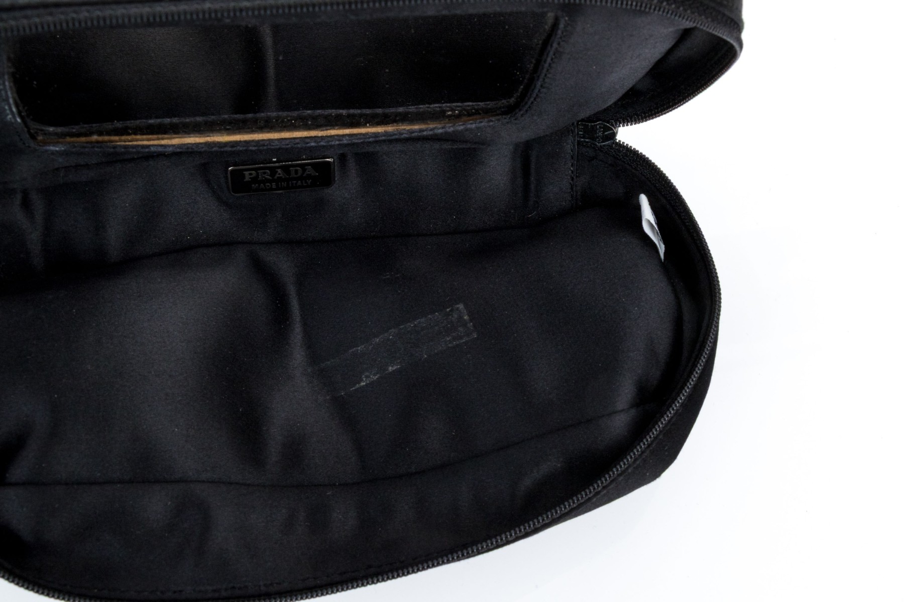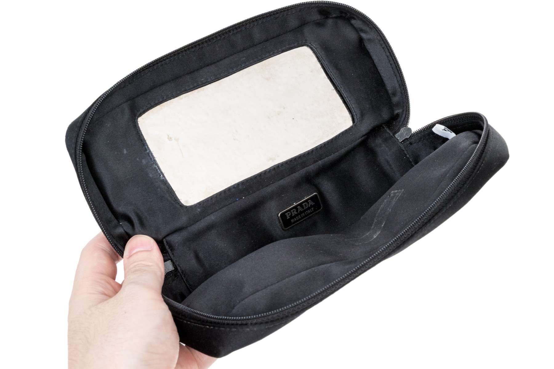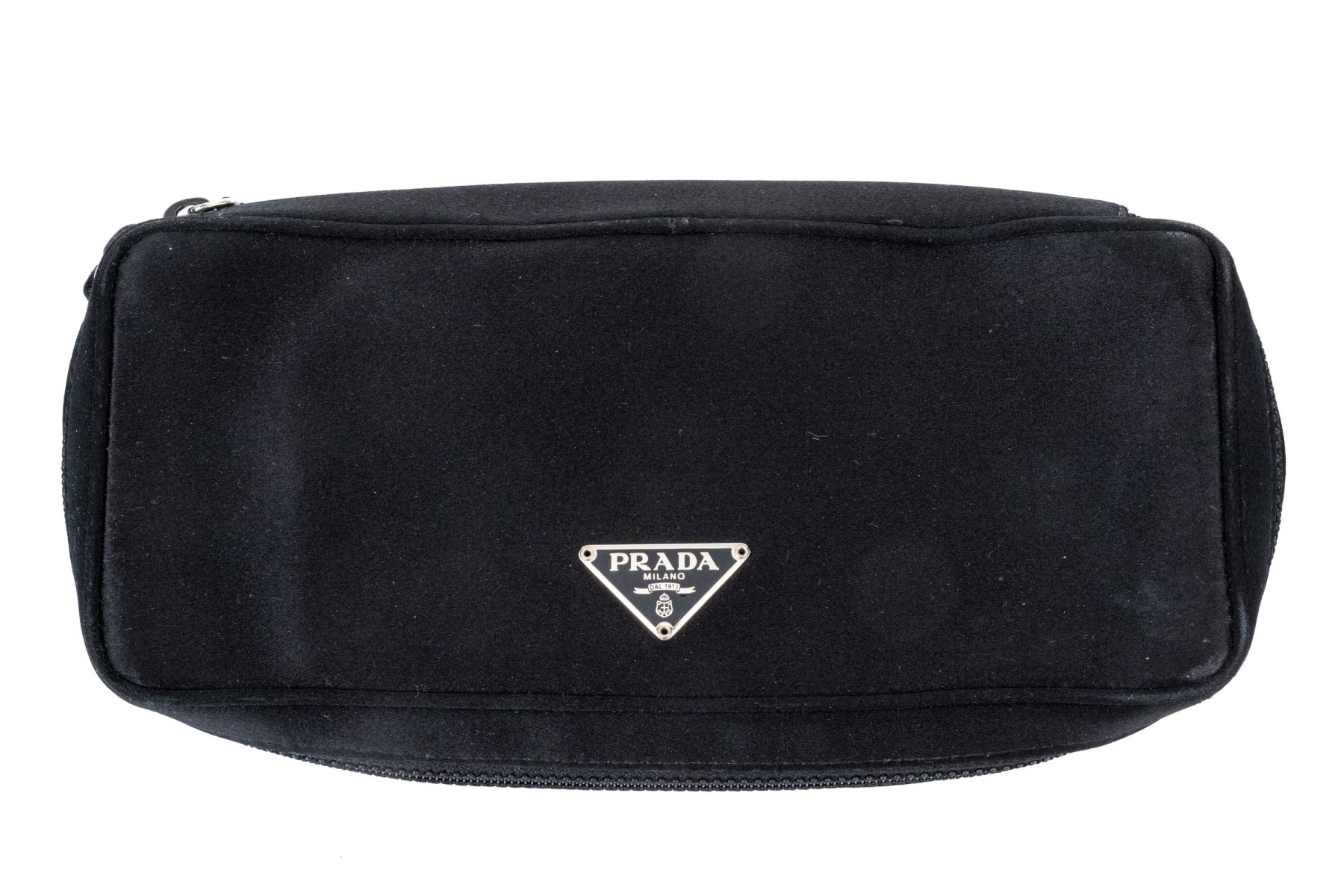 Prada beautiful black silk zip top cosmetics bag, authenticated