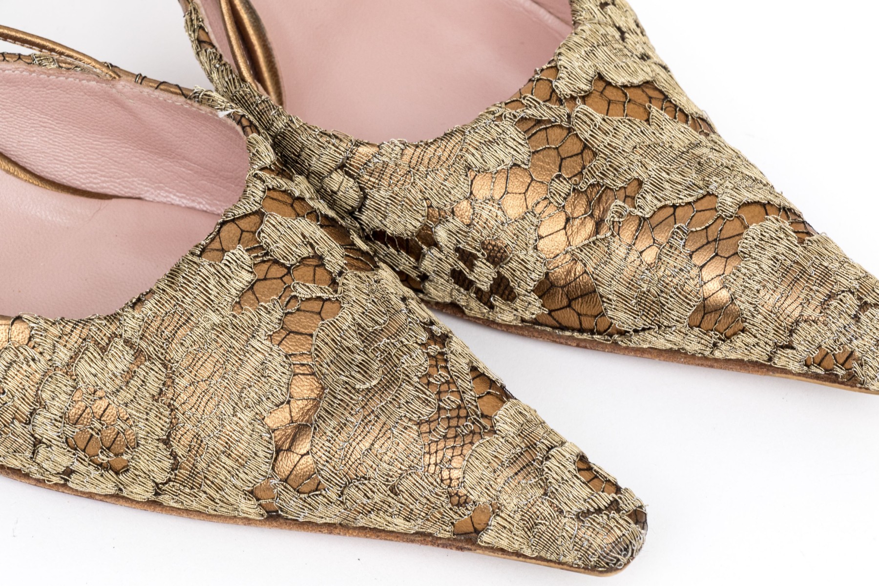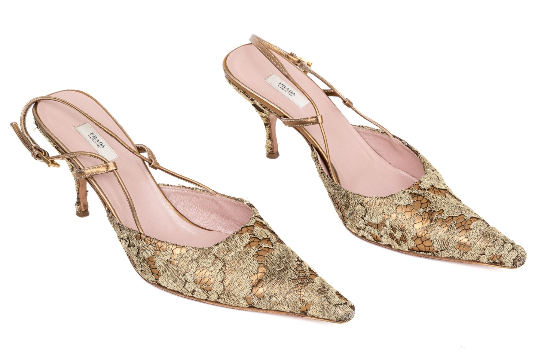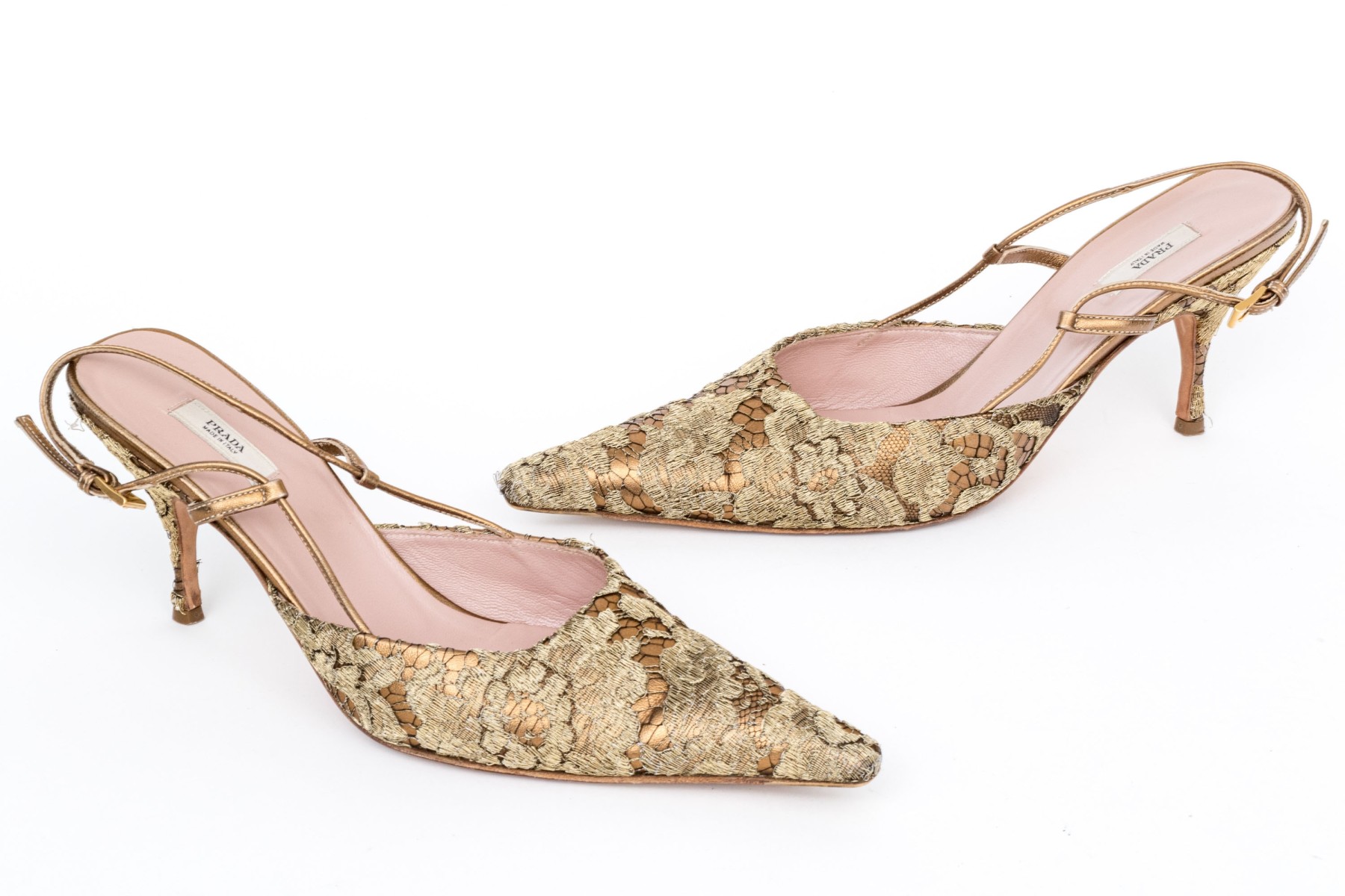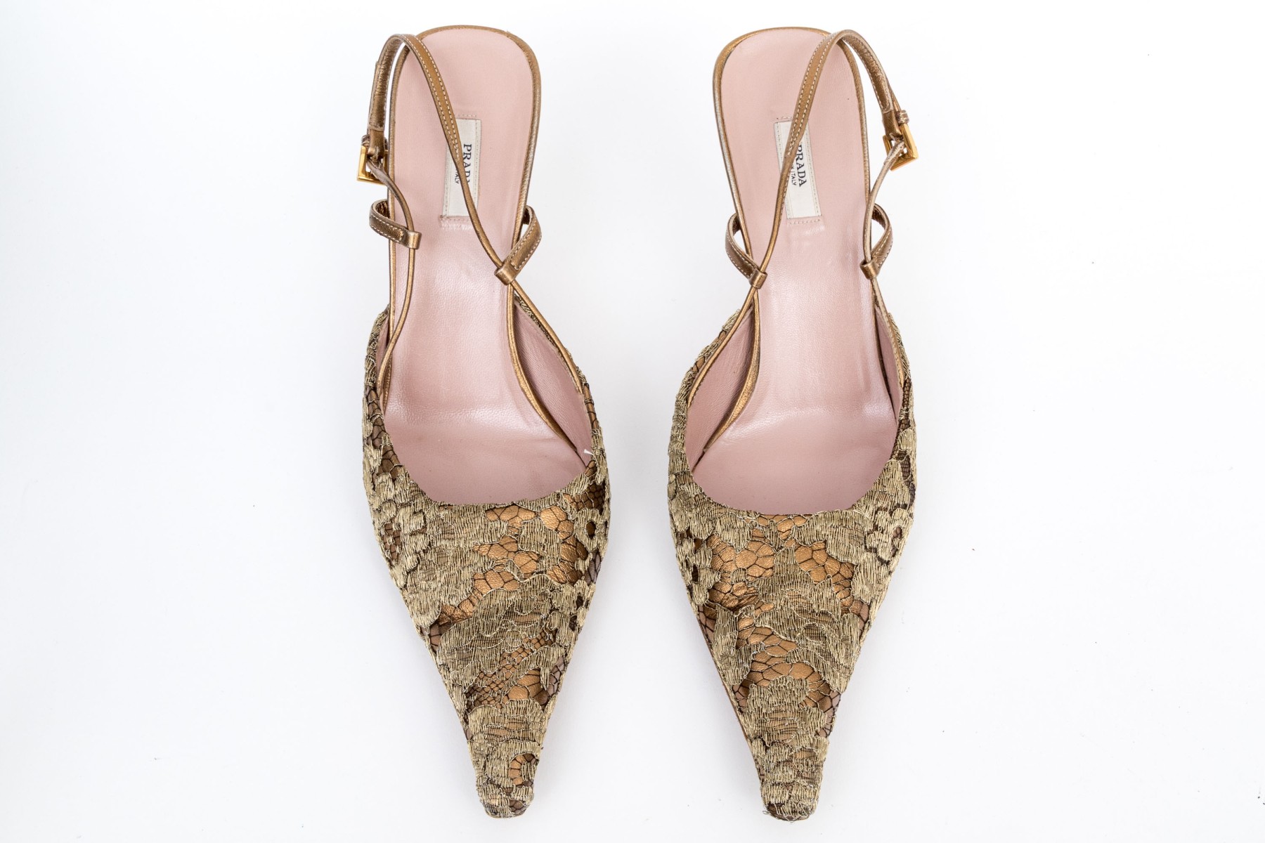 Prada beautiful lace, fabric and leather slingback pumps, size 40