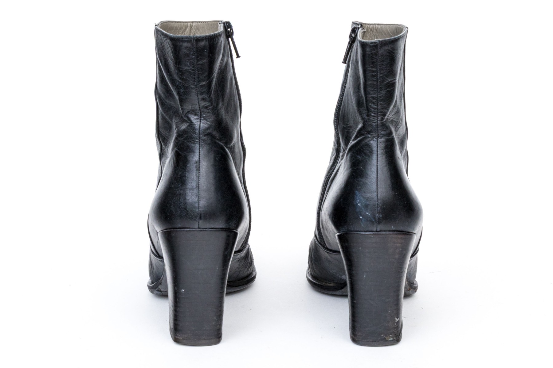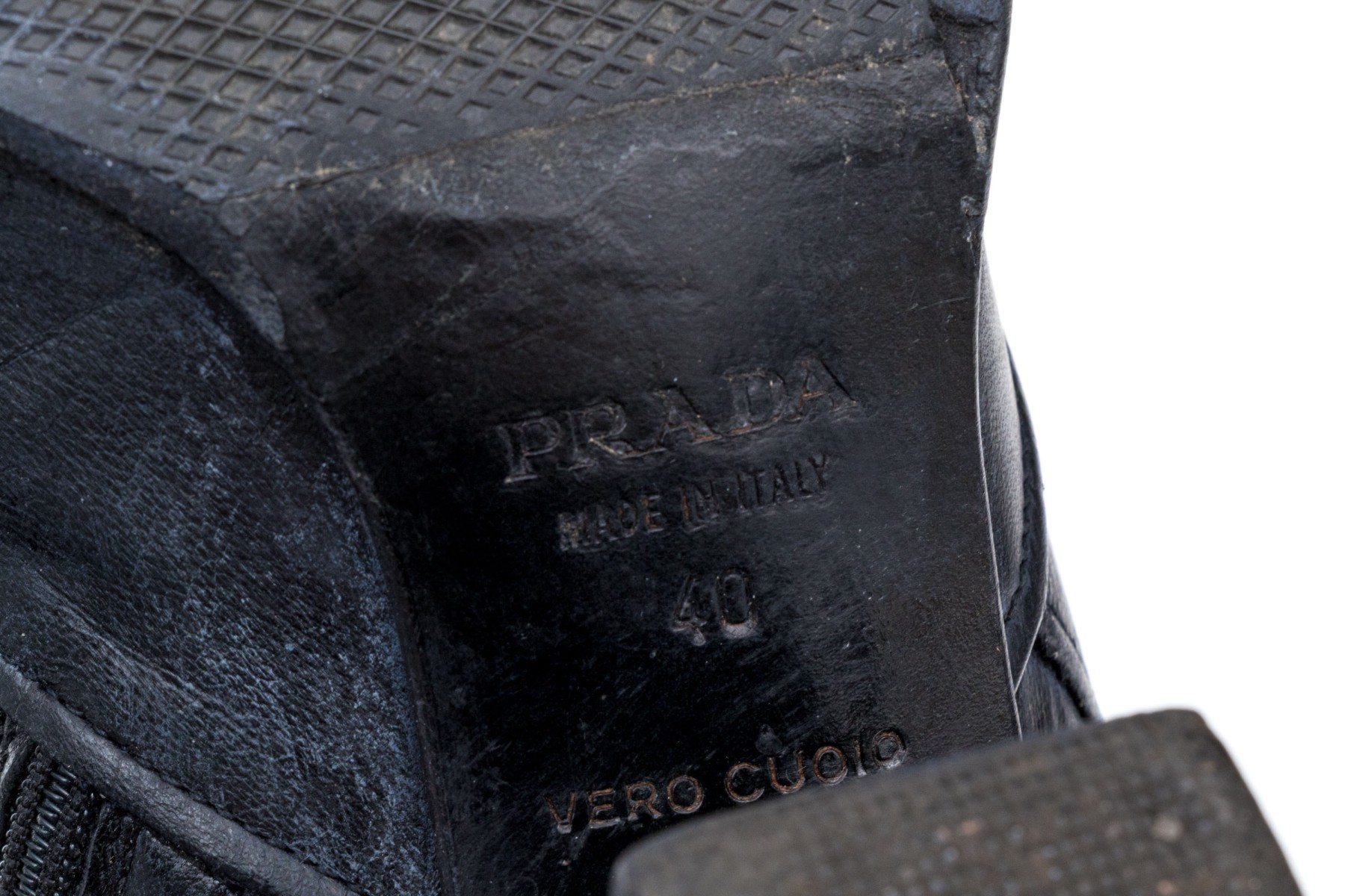 Prada black leather chunky heeled zip up ankle boots, size 40