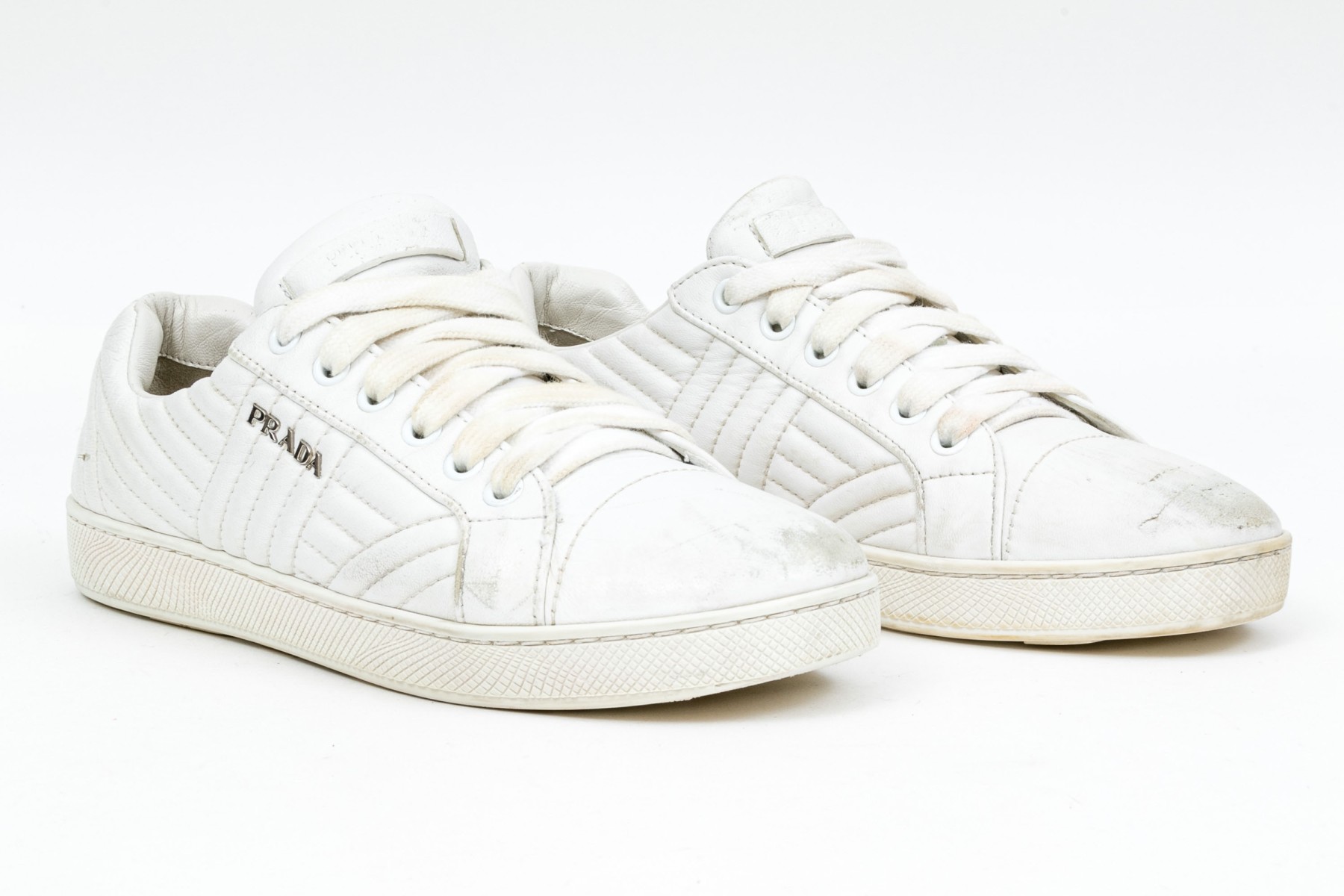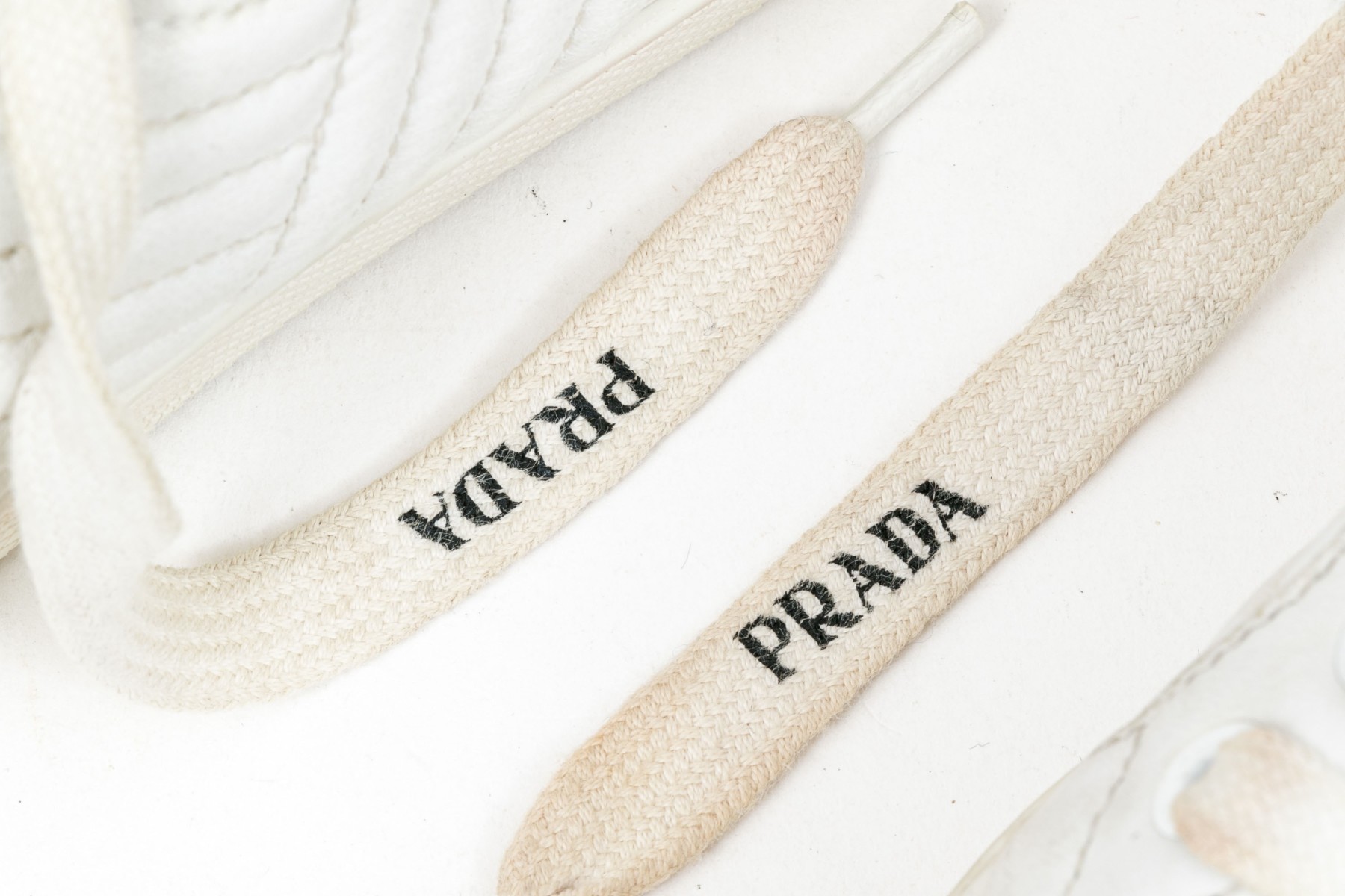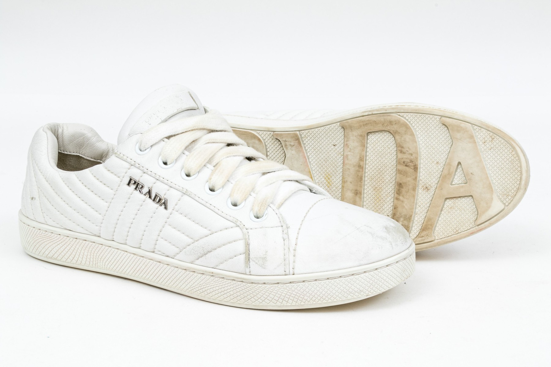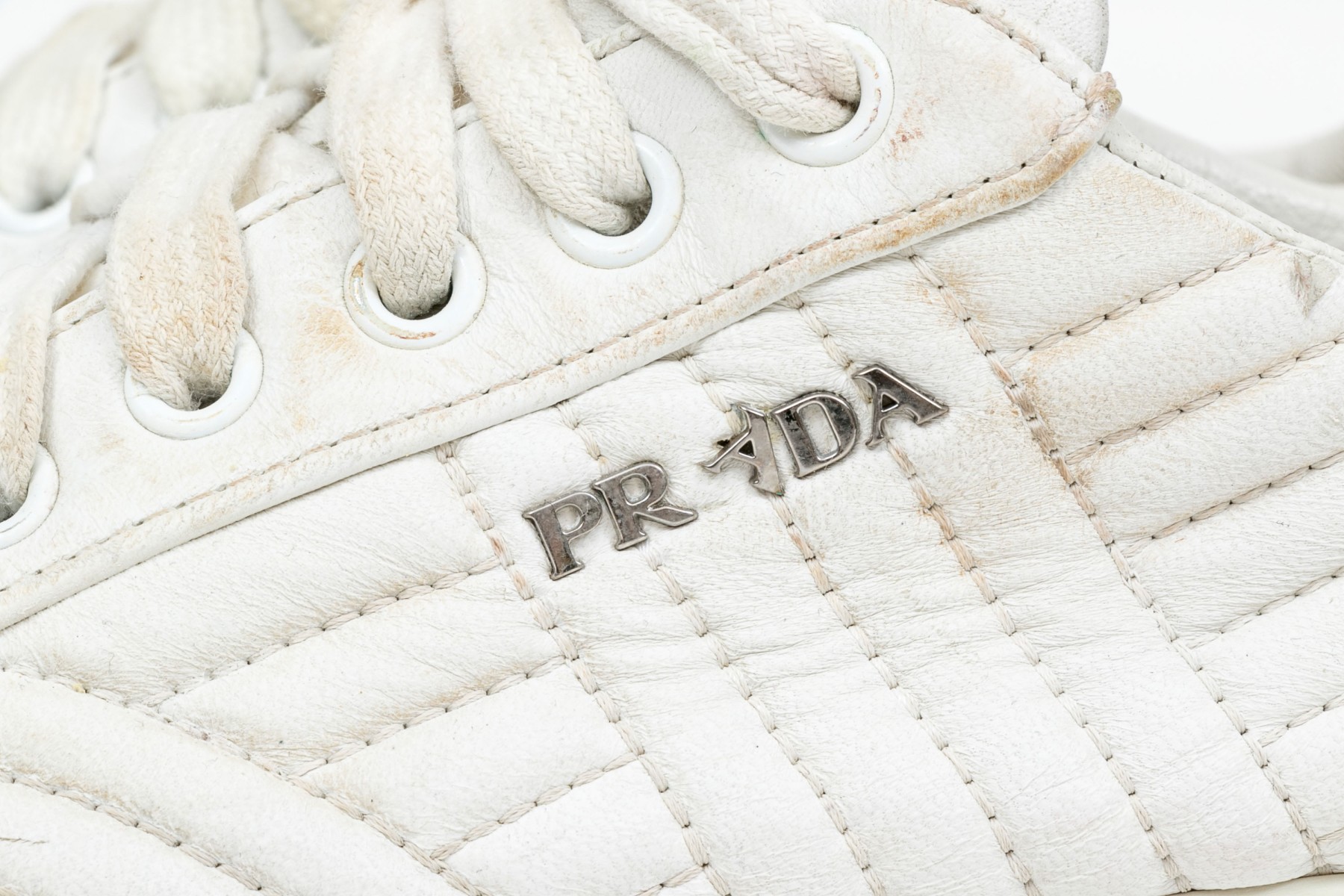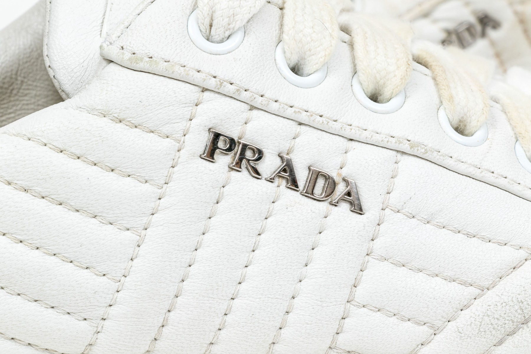 Prada breezy white leather quilted sneakers, size 36 1/2
