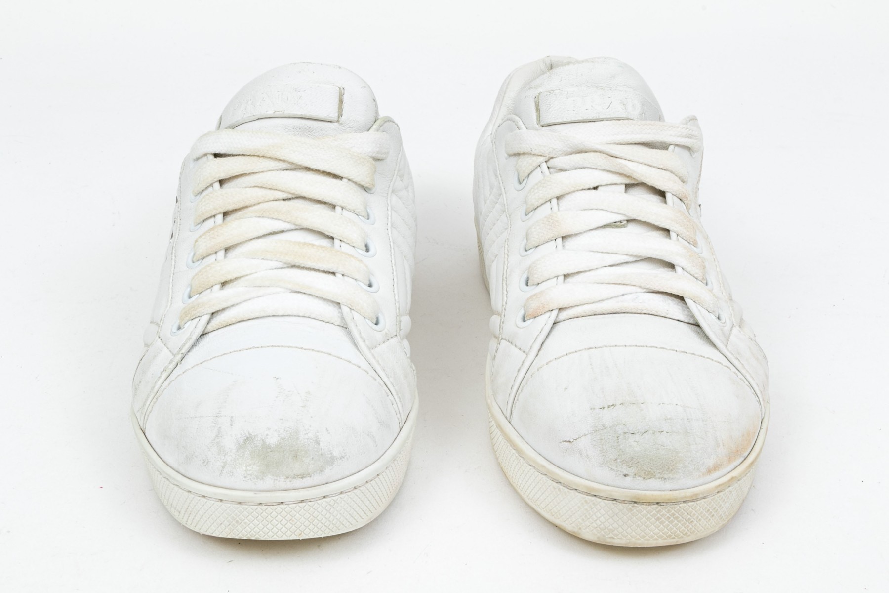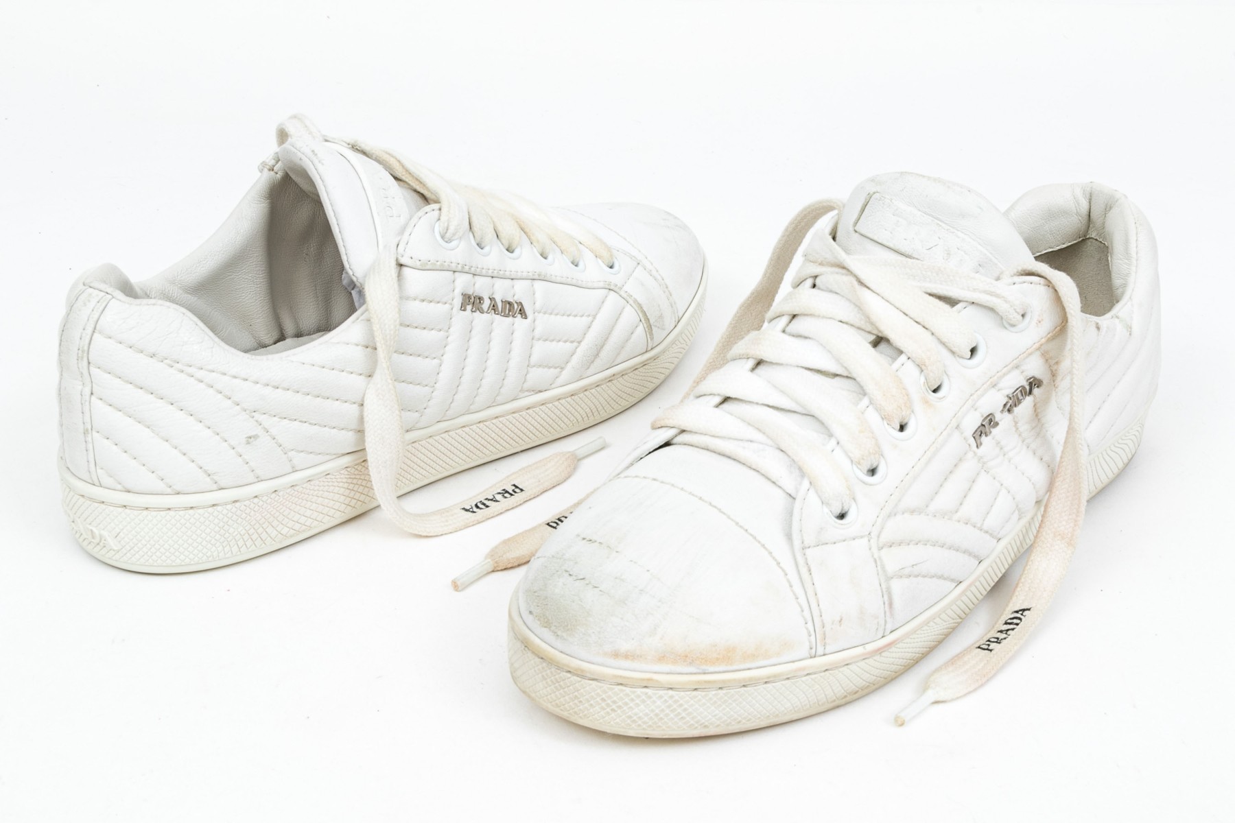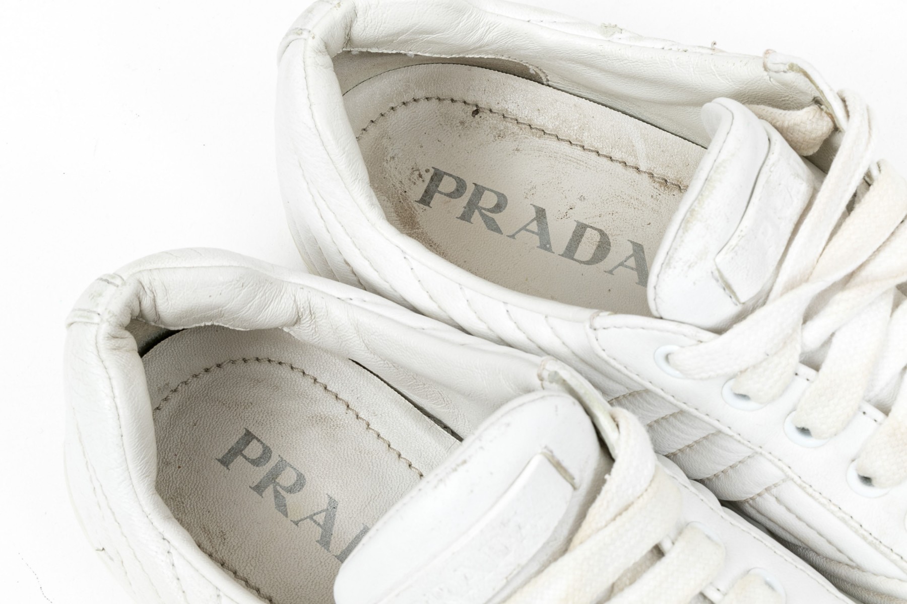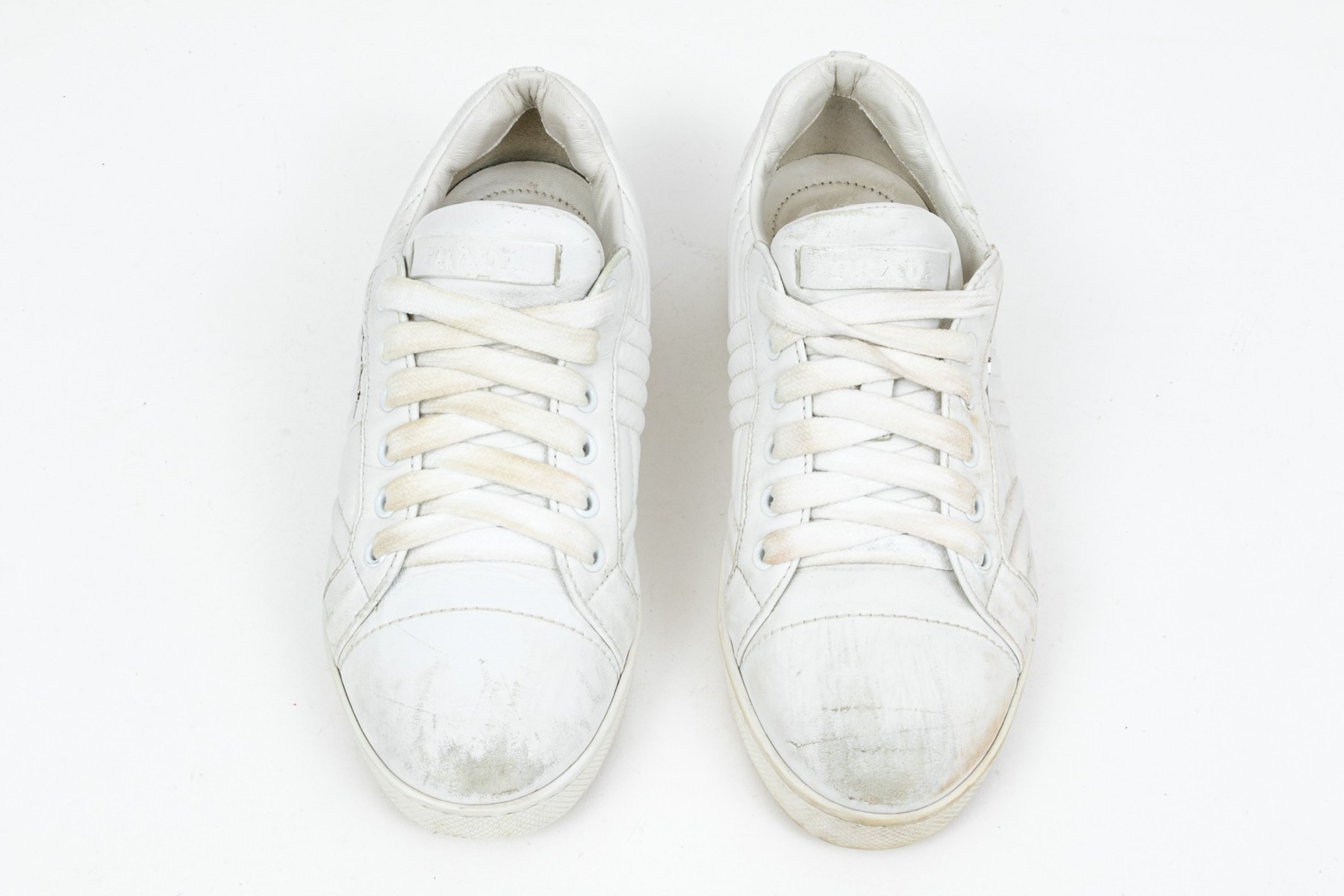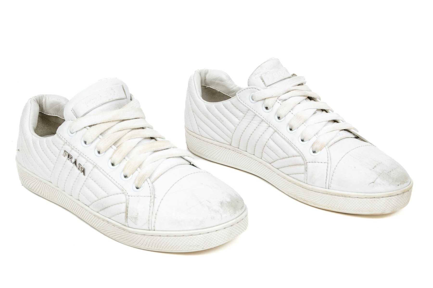 Prada breezy white leather quilted sneakers, size 36 1/2