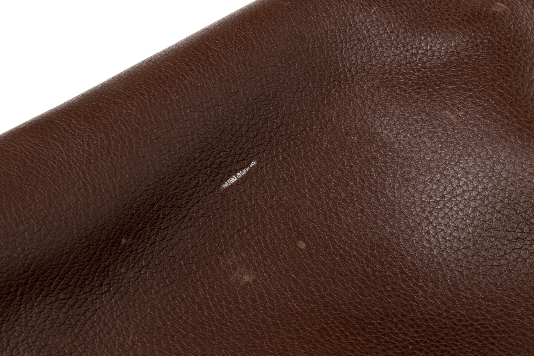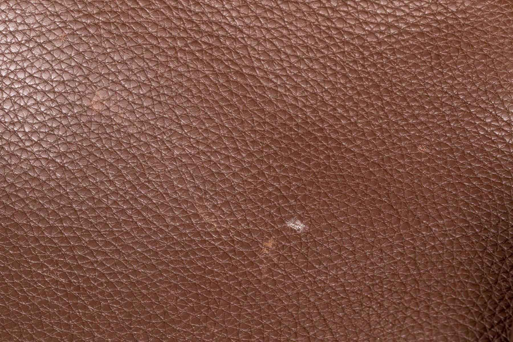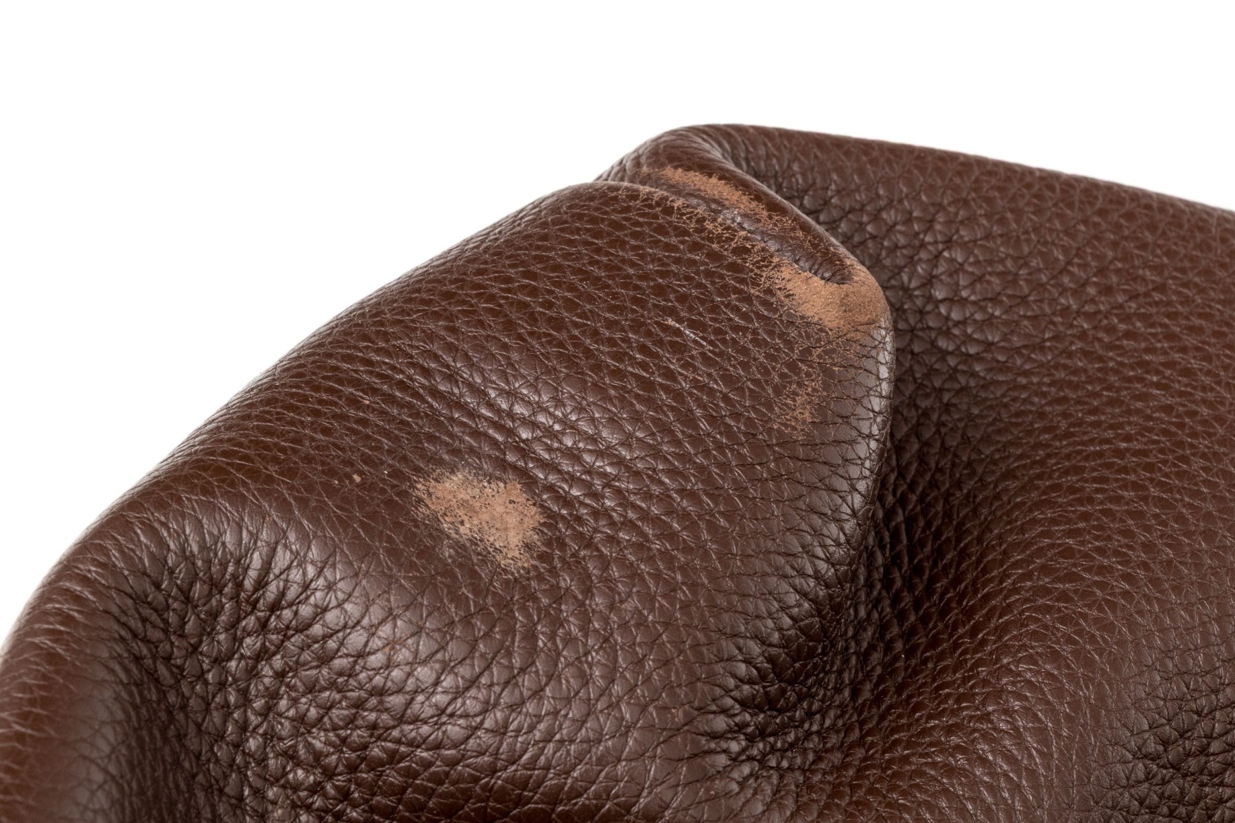 Condition: Overall good condition with wear consistent with use. Exterior leather shows scuffs, scratches, and areas of discoloration. Corners and edges show rubbing. Interior lining shows light soiling and signs of wear. Hardware remains bright with minor surface marks.