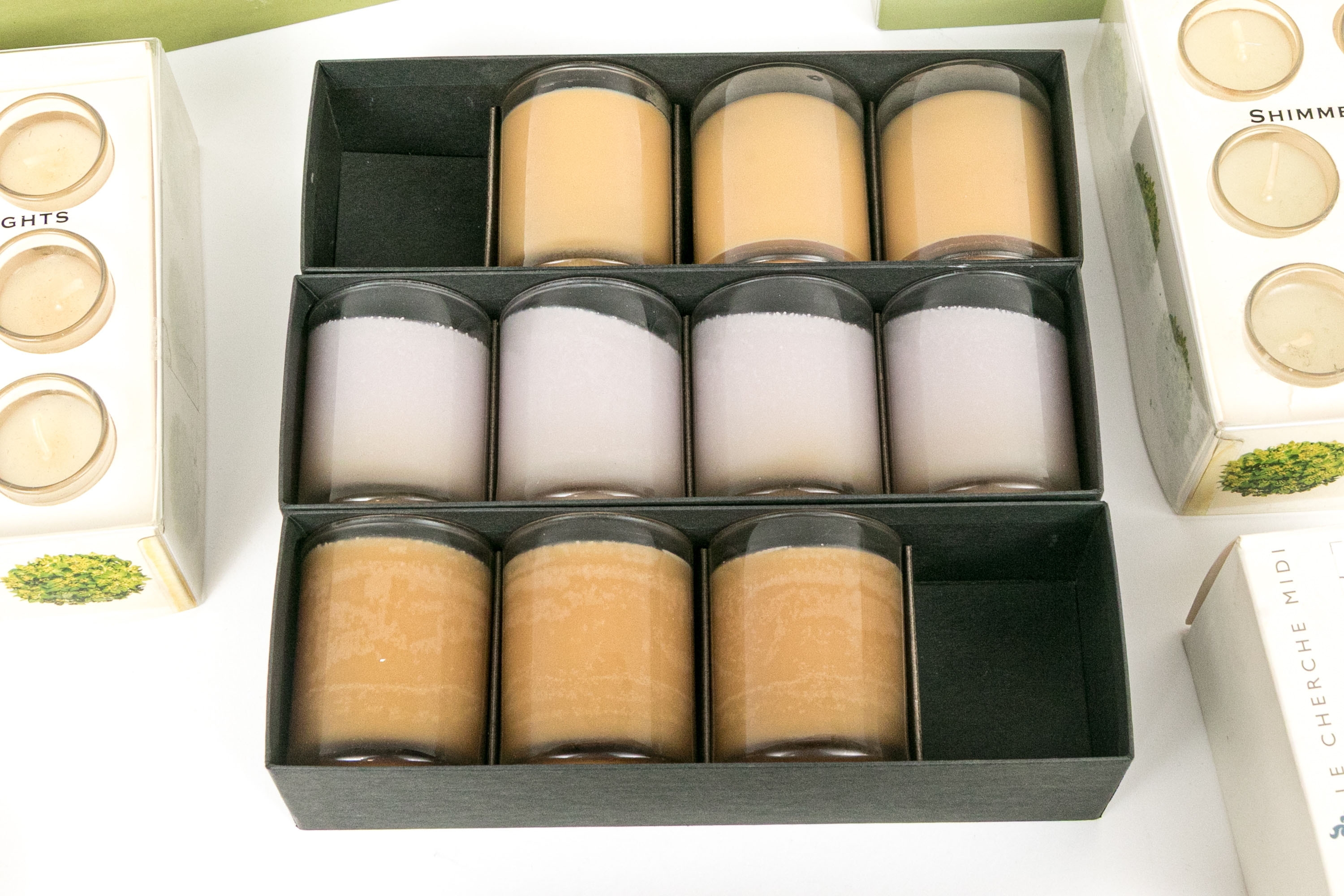 Comprised of a variety of scented, perfumed candles and votive lights.