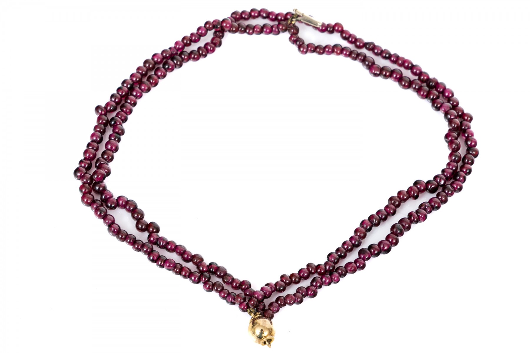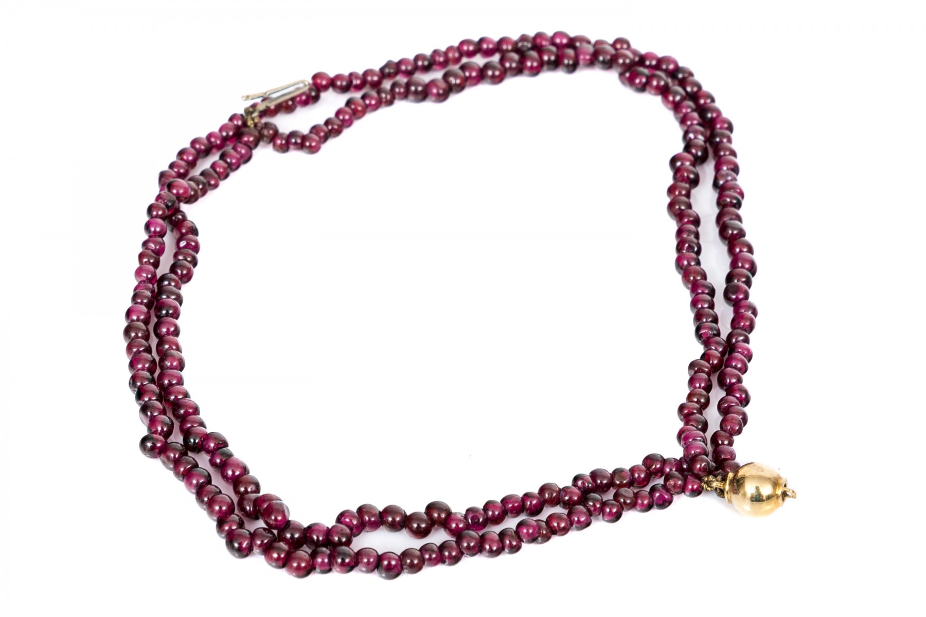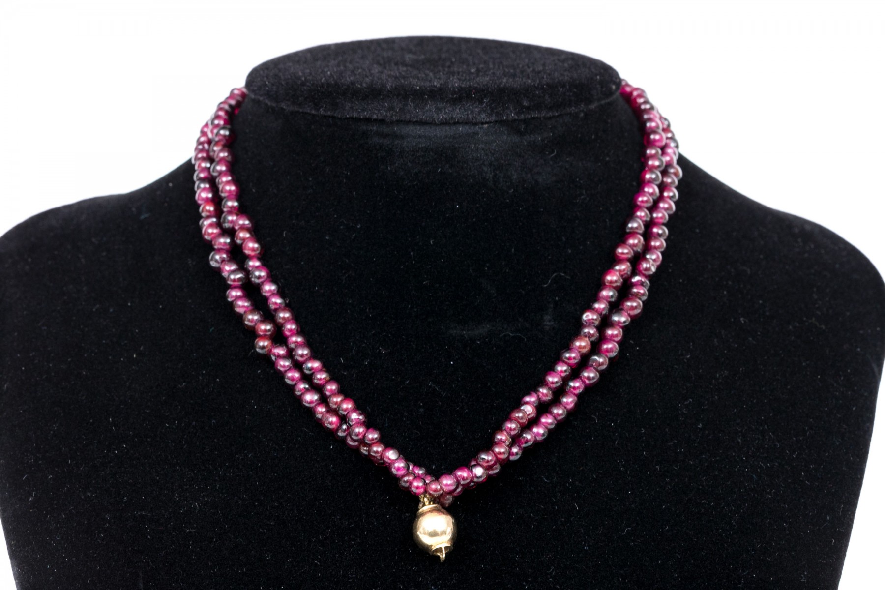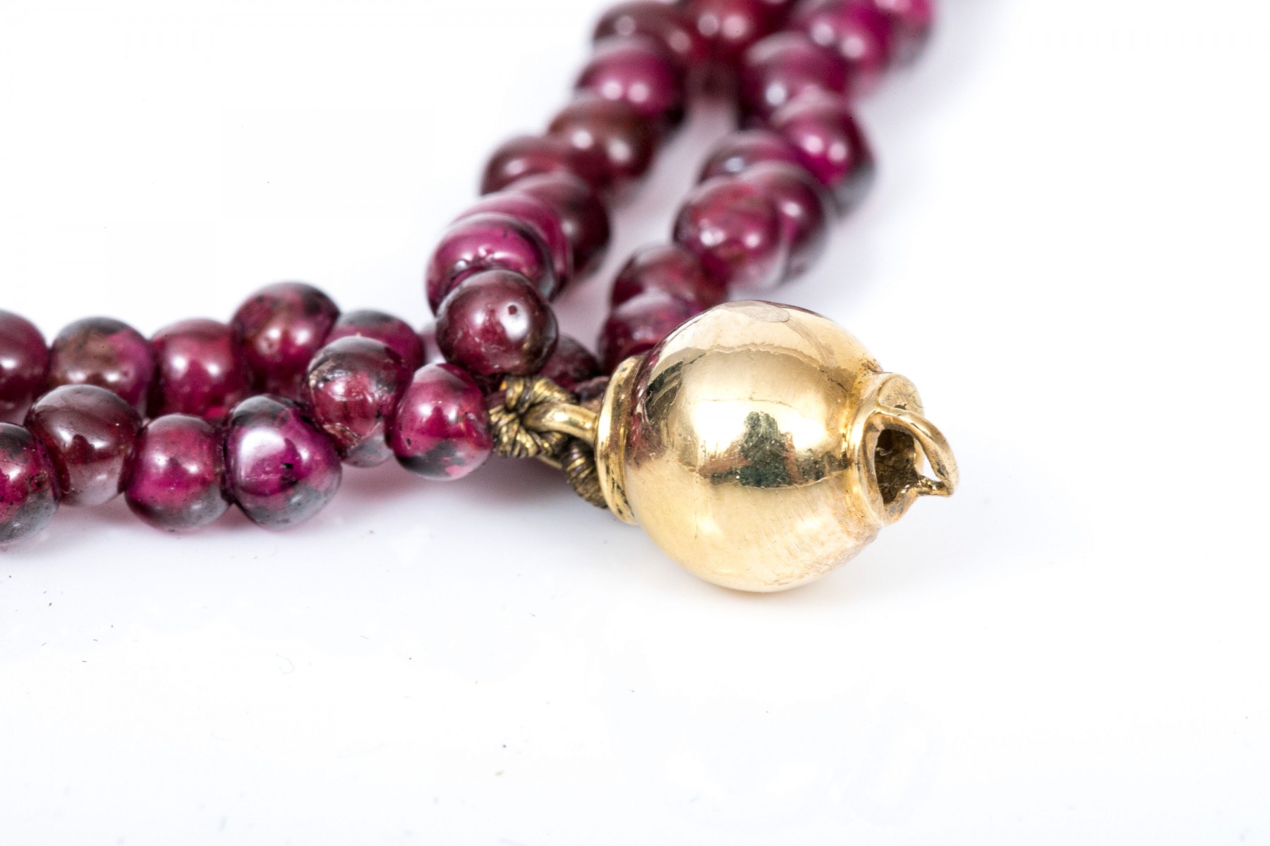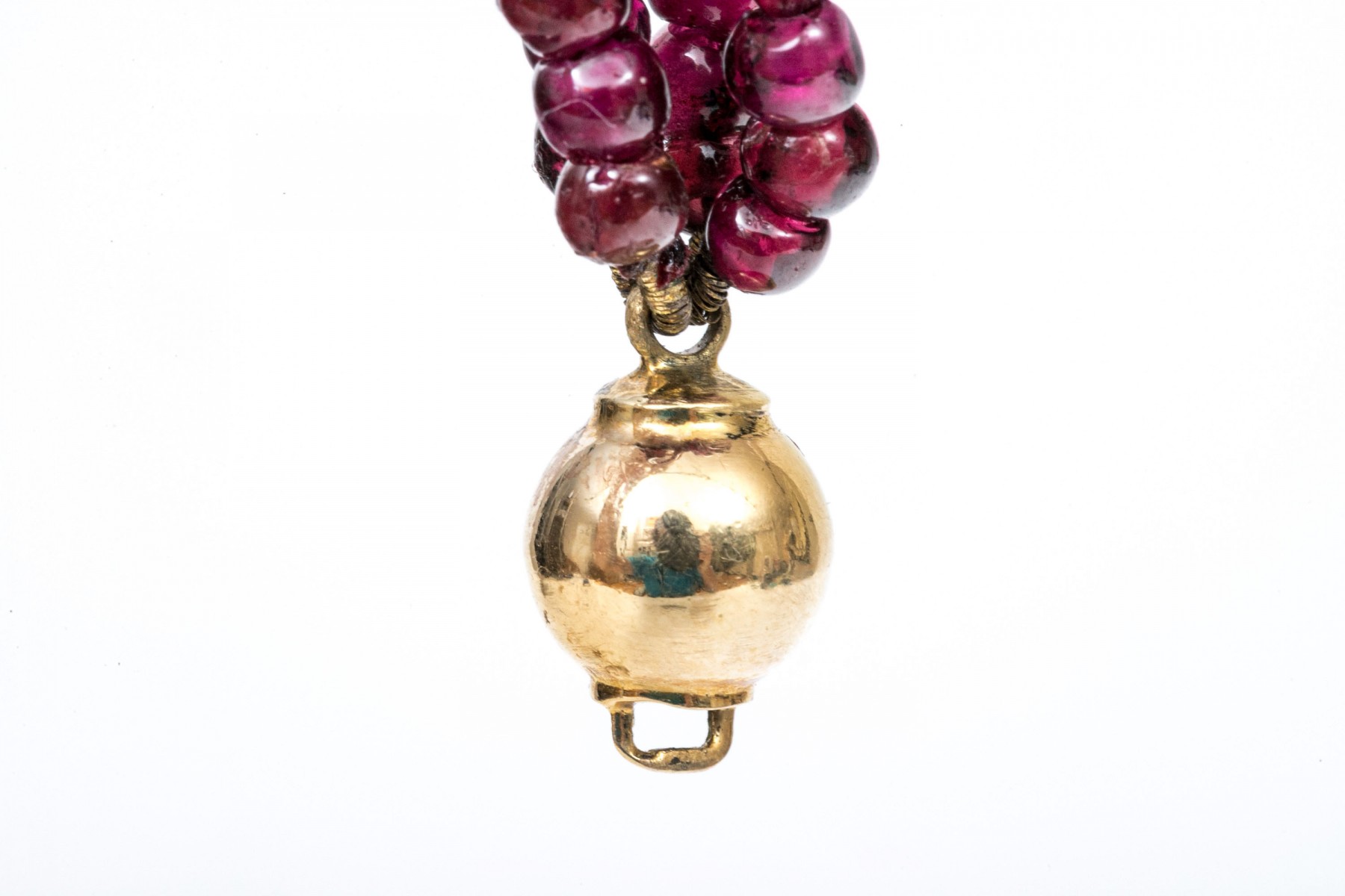 Pretty four strand garnet bead torsade bracelet, with a 14k yellow gold ball style bead clasp, short length