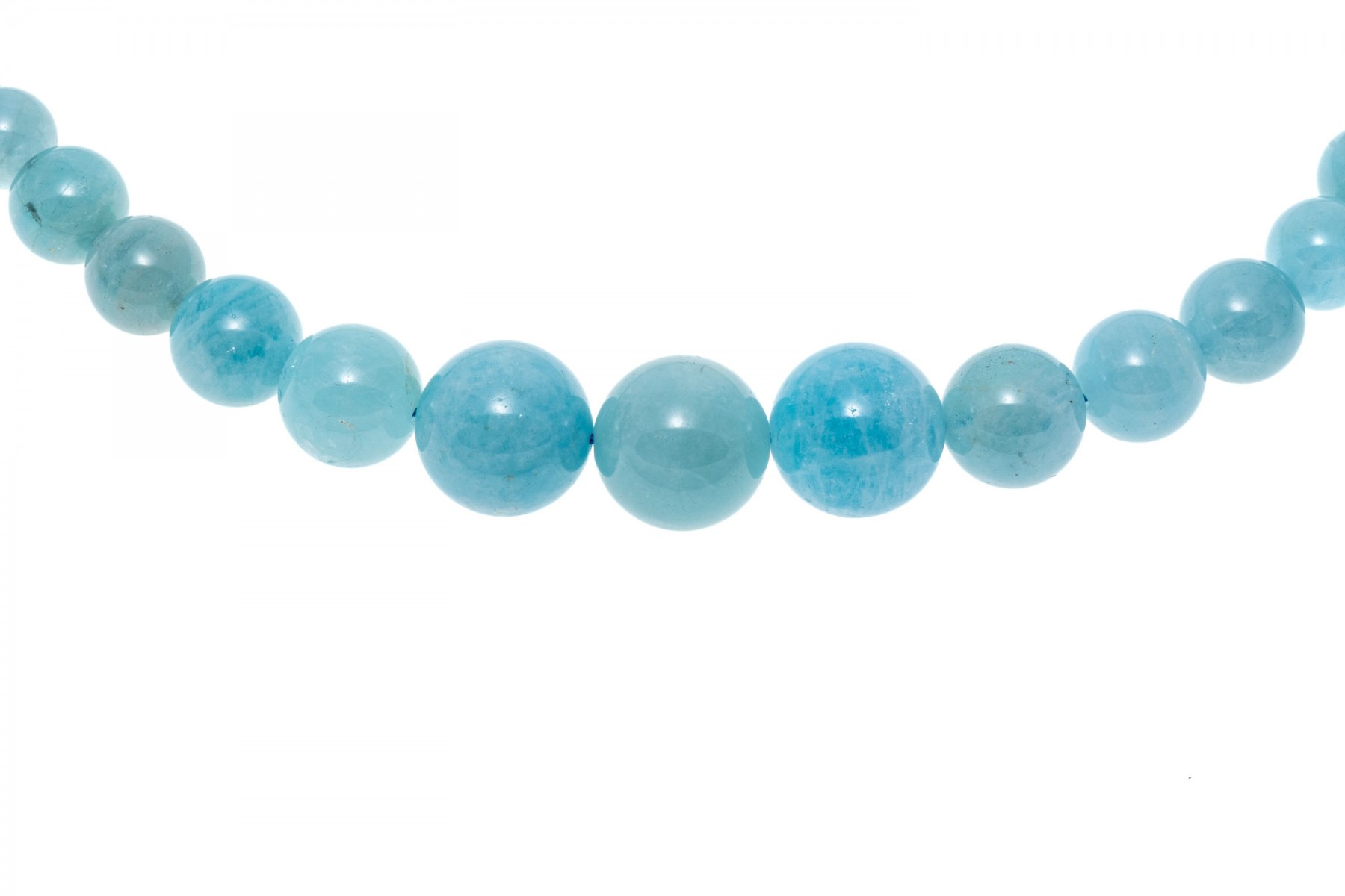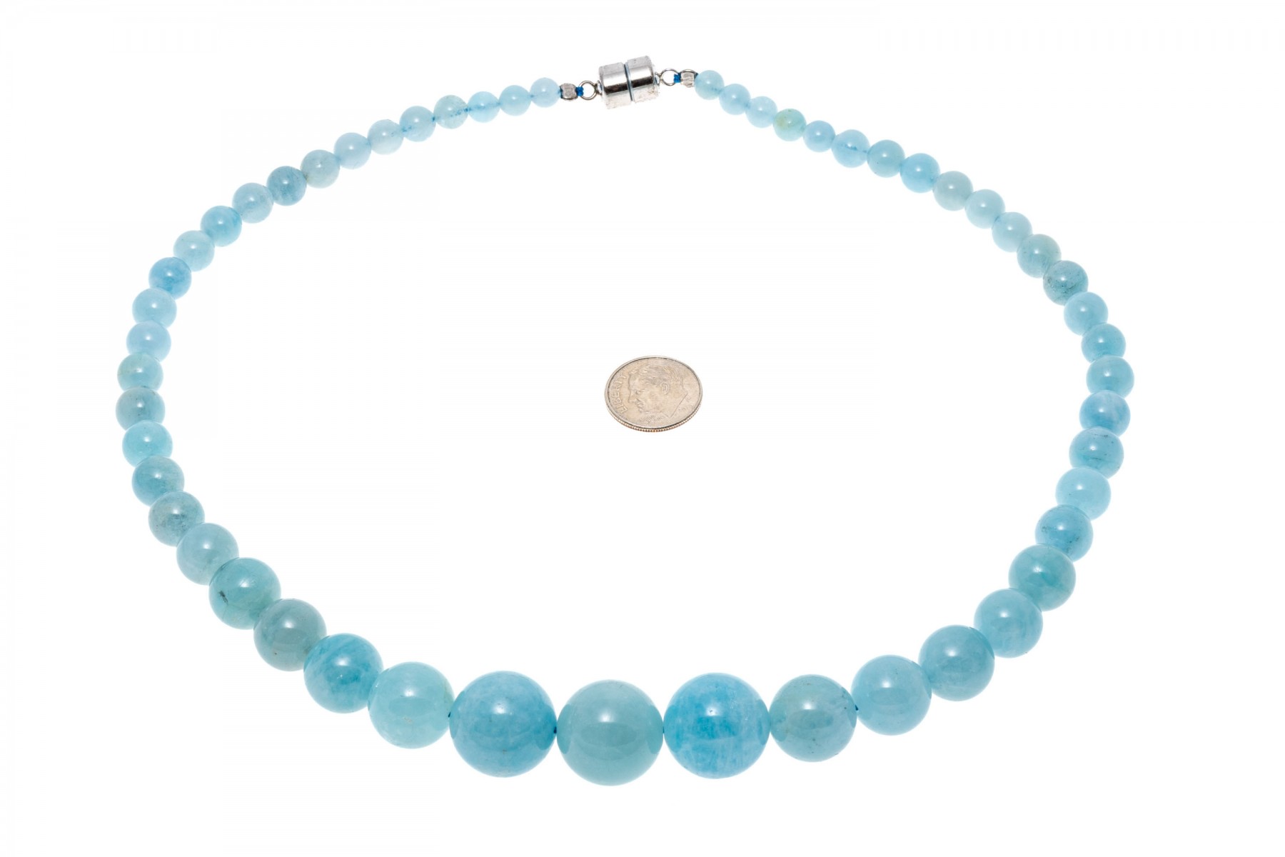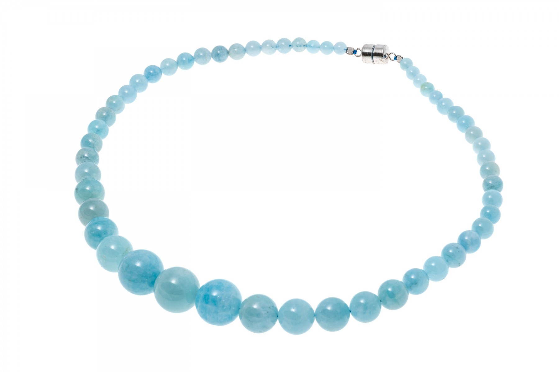 Bead necklace. This pretty necklace features a strand of 6 mm to 17 mm, opaque pale blue color larimar beads, finished with a magnetic clasp