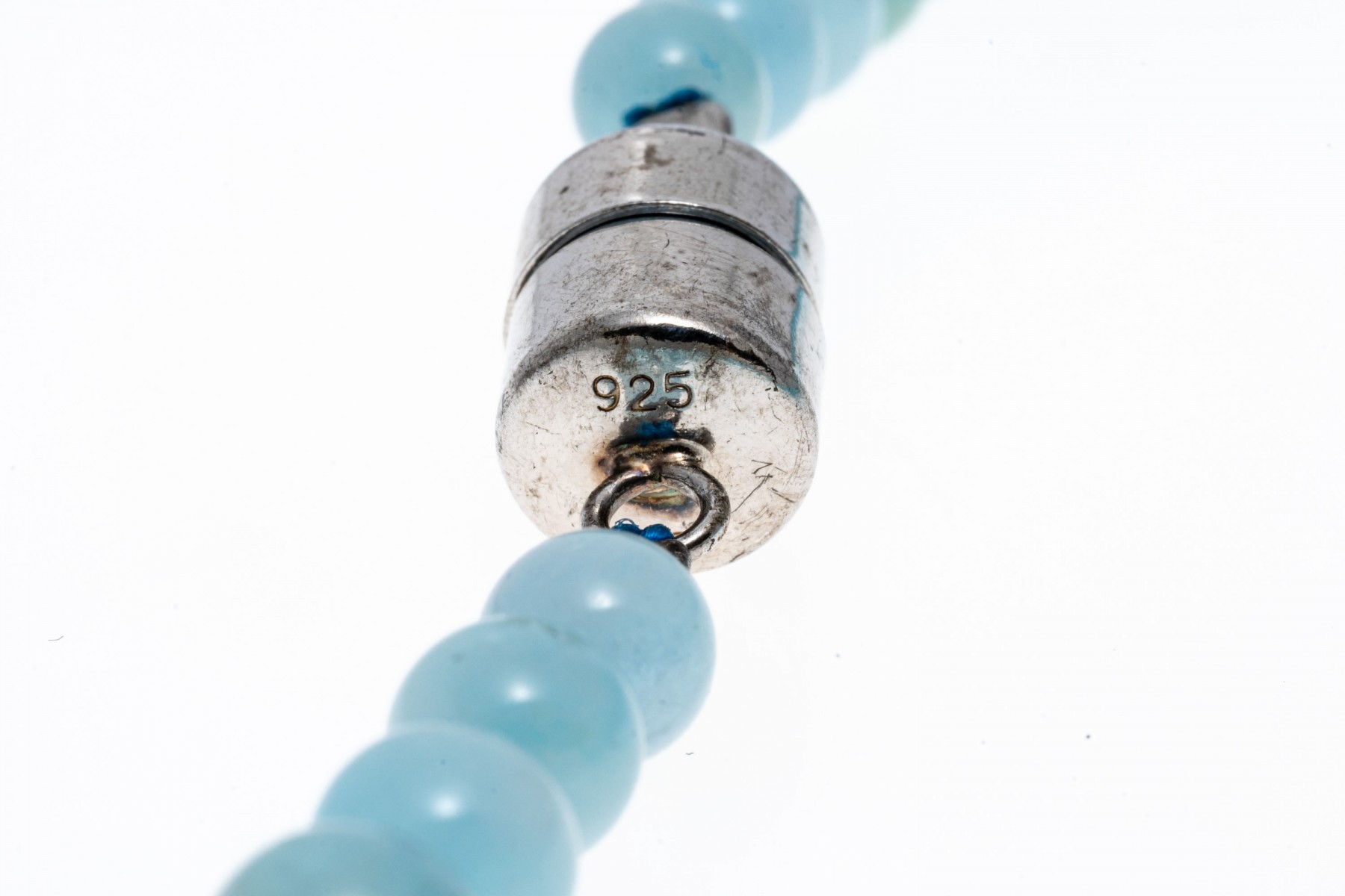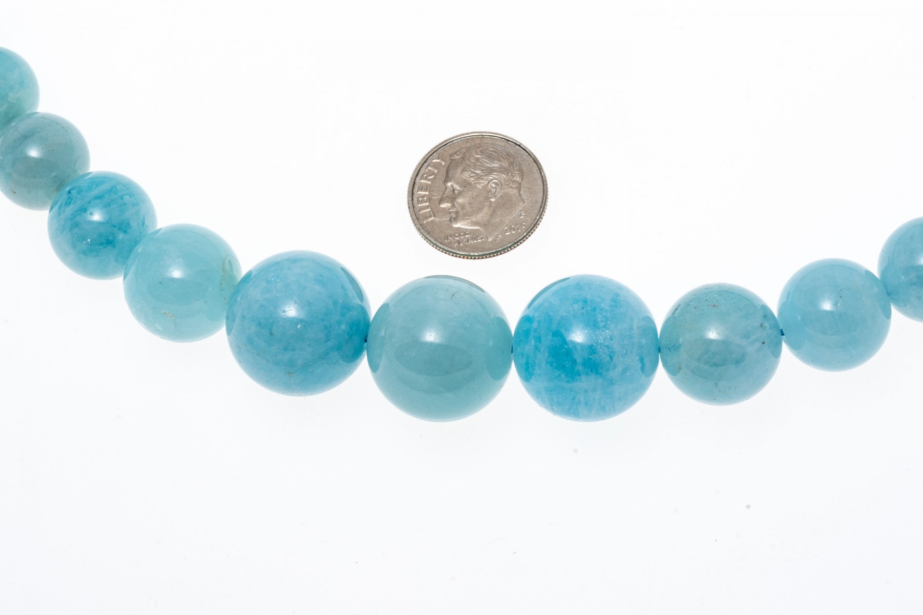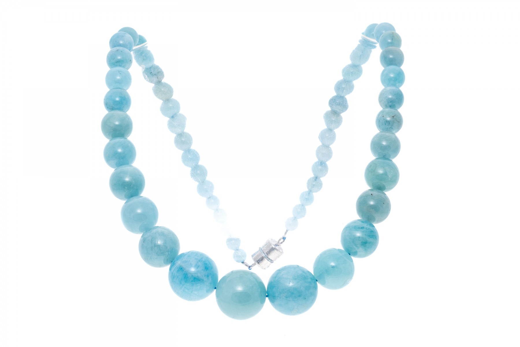 Bead necklace. This pretty necklace features a strand of 6 mm to 17 mm, opaque pale blue color larimar beads, finished with a magnetic clasp