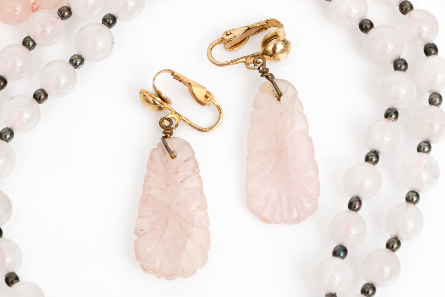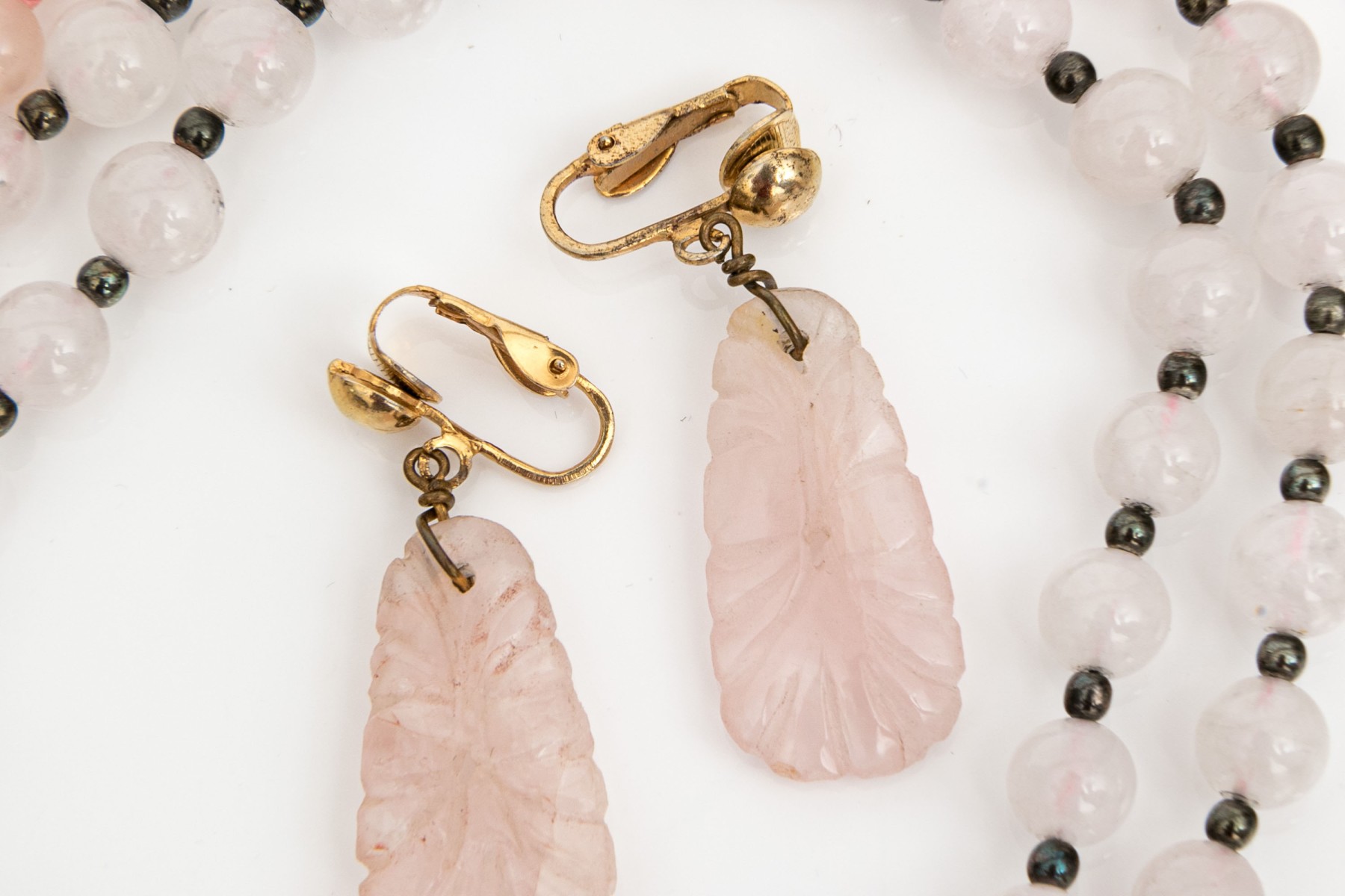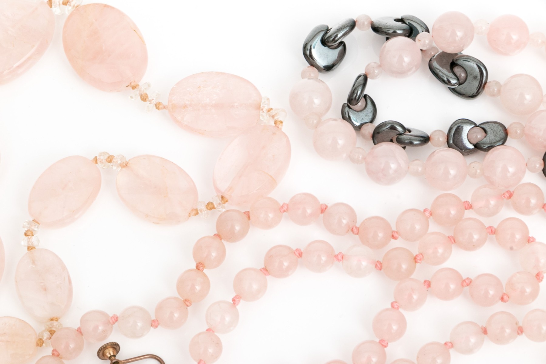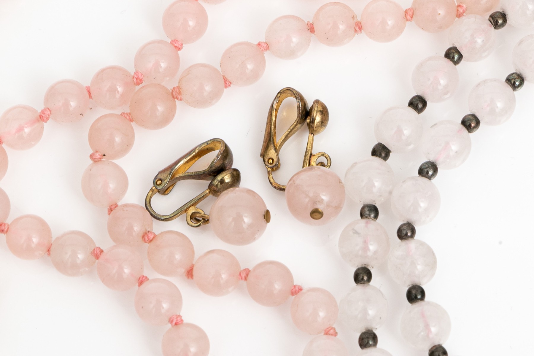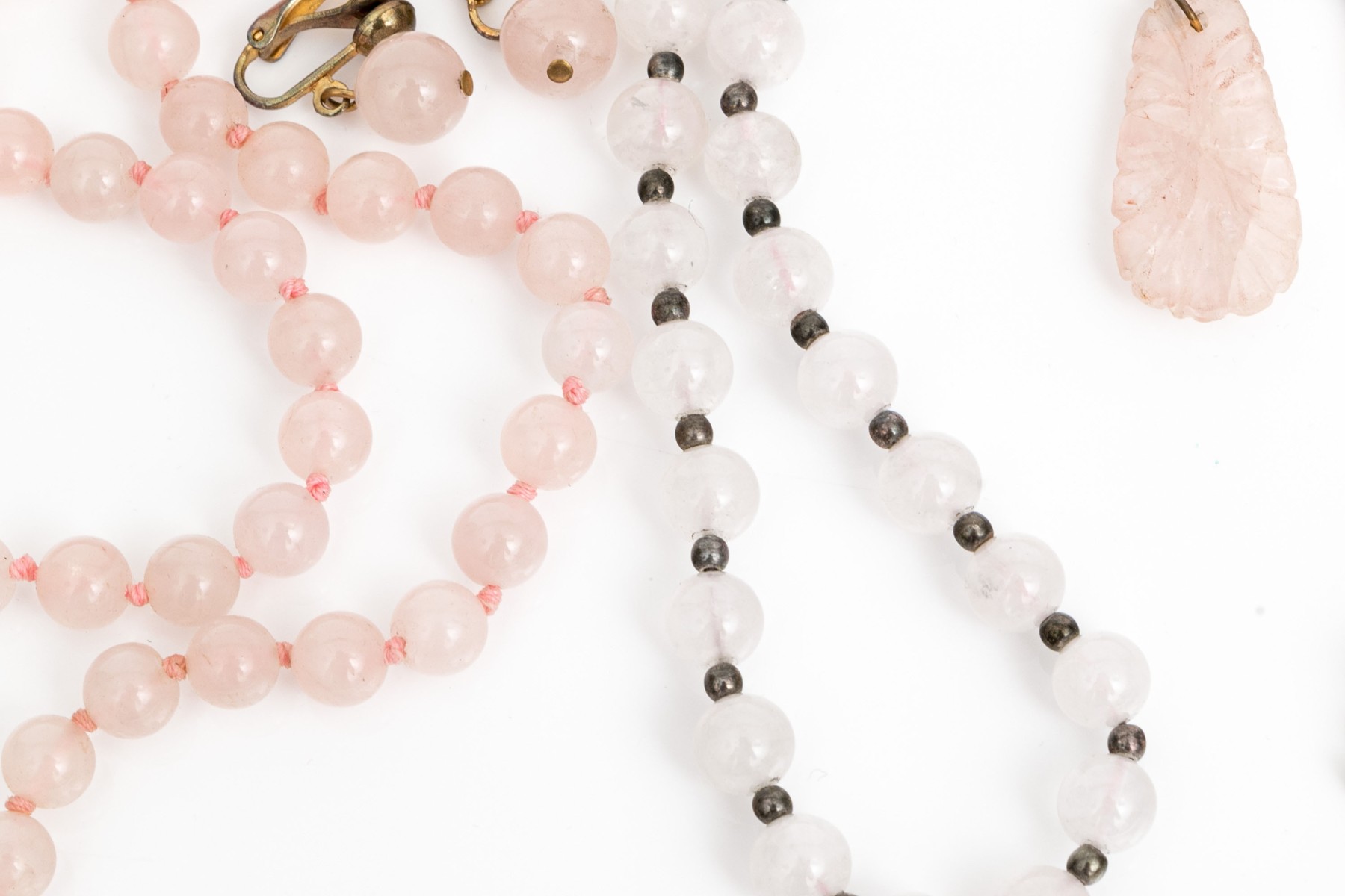 Pretty lot of rose quartz jewelry, assorted necklaces and earrings