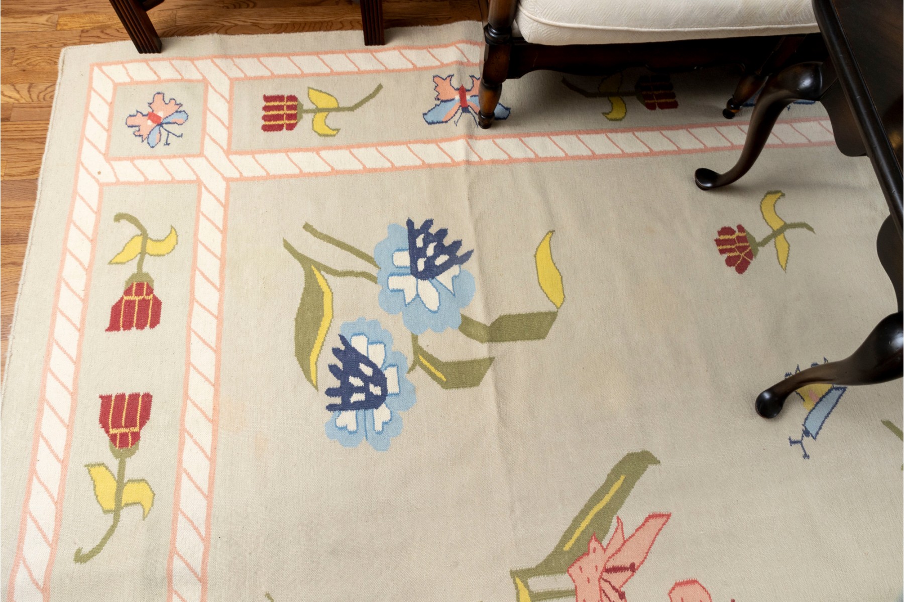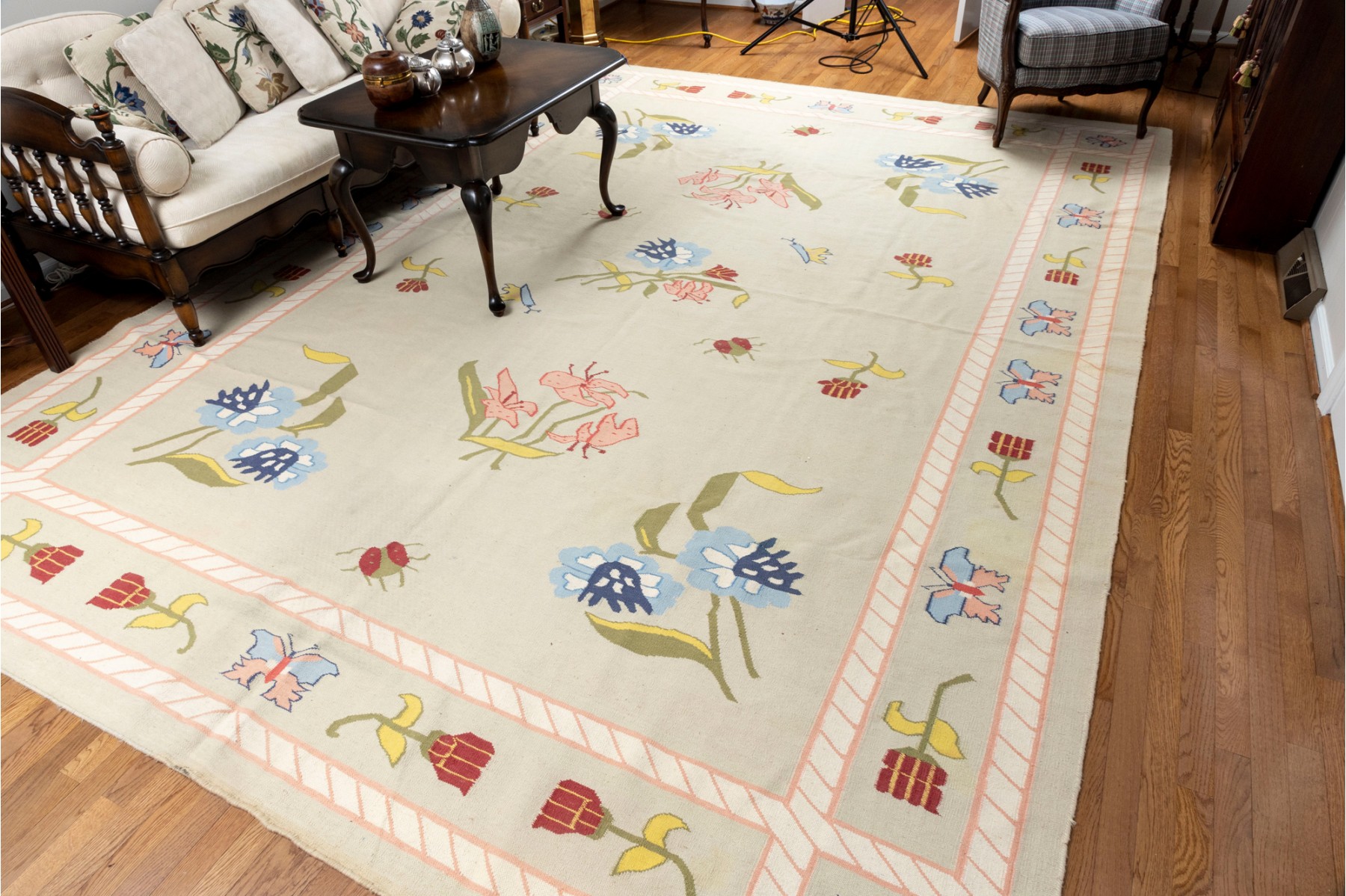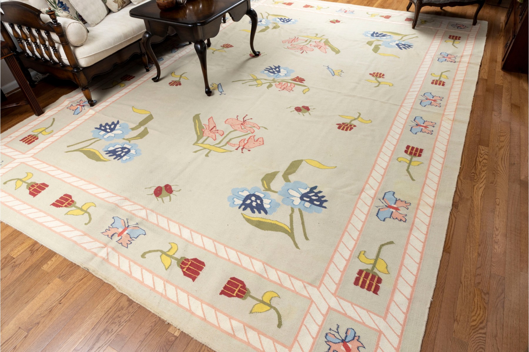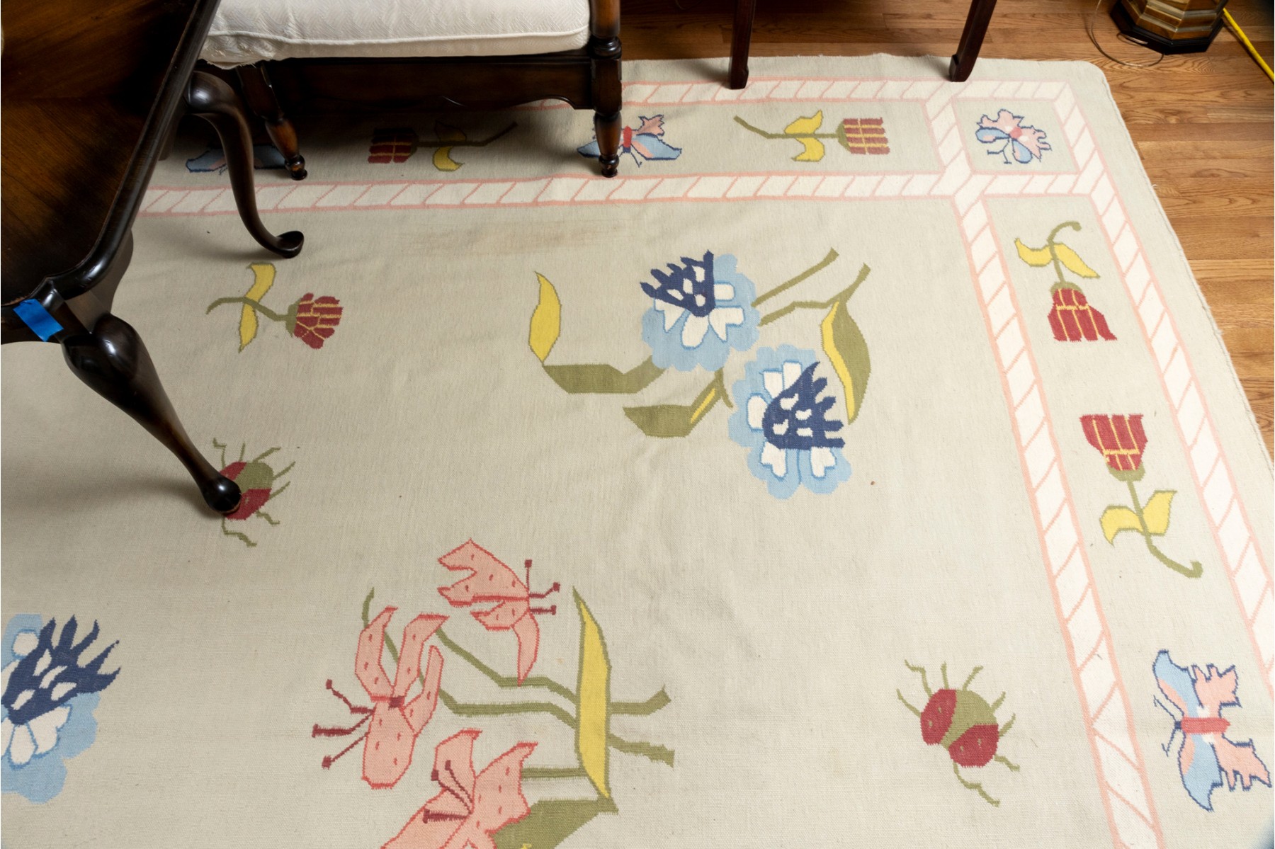 Pretty Pictorial Floral Wool Dhurie Flatweave Rug (13'8" X 9'8") #321163. Black Rock Galleries provides high end estate liquidation services through online estate auctions and a 50,000 sq ft designer showroom. estate liquidator, estate sale, online auction, antiques, fine art, liquidation, clean outs, auction, consignment, interior design, fine jewelry, collectibles, appraisals, estate appraisals, estate services, decor, furniture, furniture consignment, antique center, consignment shop. We offer appraisal services and specialize in fine art, jewelry, antiques and decorative arts. Sell with us. Black Rock Galleries is the tri-state's largest estate liquidator serving New England and the greater New York City area. We are the trusted source for expert appraisals, auction services, estate sales, and consignments. Black Rock Galleries is the east coast's largest and most trusted estate liquidator, with locations in Connecticut, greater Boston, MA and Raleigh, NC, Fairfield, Southport, Apex, TX. We are the best source for expert appraisals, auction services, estate sales and consignments. We have served thousands of families and estates with compassion, professionalism and expertise. BRG works with attorneys, executors, realtors and families to bring the greatest return on personal and estate property in the current market. Our unique combination of services make us the easy choice to get the job done in a timely and stress-free manner. We are with you from the initial consultation to the final clean out. Our house-built online auction software platform offers clients a dynamic approach to liquidating their personal property. This venue is most successful in bringing the best return with the least amount of disruption for our clients. See our services page for a complete description of this offering. Pretty Pictorial Floral Wool Dhurie Flatweave Rug (13'8" X 9'8") #321163