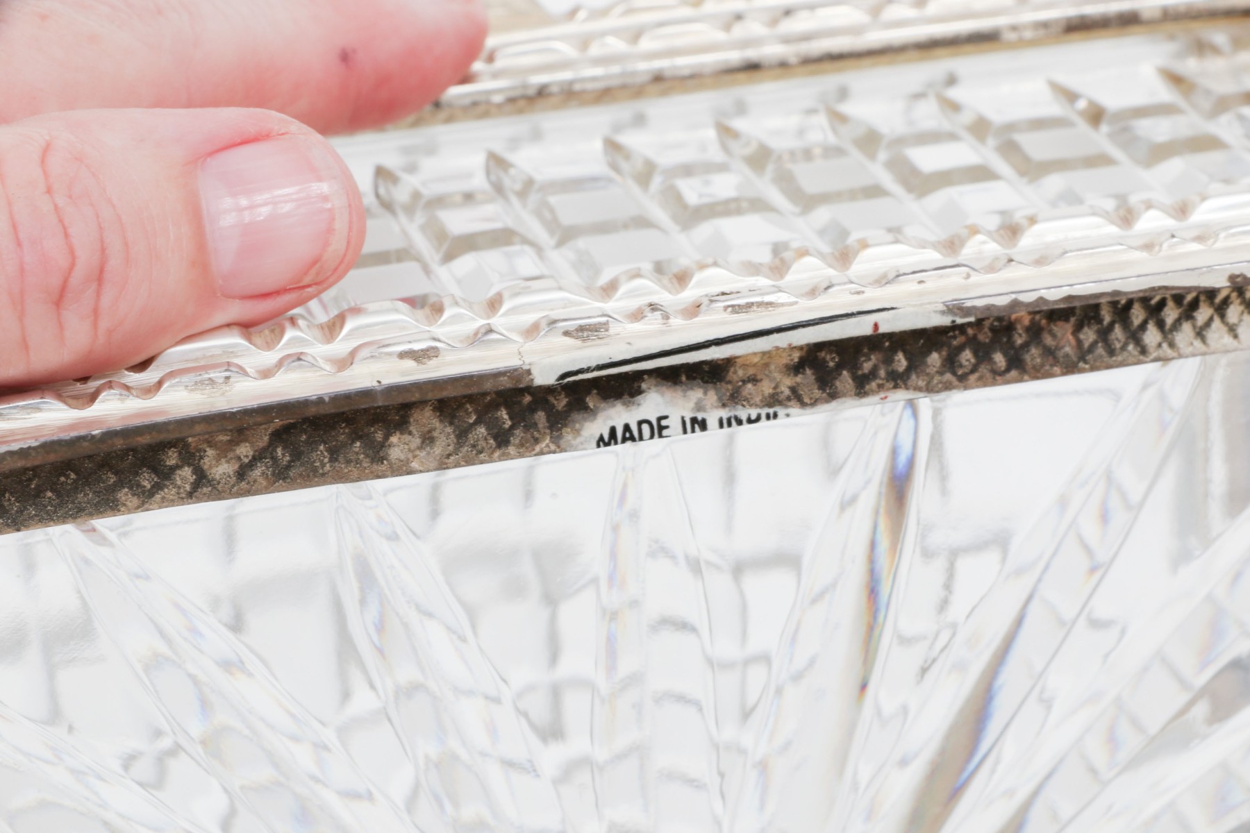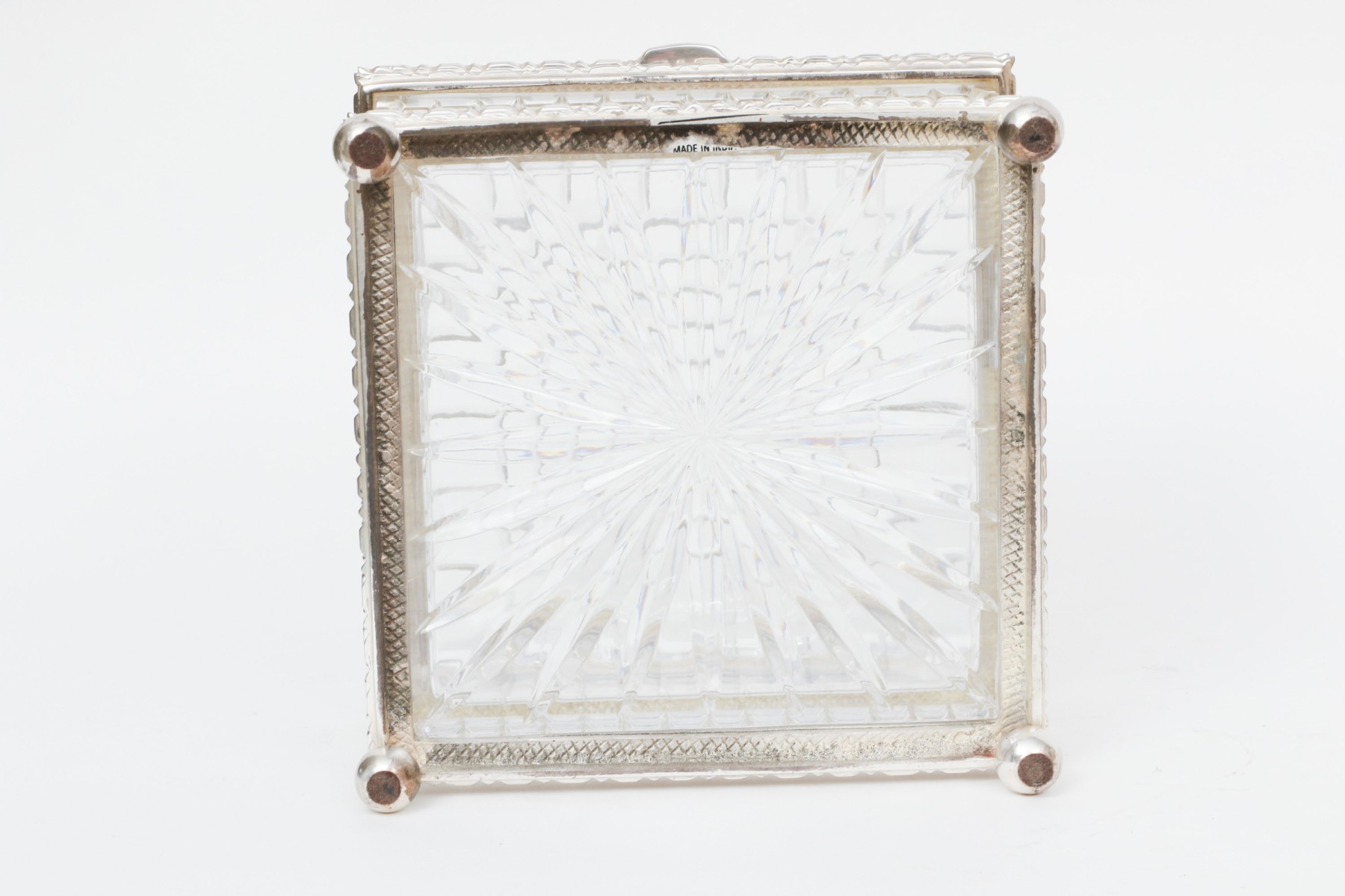 Crystal casket measures 7 5/8" L x 7 3/4" D x 5 3/8" H