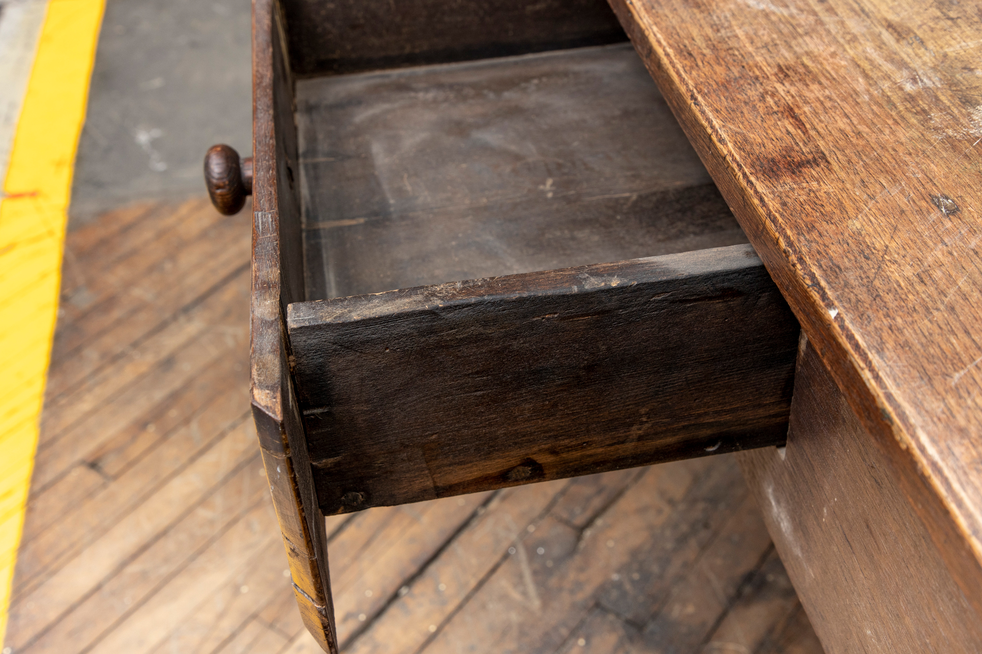 Condition: well worn overall, especially the top and drawer