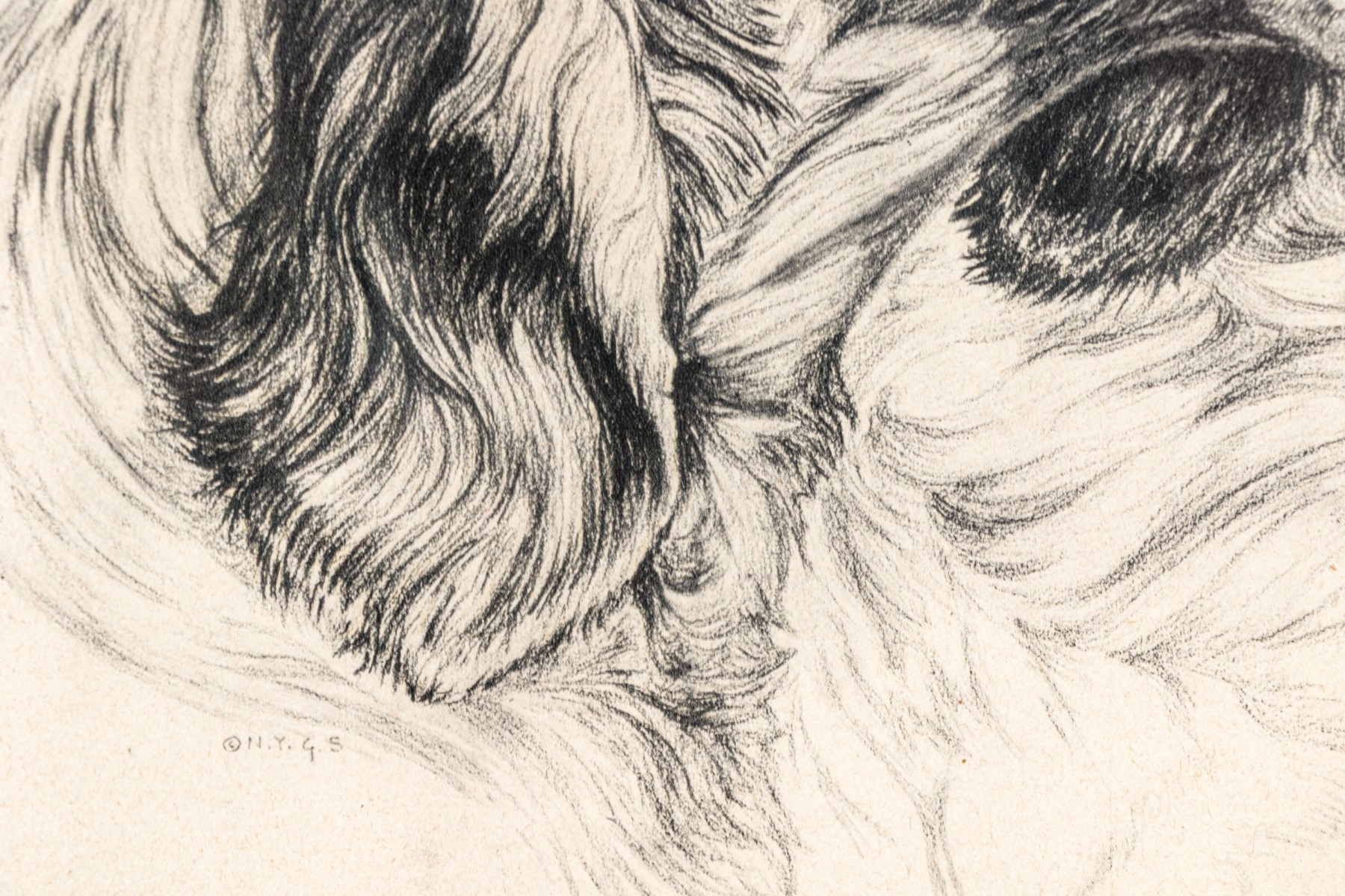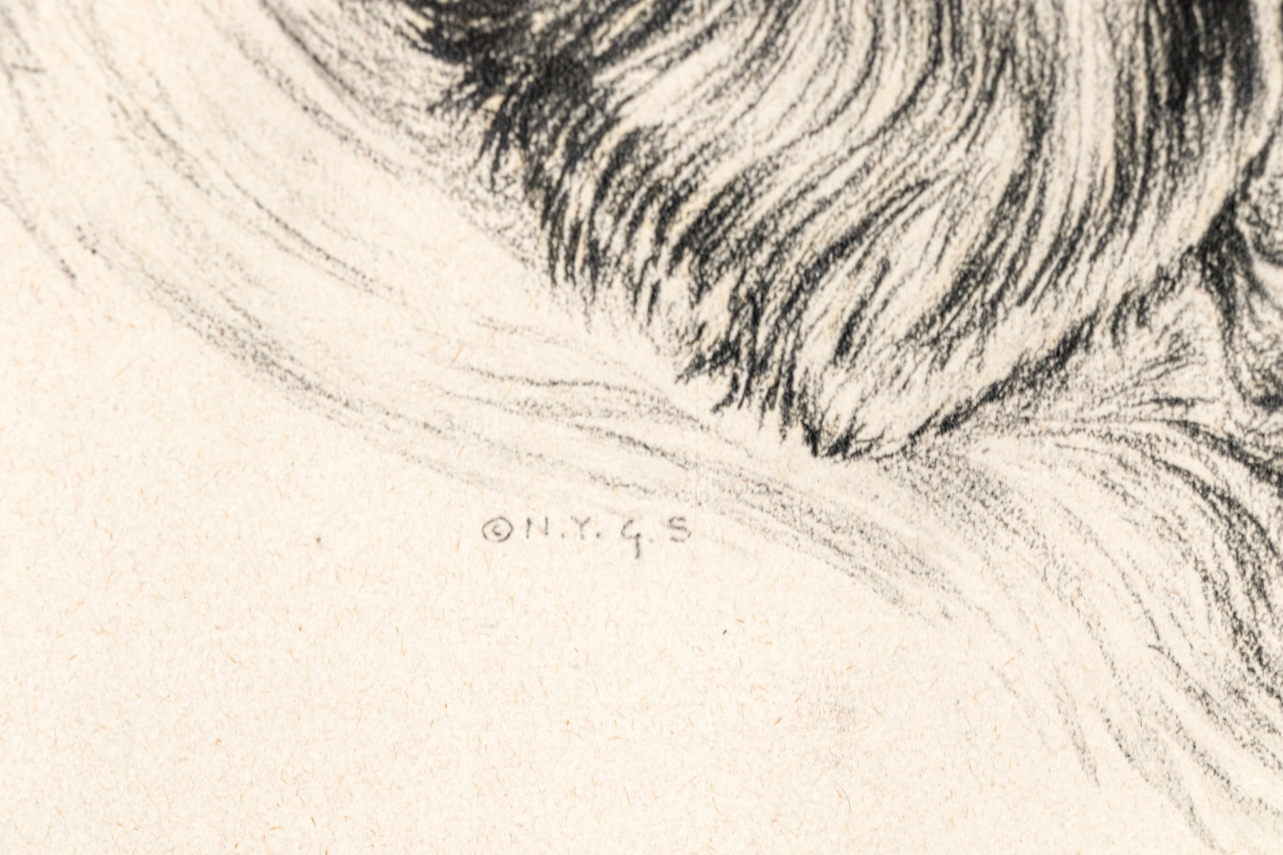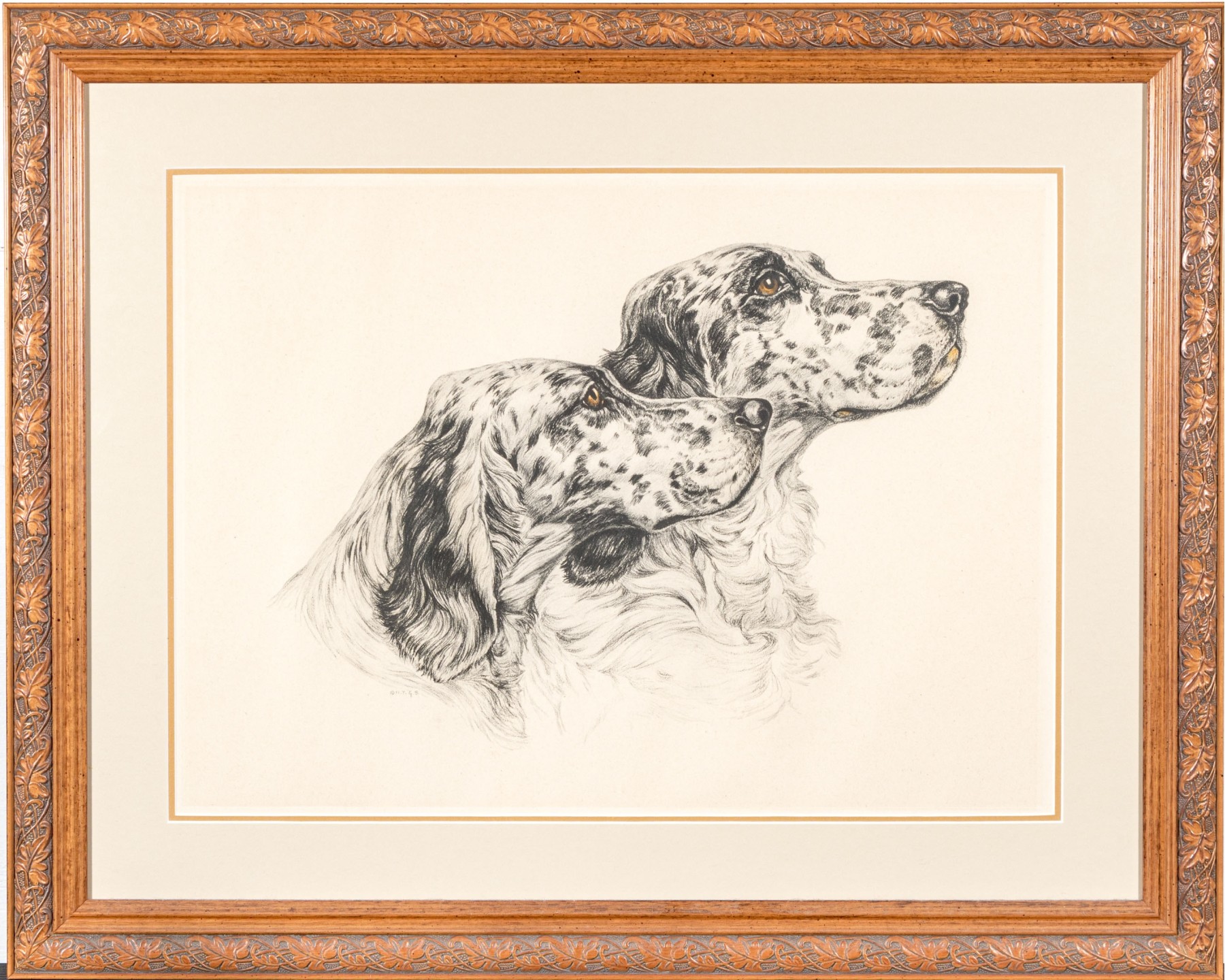 Signed din plate N.Y.G.S. lower left quadrant. Presented matted and framed in a carved foliate decorated frame and glazed. Dimensions: 16 x 22" W, sight // 24 5/8 x 30 3/4" W, frame