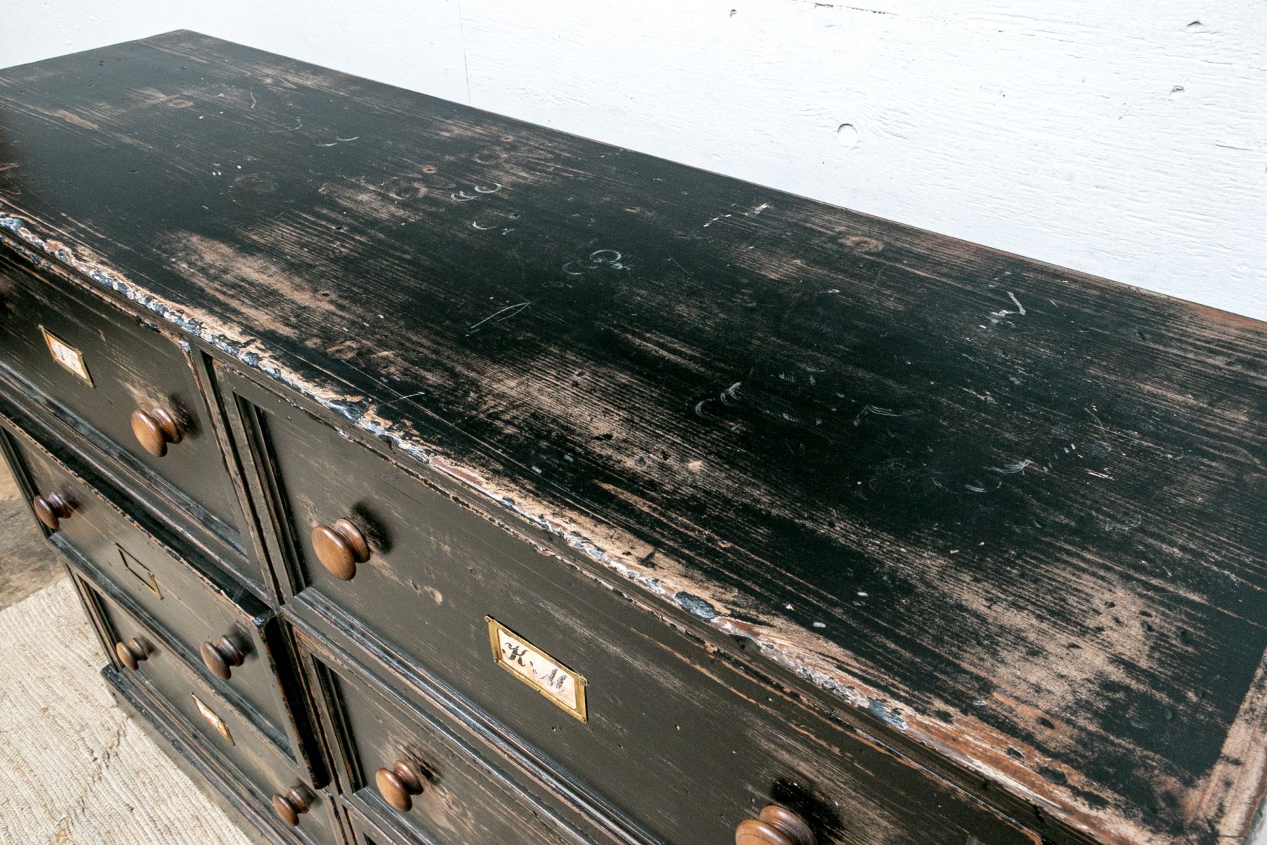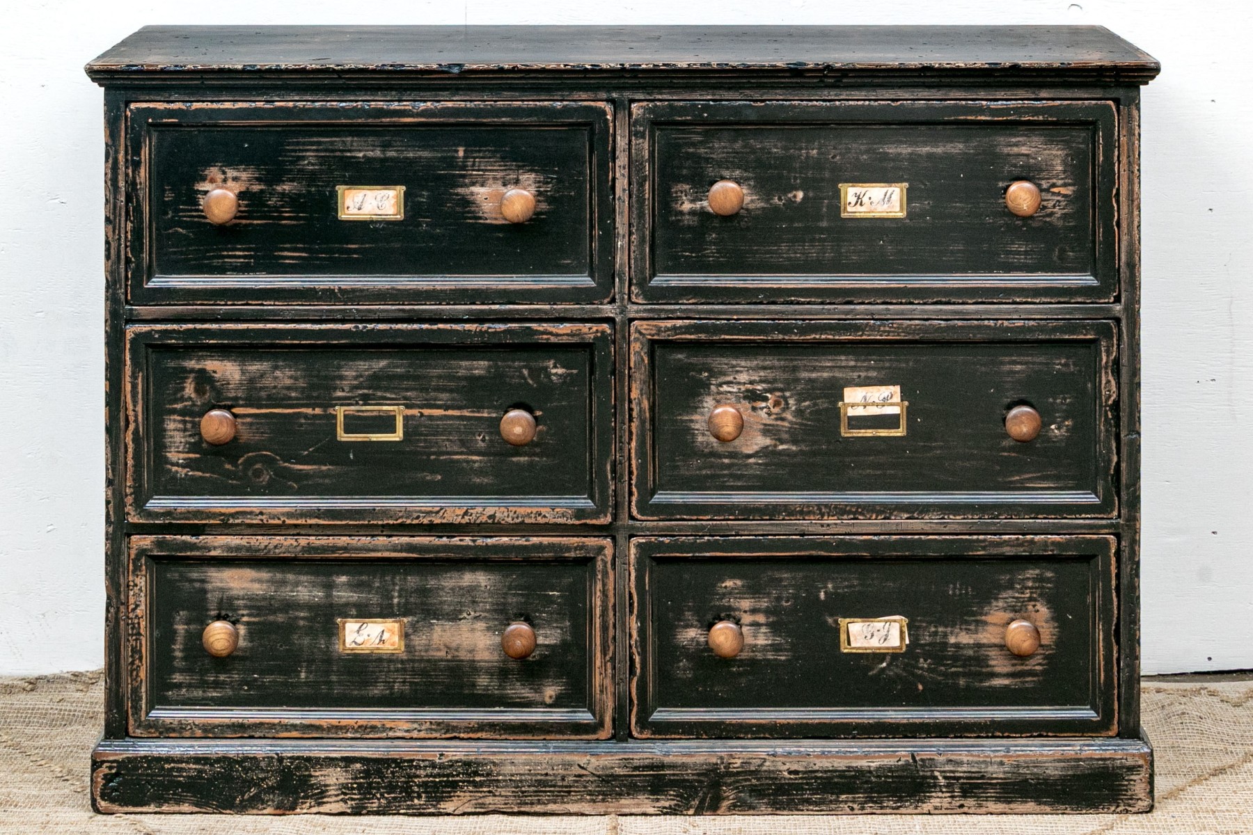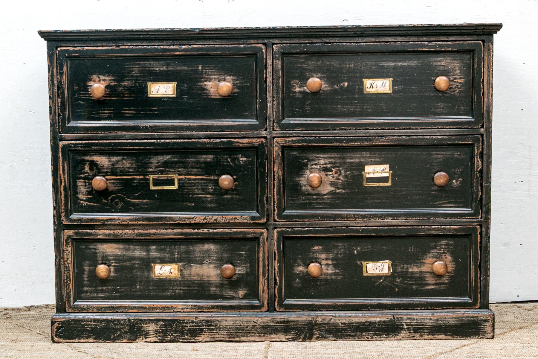 The apothecary cabinet with six file cabinet drawers.