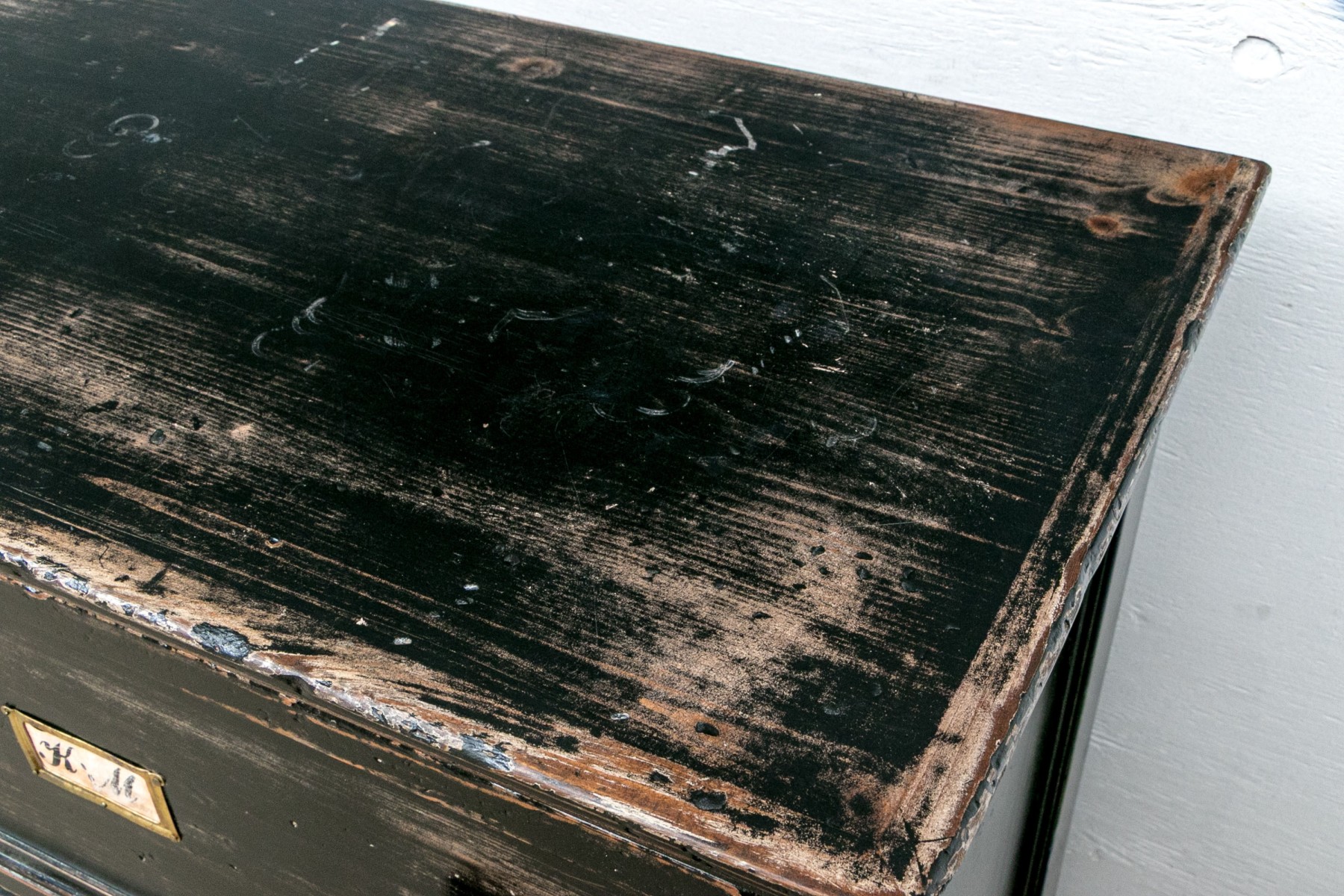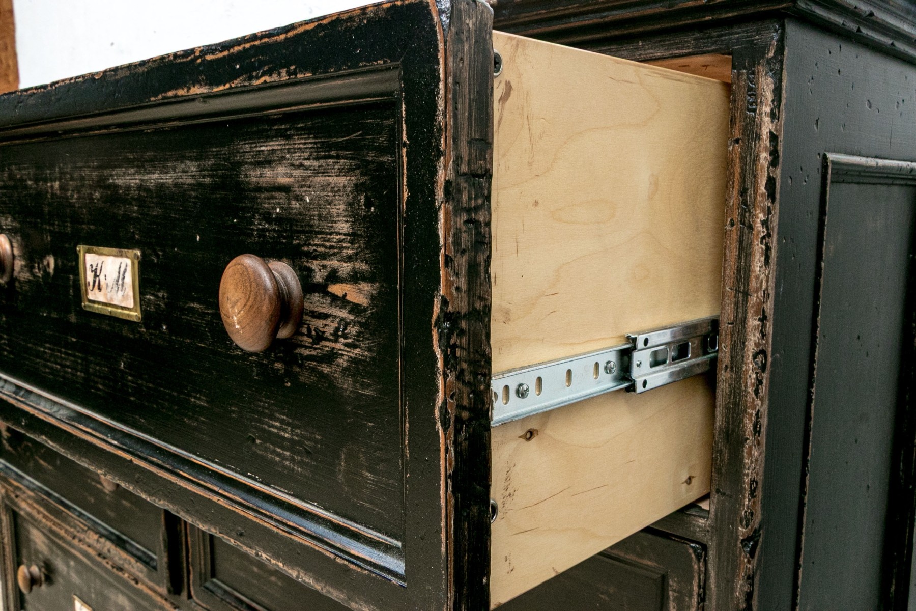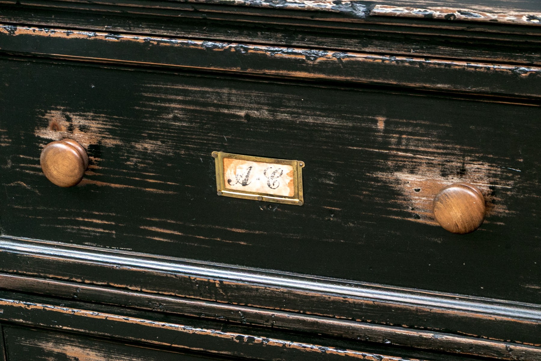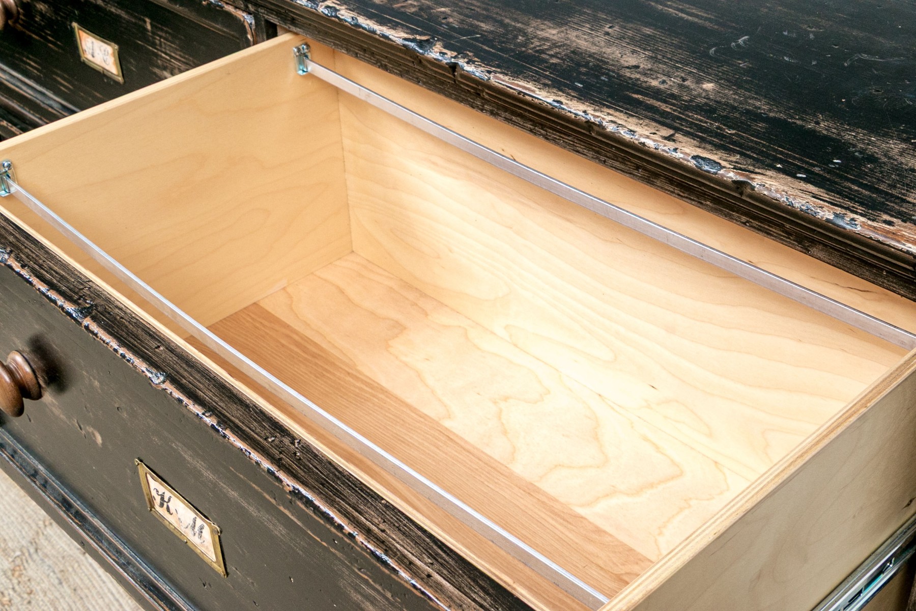 The apothecary cabinet with six file cabinet drawers.