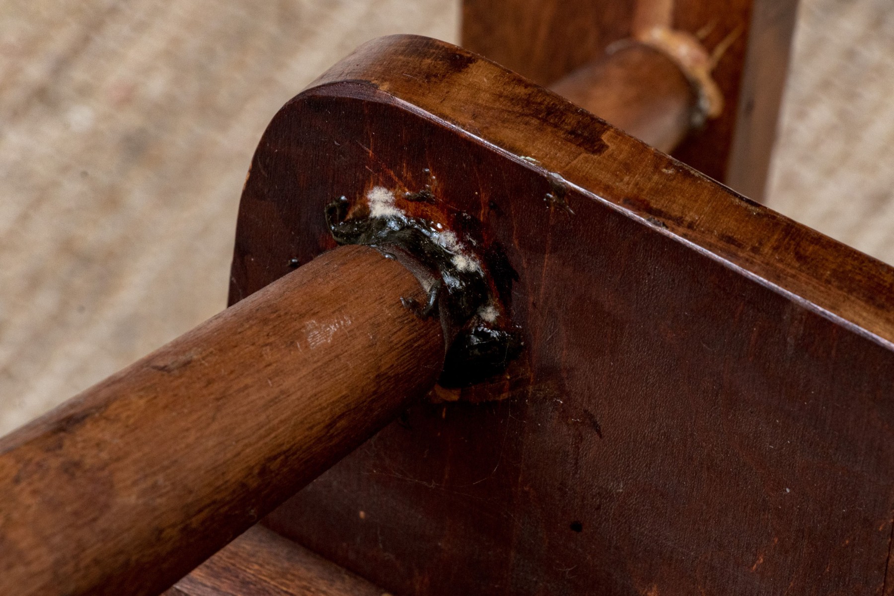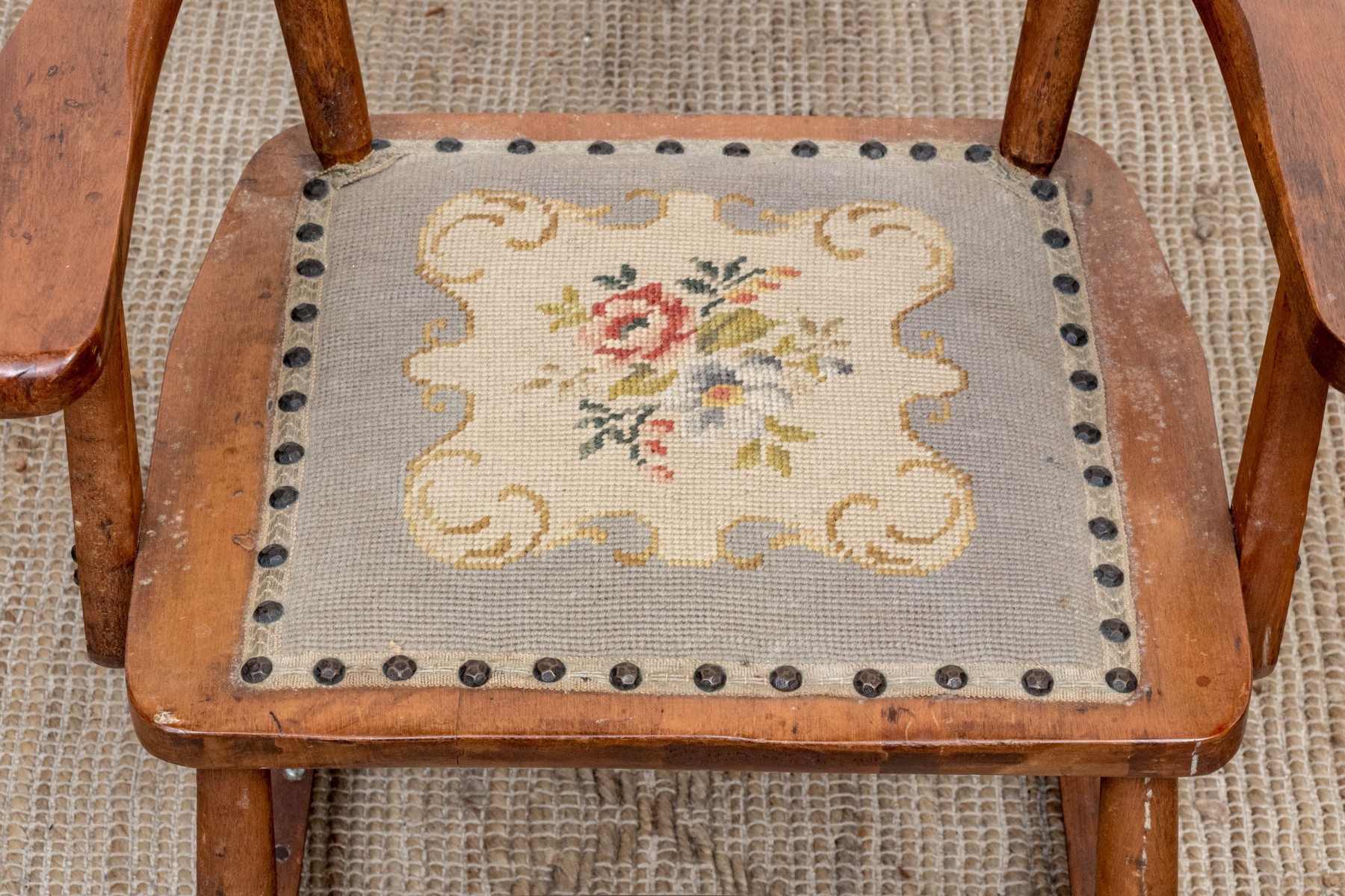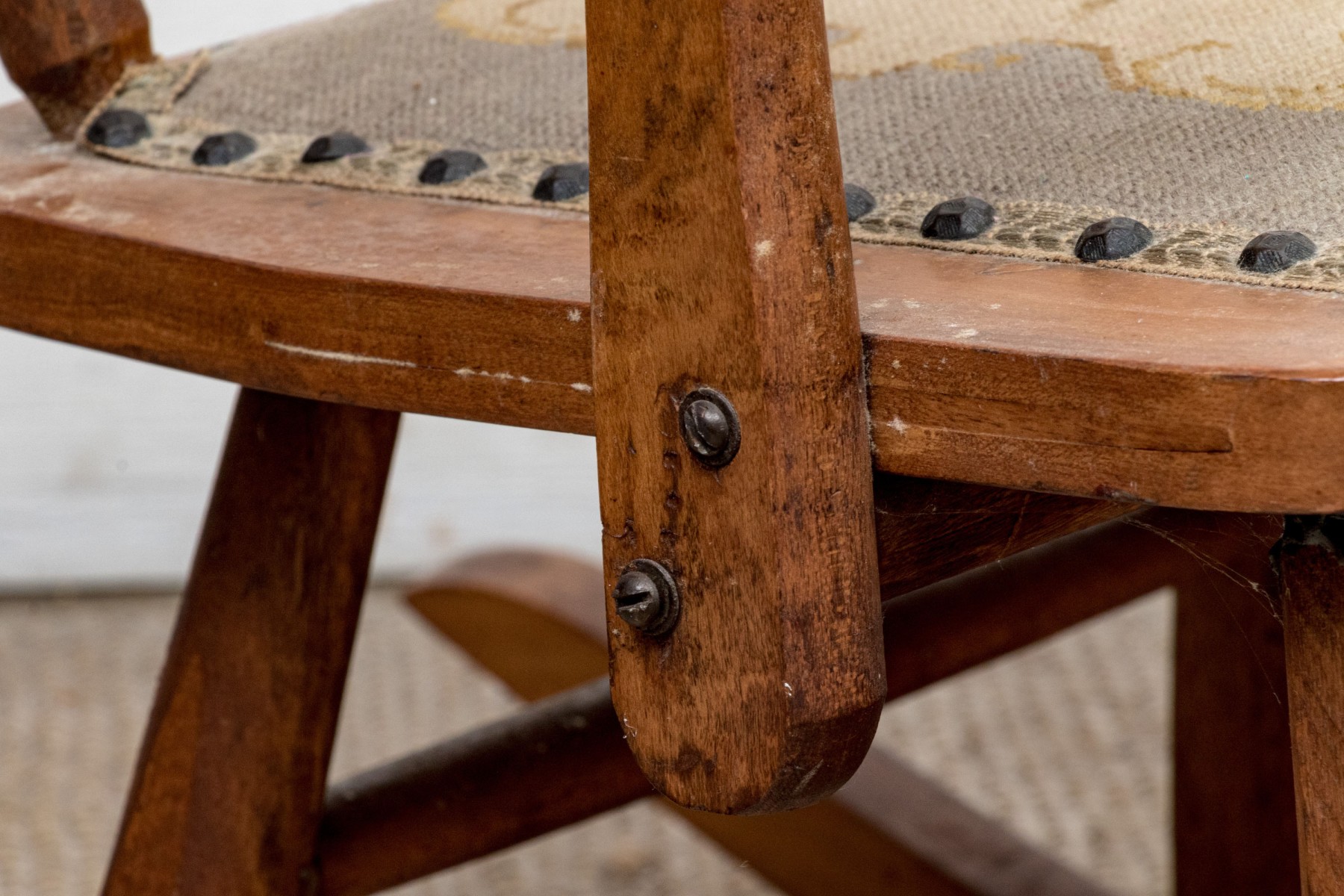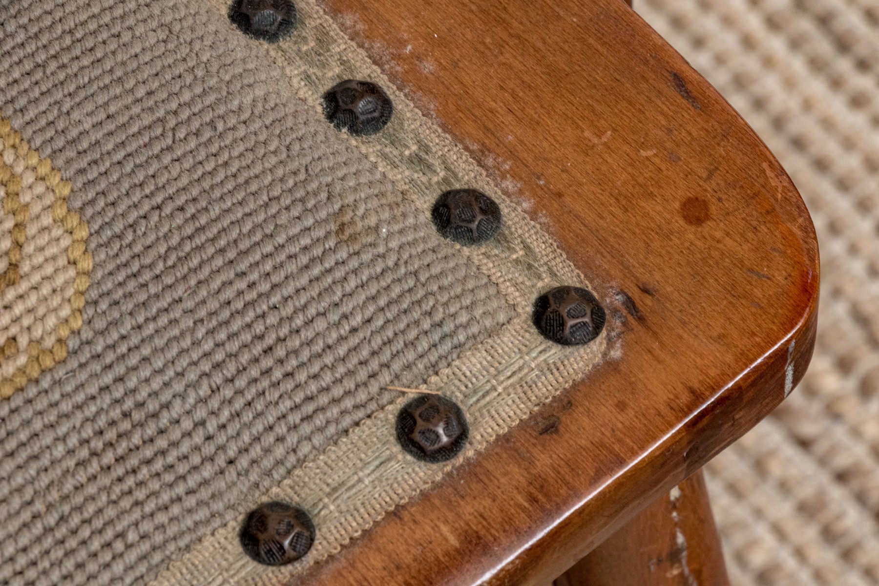 With handsome patina, seat shows some wear.