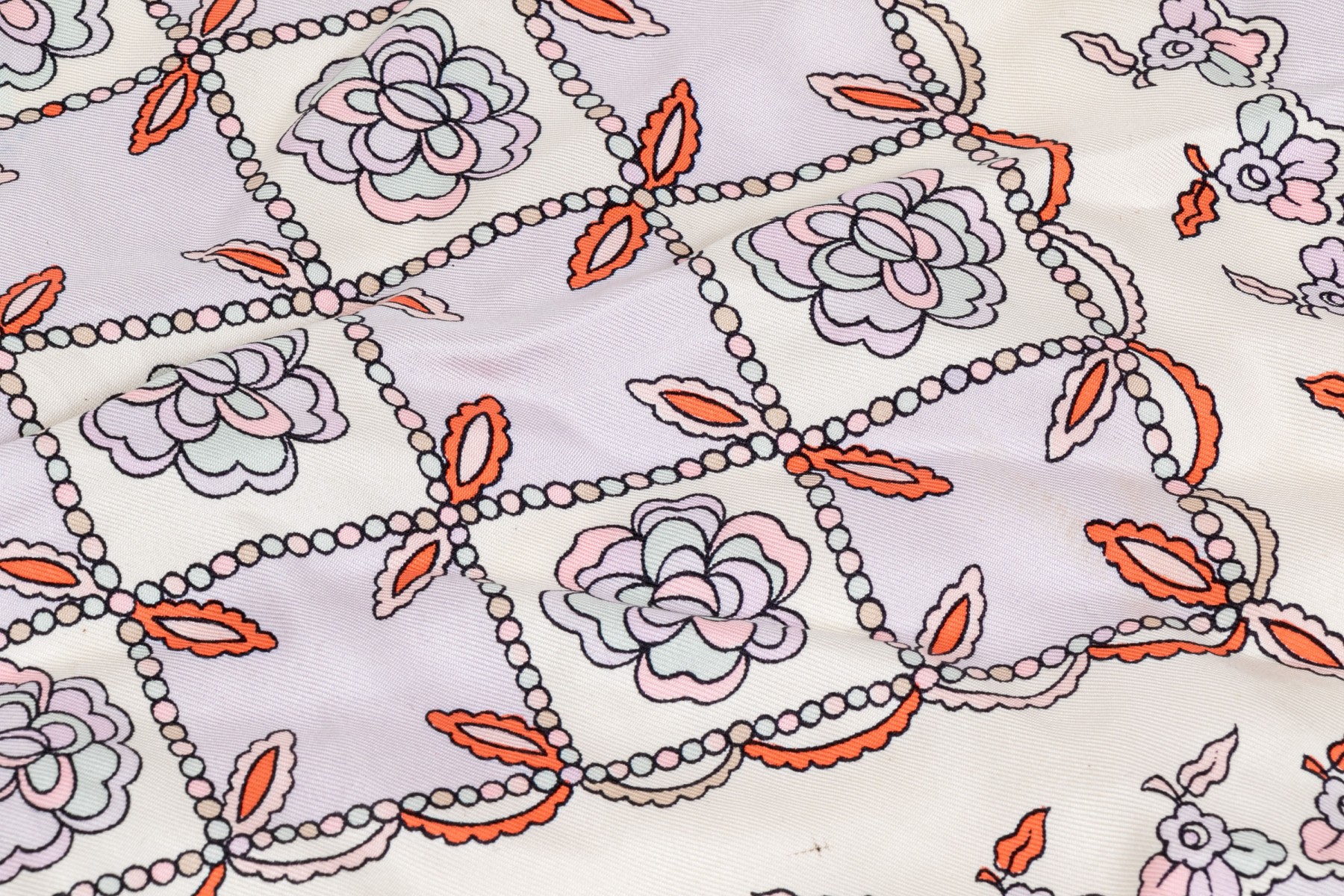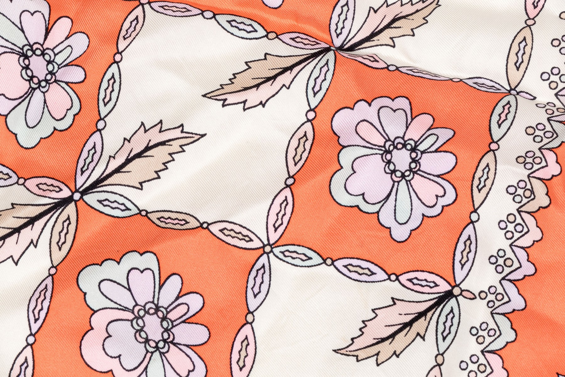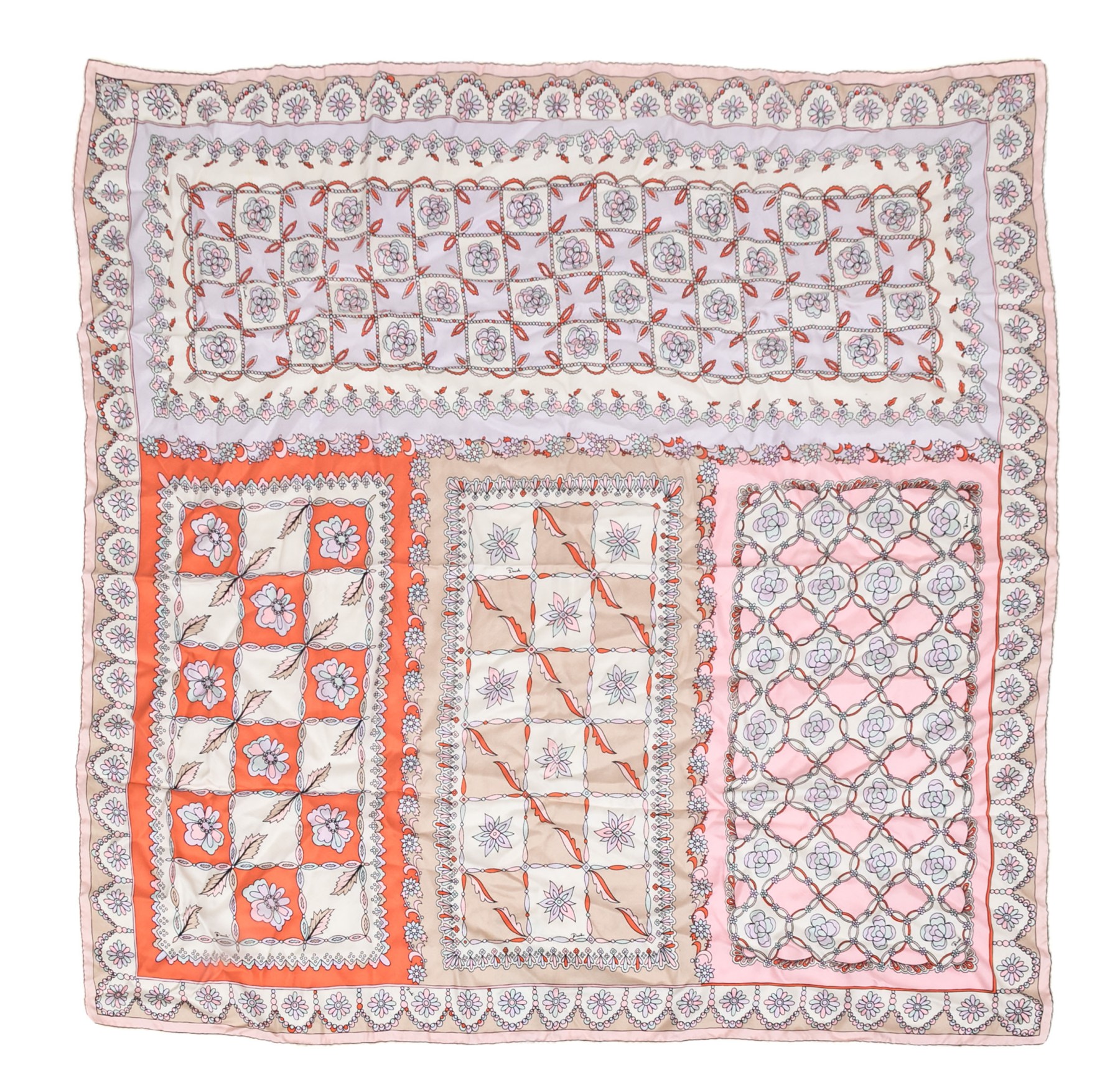 Pucci pretty pink, coral and tan vintage floral patterned motif silk scarf