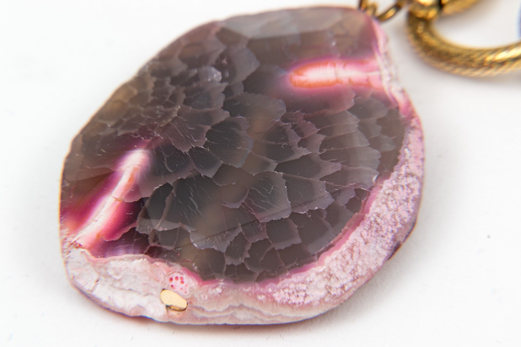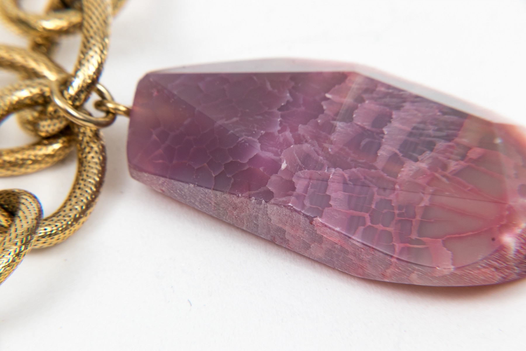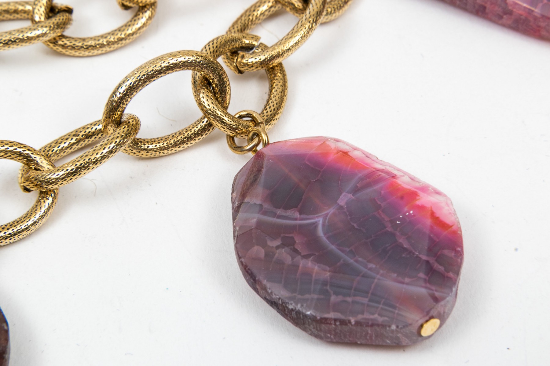 Fashion bracelet and necklace set with multicolored purple and white stones. Lobster claw and spring ring clasp.