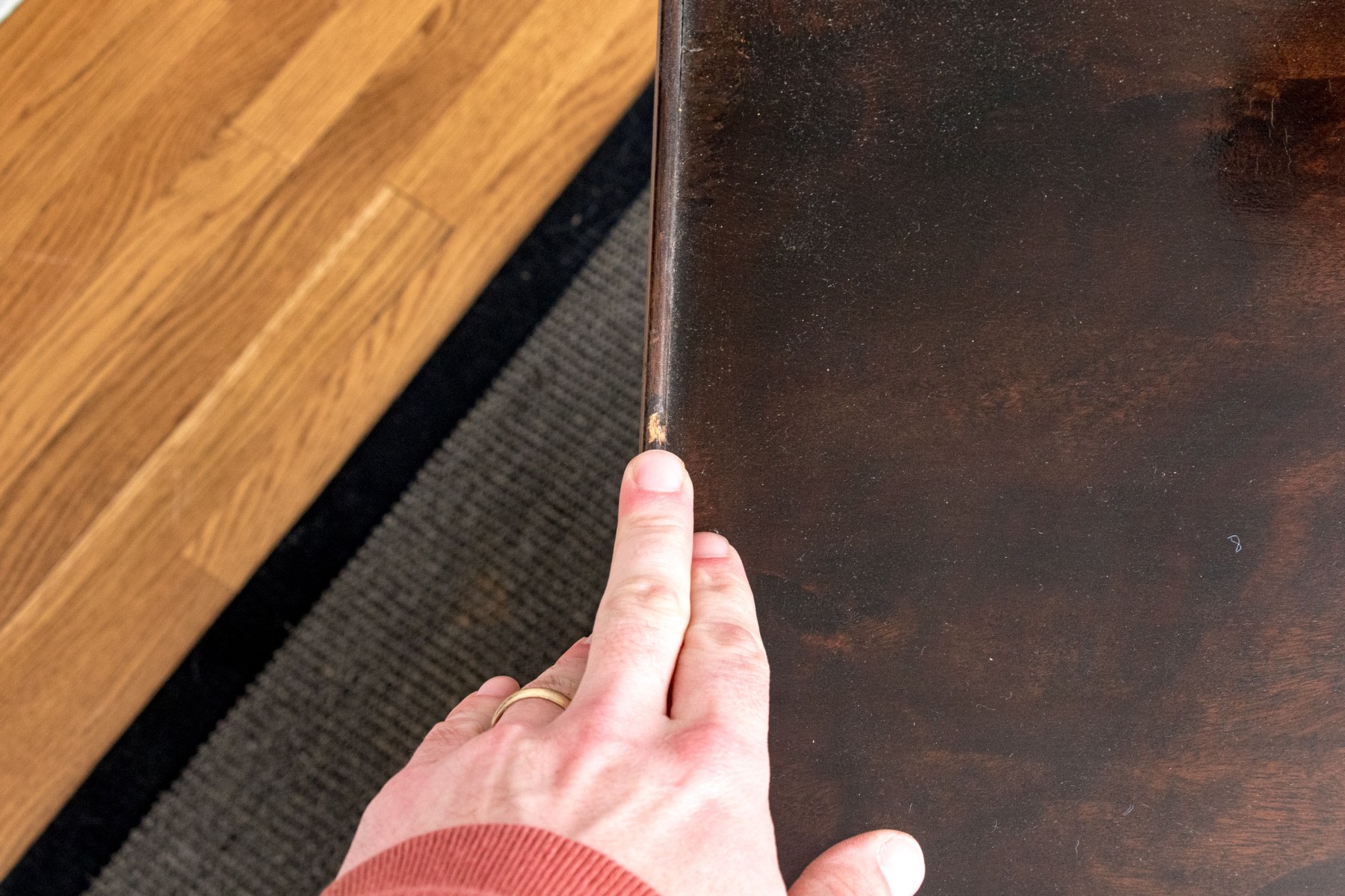 Wear and losses to the finish and water stains and surface scratches. Despite some wear presents well overall.