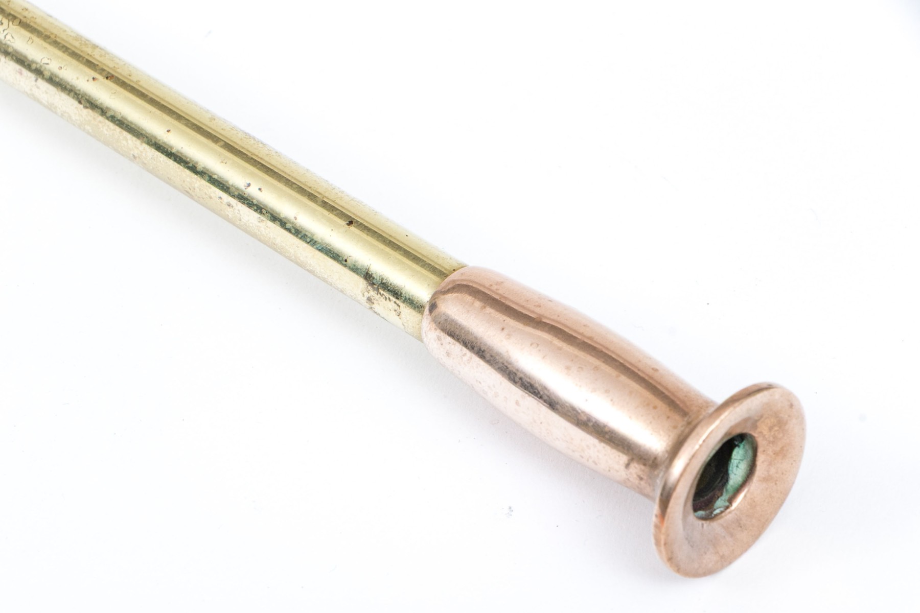 A high quality, thickly made brass fire blow poke with a mouthpiece to one end and poker to the opposite end.