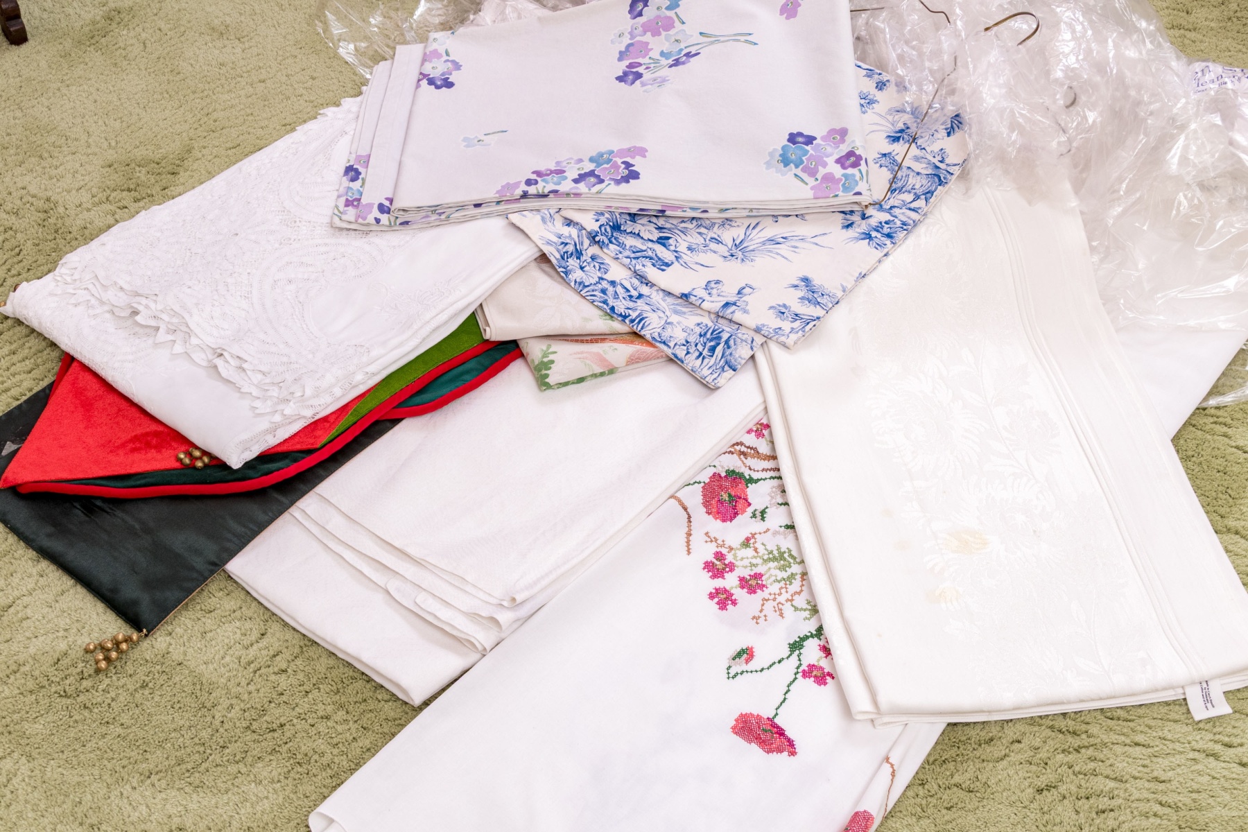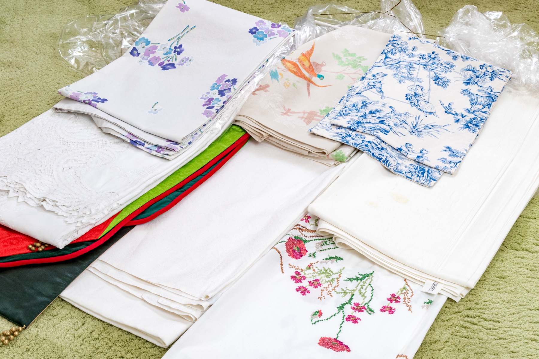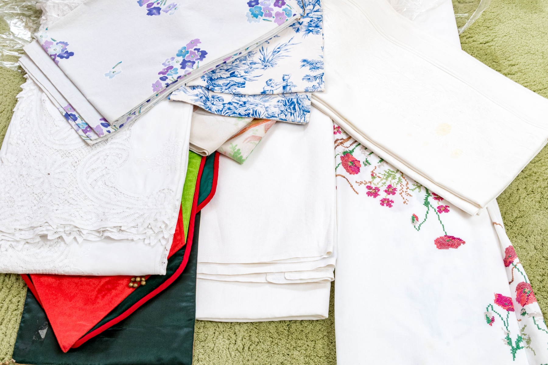 A fabulous collection of ten high quality table linens comprised of varied linen tablecloths and table runners.