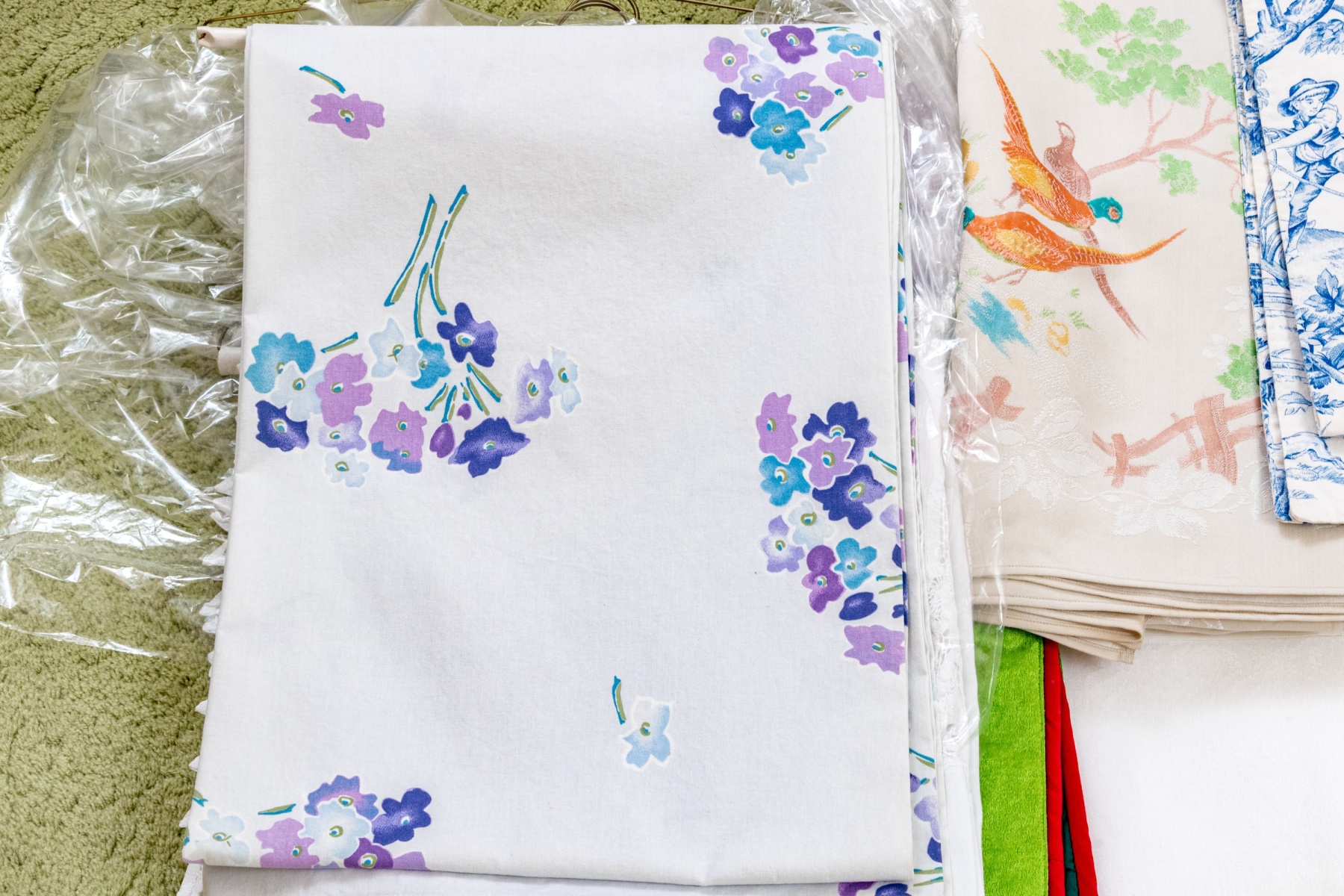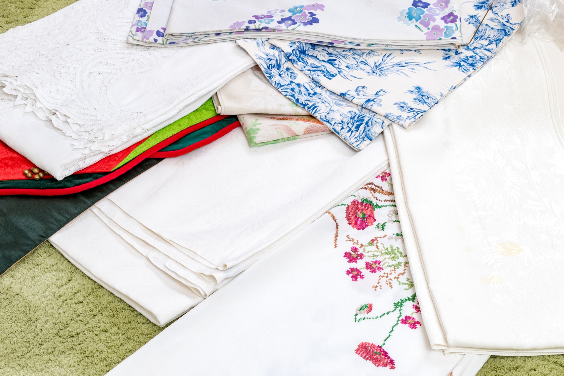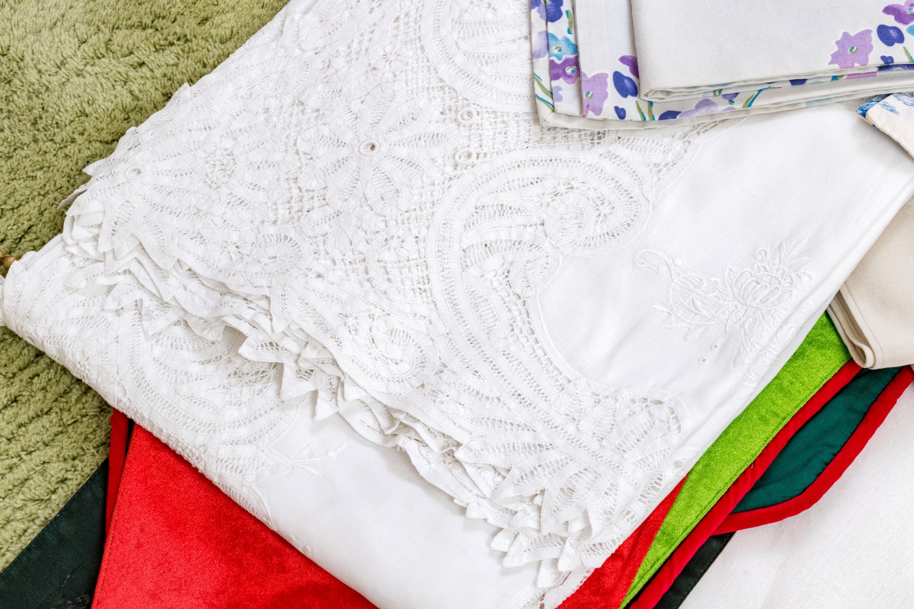 A fabulous collection of ten high quality table linens comprised of varied linen tablecloths and table runners.
