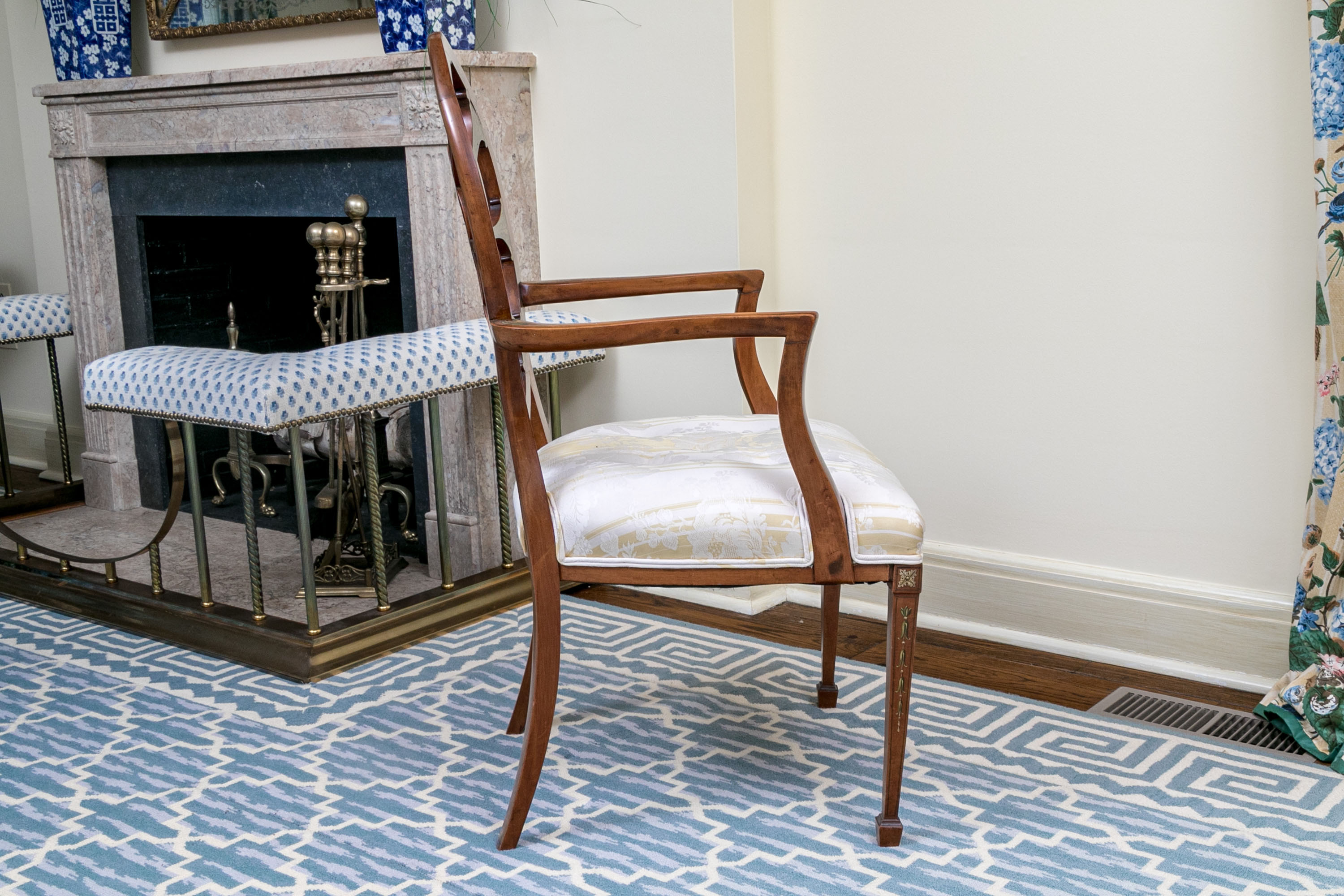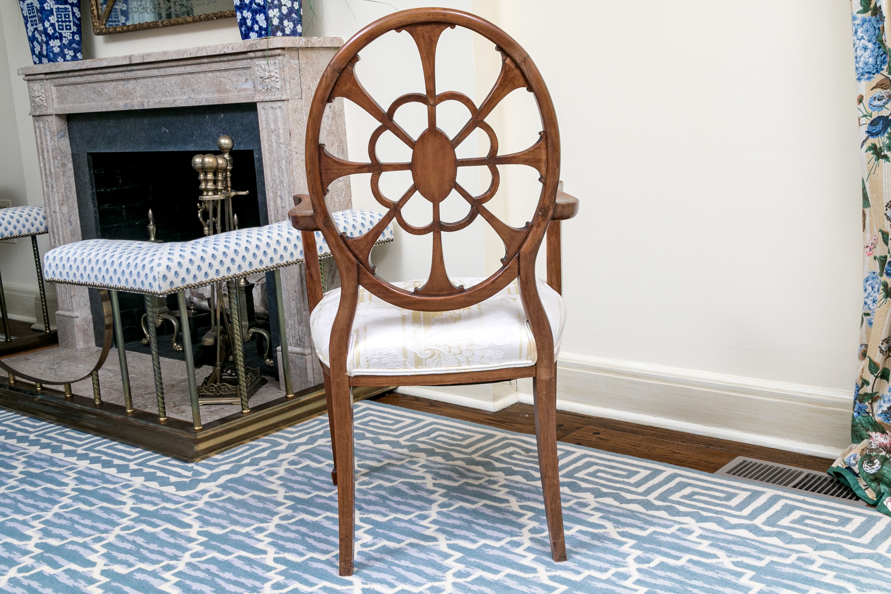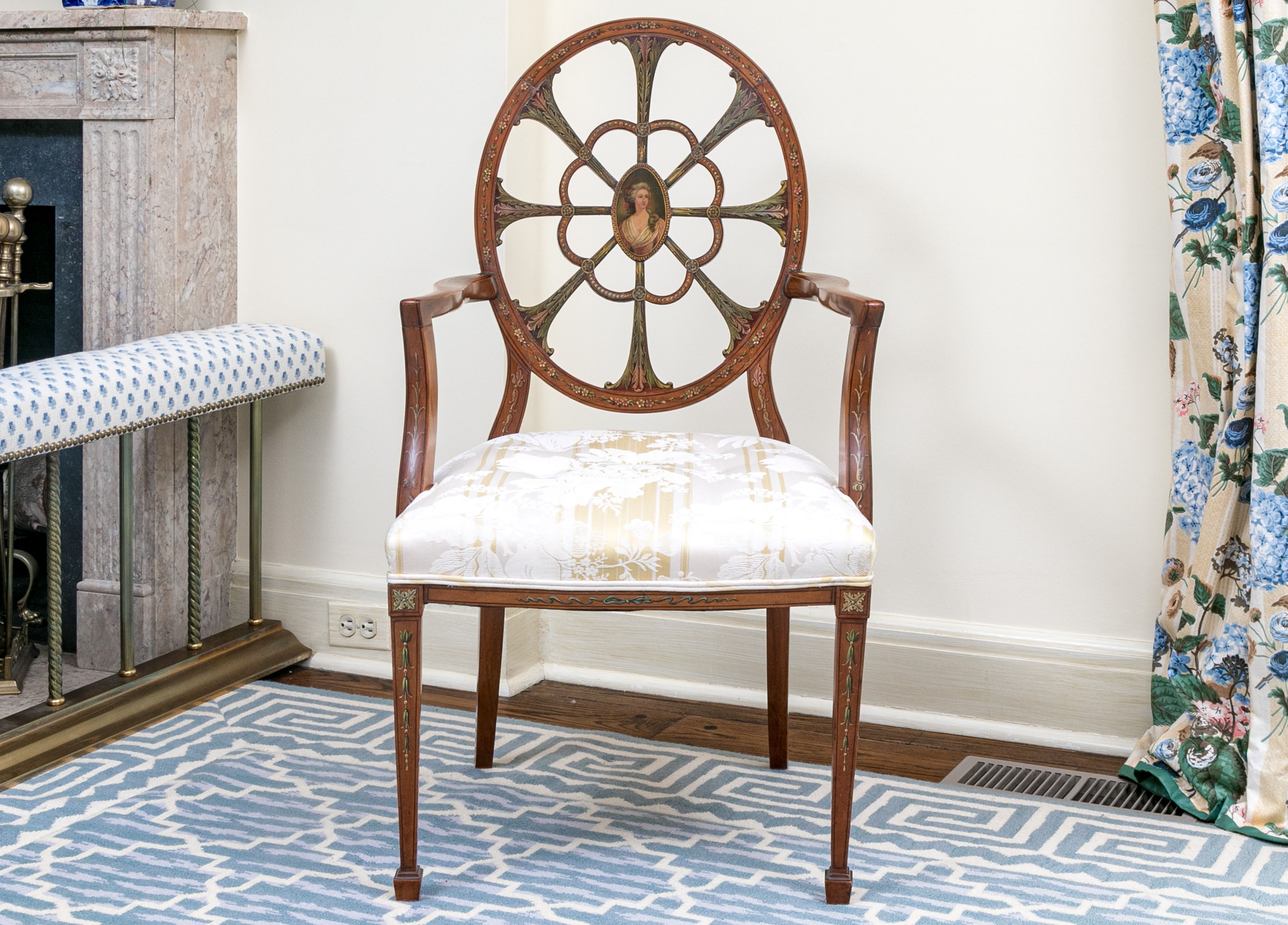 Quality Hepplewhite Style Painted Medallion Back Armchair #290279. Black Rock Galleries provides high end estate liquidation services through online estate auctions and a 50,000 sq ft designer showroom. estate liquidator, estate sale, online auction, antiques, fine art, liquidation, clean outs, auction, consignment, interior design, fine jewelry, collectibles, appraisals, estate appraisals, estate services, decor, furniture, furniture consignment, antique center, consignment shop. We offer appraisal services and specialize in fine art, jewelry, antiques and decorative arts. Sell with us. Black Rock Galleries is the tri-state's largest estate liquidator serving New England and the greater New York City area. We are the trusted source for expert appraisals, auction services, estate sales, and consignments. Black Rock Galleries is the east coast's largest and most trusted estate liquidator, with locations in Connecticut, greater Boston, MA and Raleigh, NC, Fairfield, Southport, Apex, TX. We are the best source for expert appraisals, auction services, estate sales and consignments. We have served thousands of families and estates with compassion, professionalism and expertise. BRG works with attorneys, executors, realtors and families to bring the greatest return on personal and estate property in the current market. Our unique combination of services make us the easy choice to get the job done in a timely and stress-free manner. We are with you from the initial consultation to the final clean out. Our house-built online auction software platform offers clients a dynamic approach to liquidating their personal property. This venue is most successful in bringing the best return with the least amount of disruption for our clients. See our services page for a complete description of this offering. Quality Hepplewhite Style Painted Medallion Back Armchair #290279