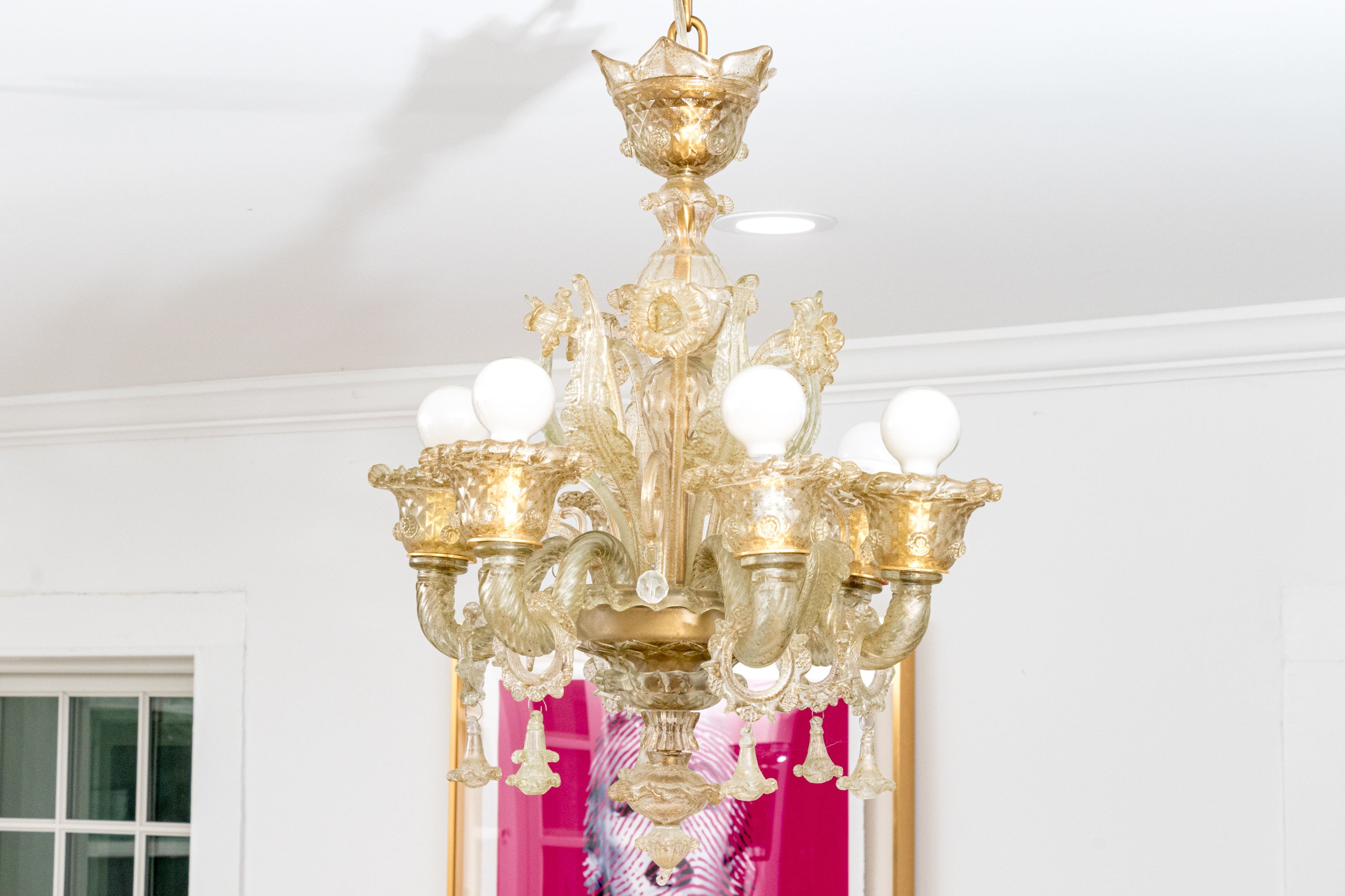 *Quality Murano Or Murano Style Hand-blown Glass Six Lite Chandelier