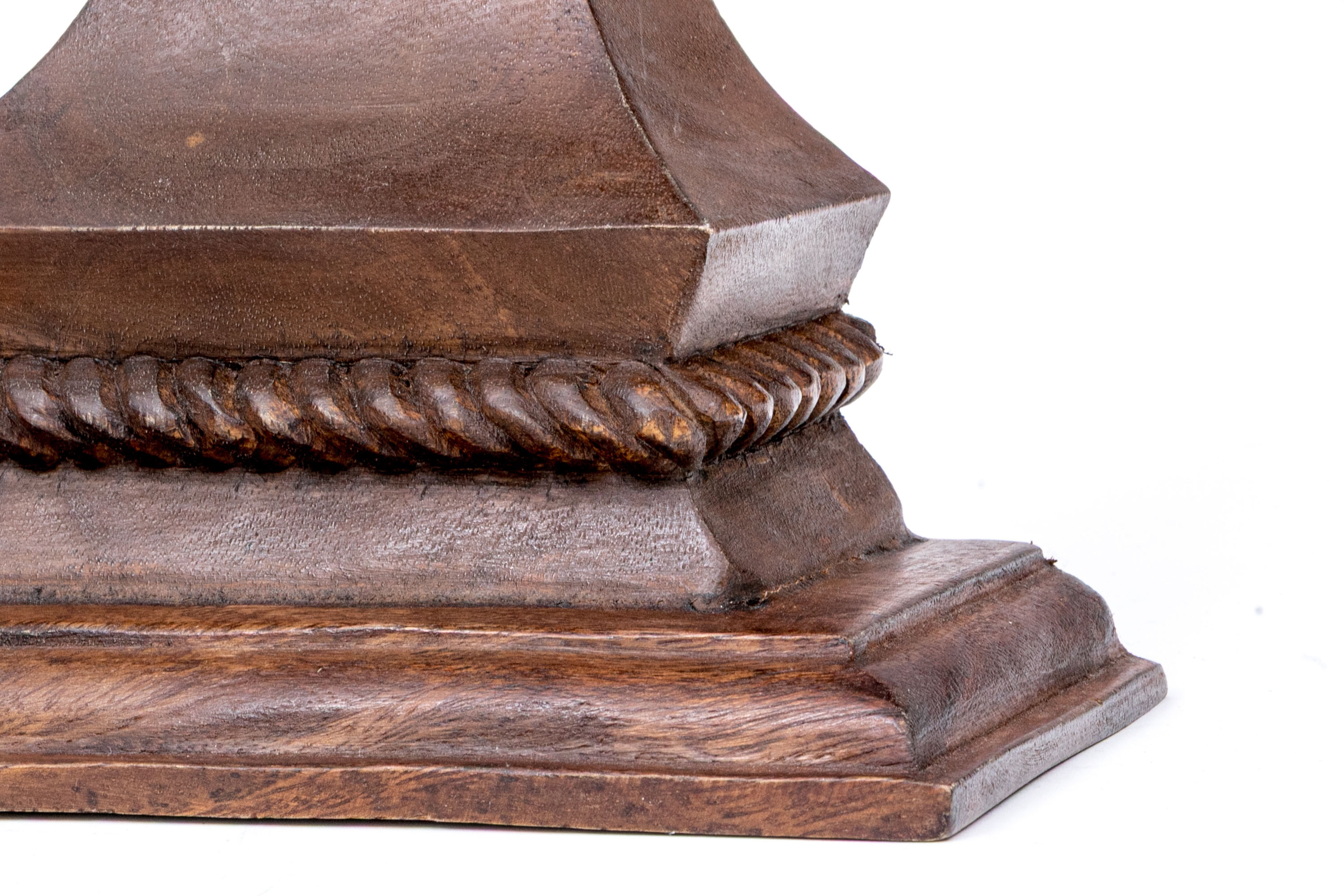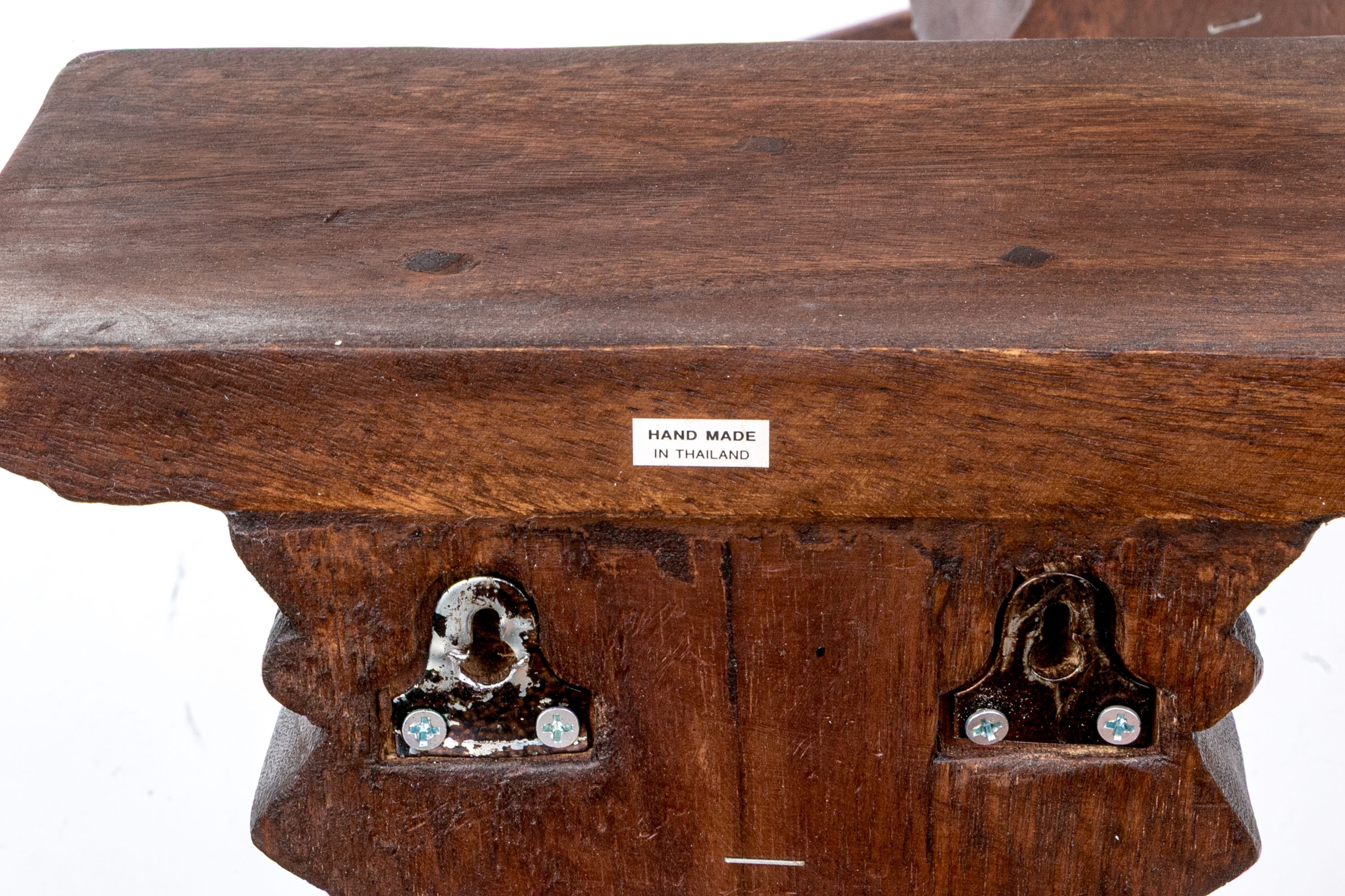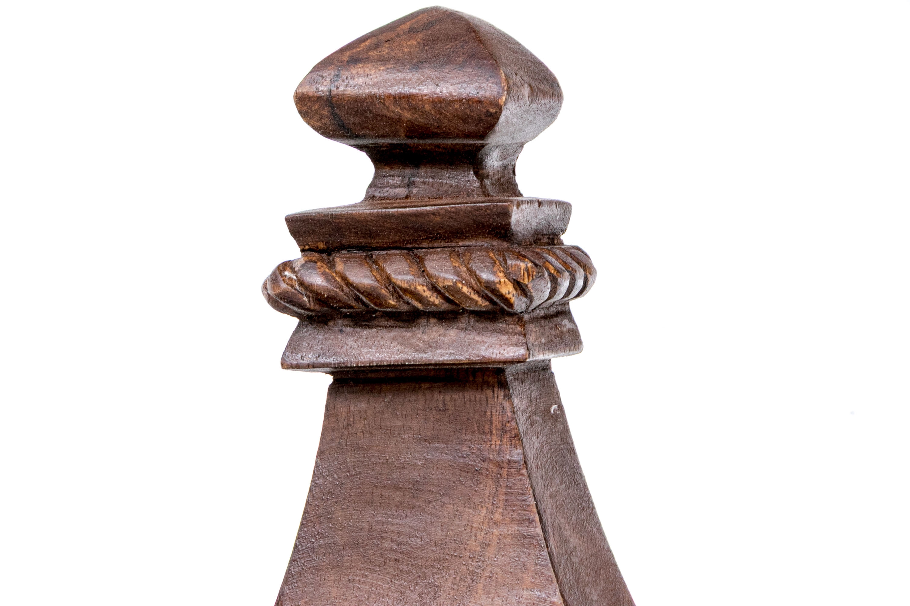 A handsome pair of wall brackets with a touch of Georgian elegance in a rich, medium-dark brown finish. The brackets feature rectangular tops with ogee edges leading to rope twist bands along a shapely bezeled triangular body with square pyramidal bottom finials.