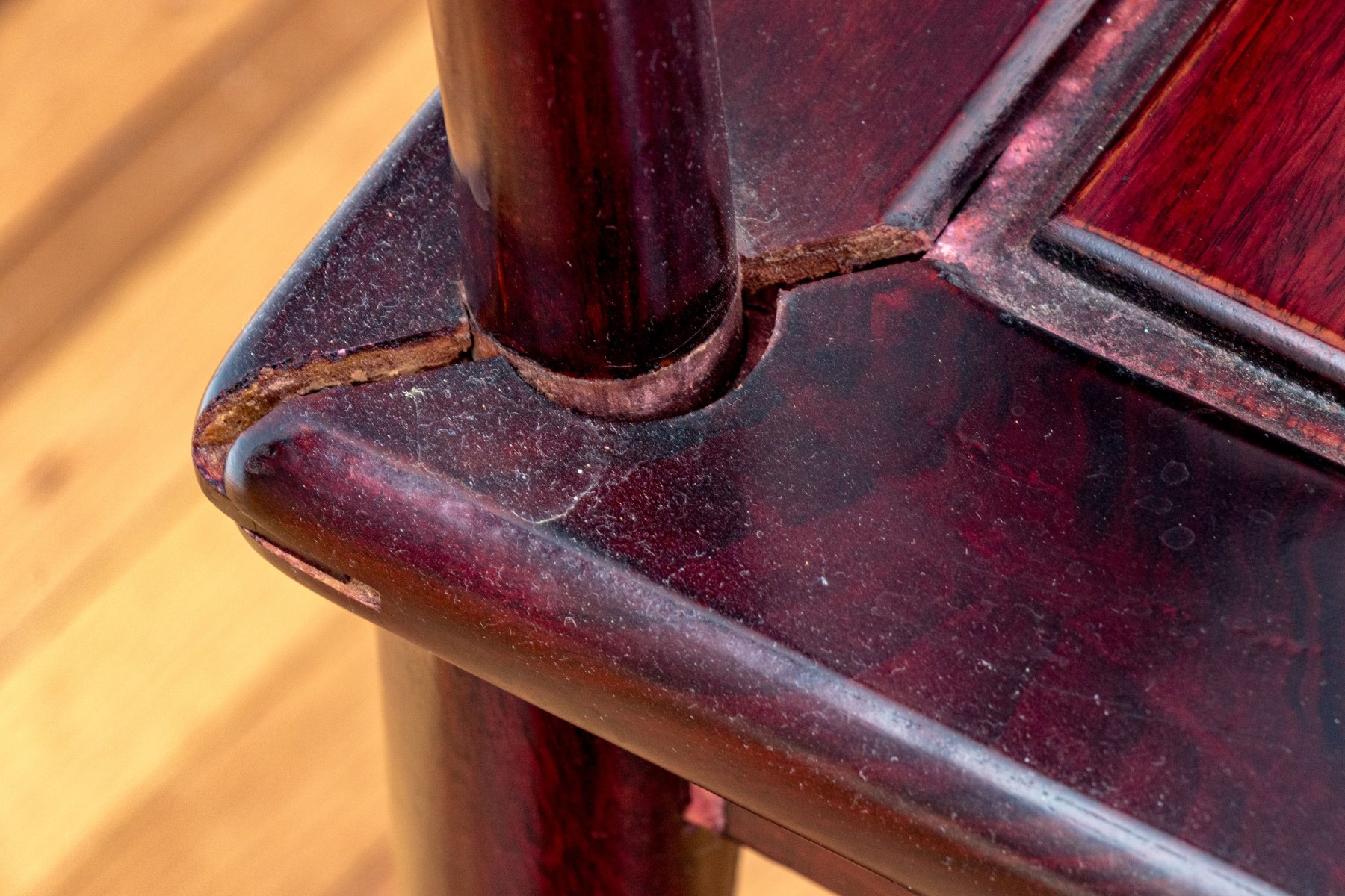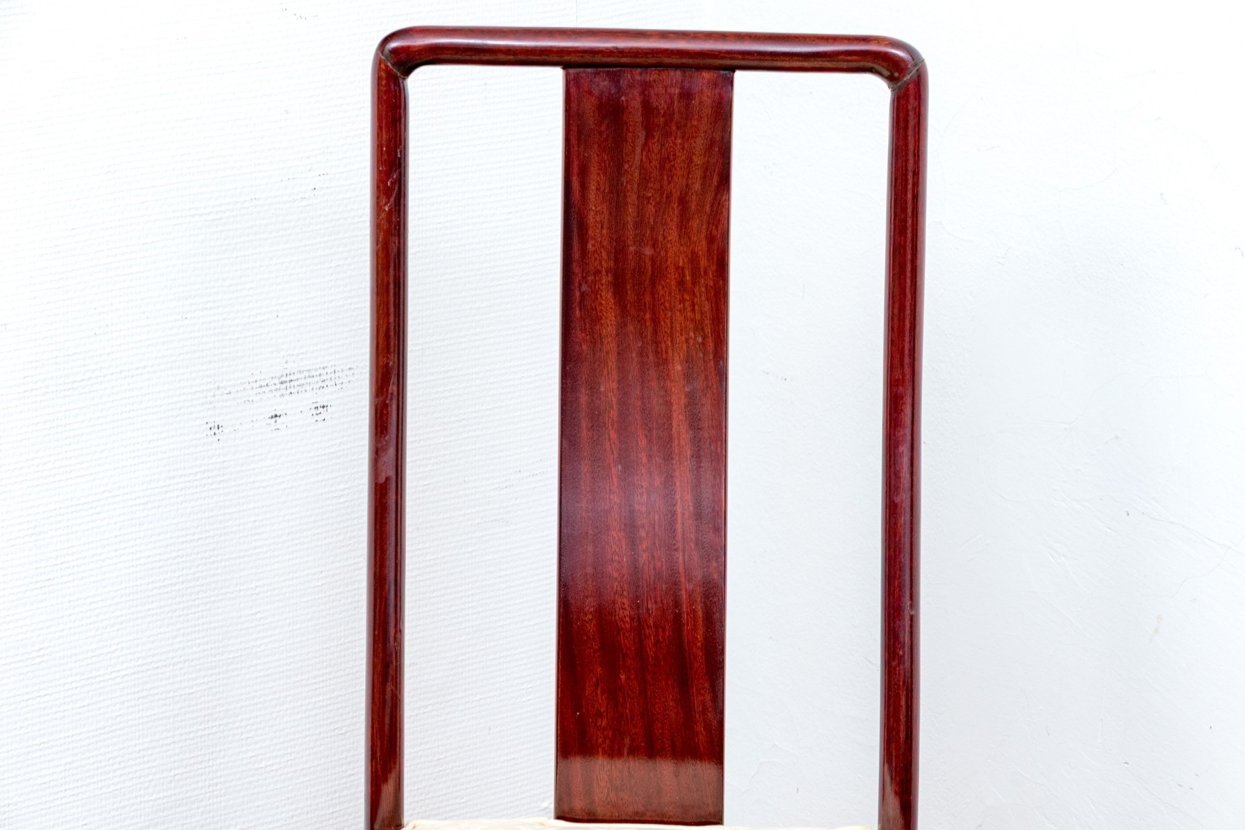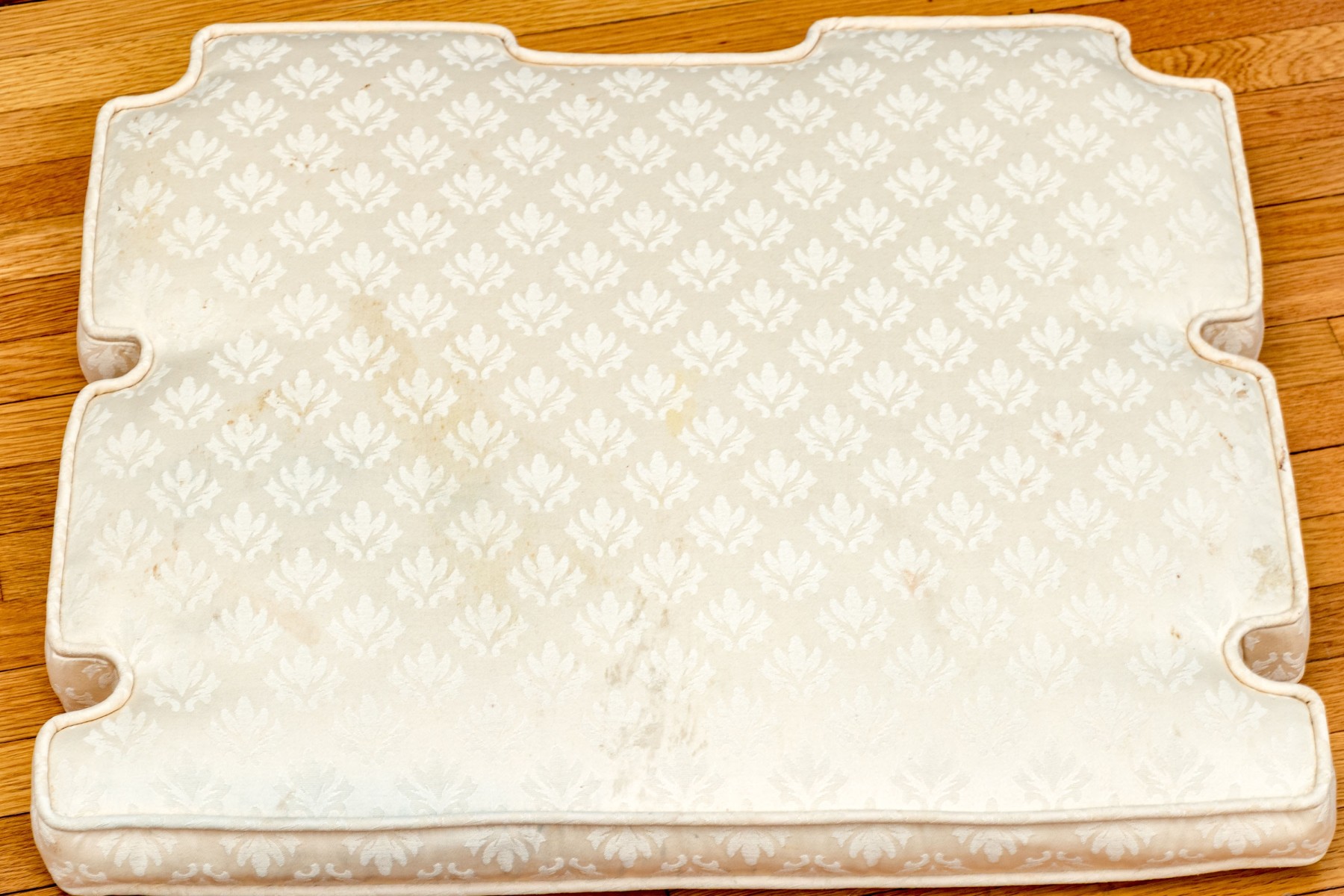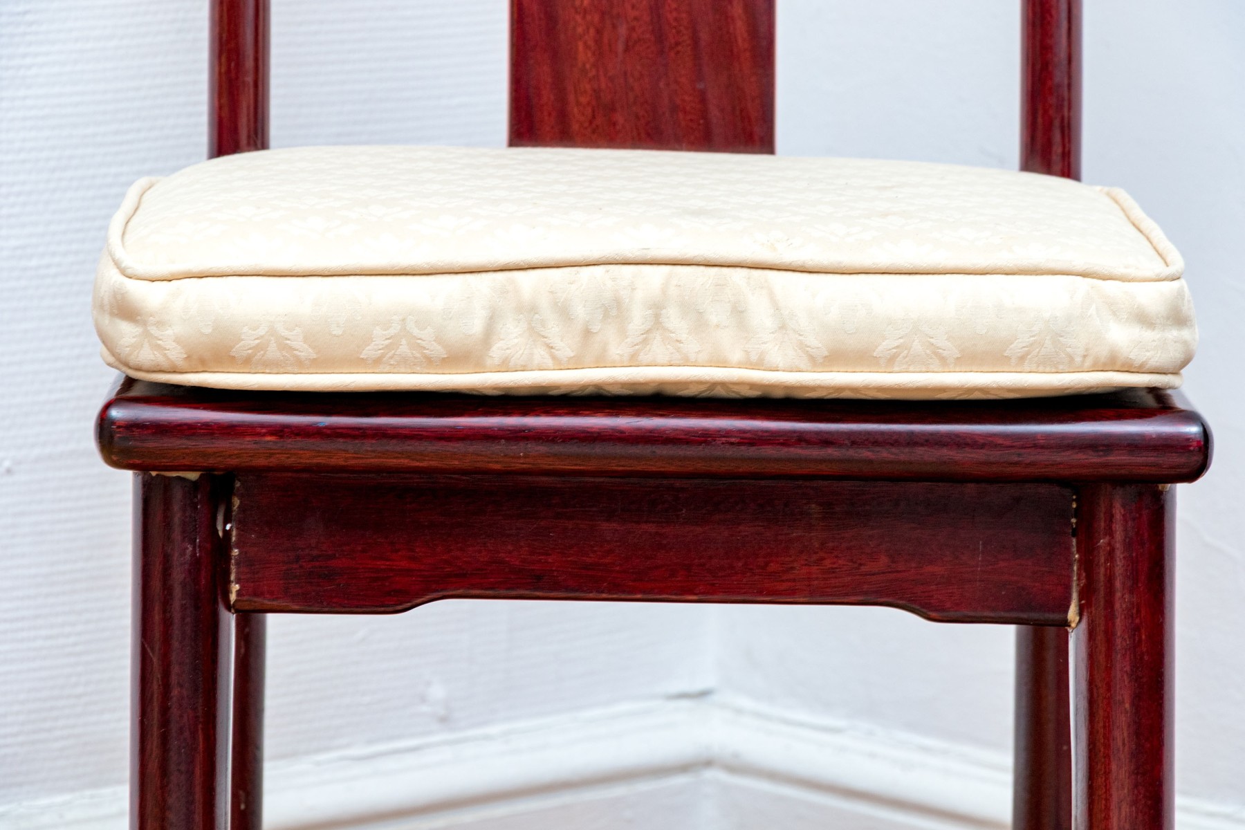 Some chairs with loose joinery, some will need to be reaffixed to secure. Some wear and stain spots to the upholstered seat cushions.