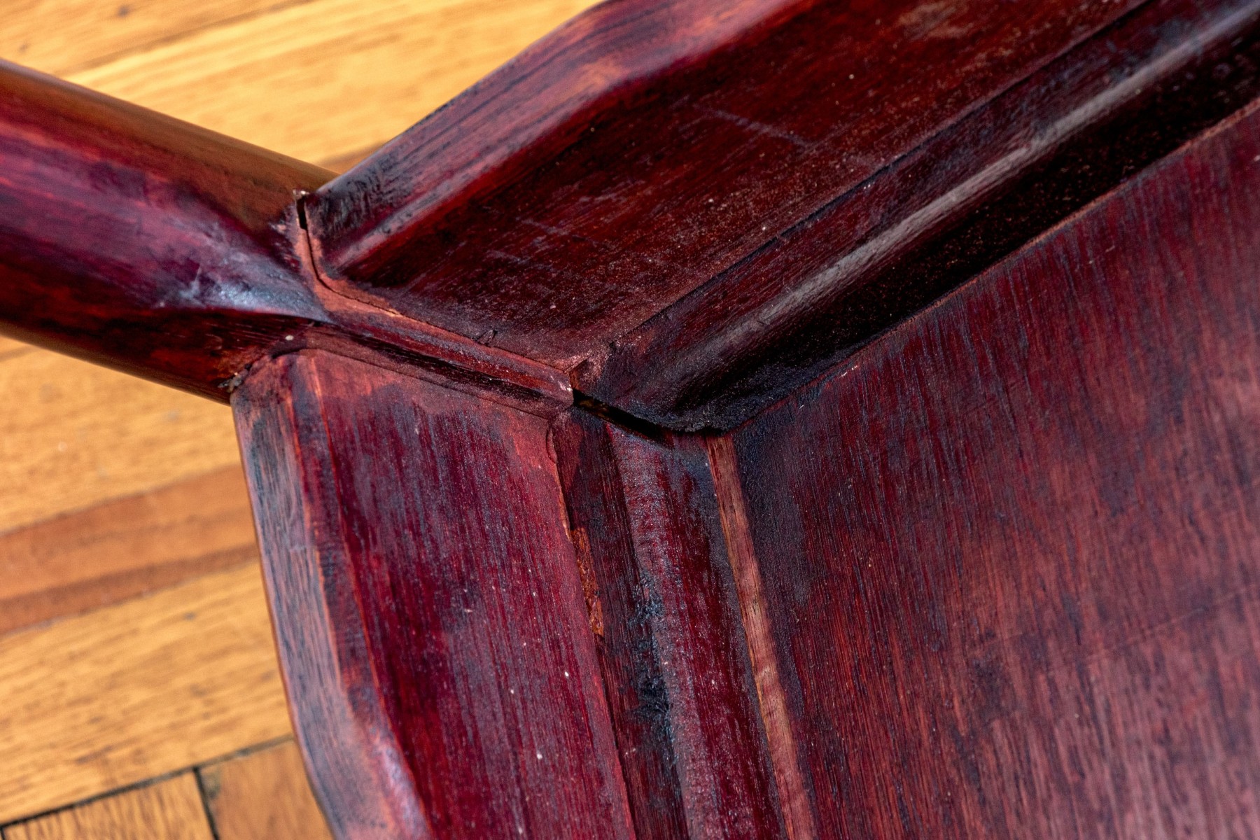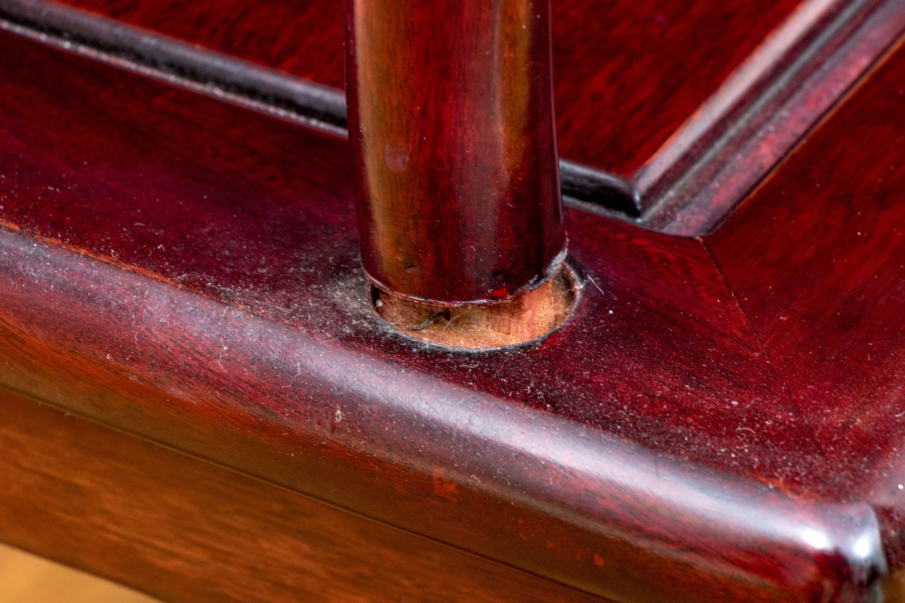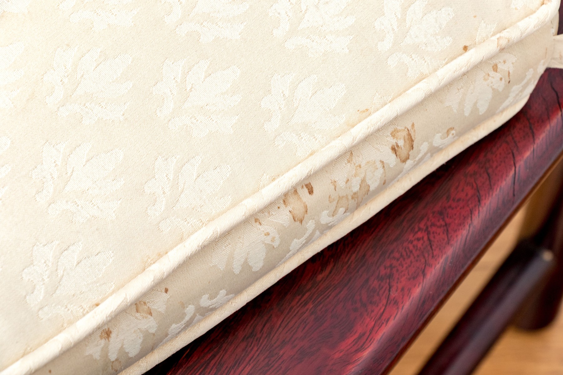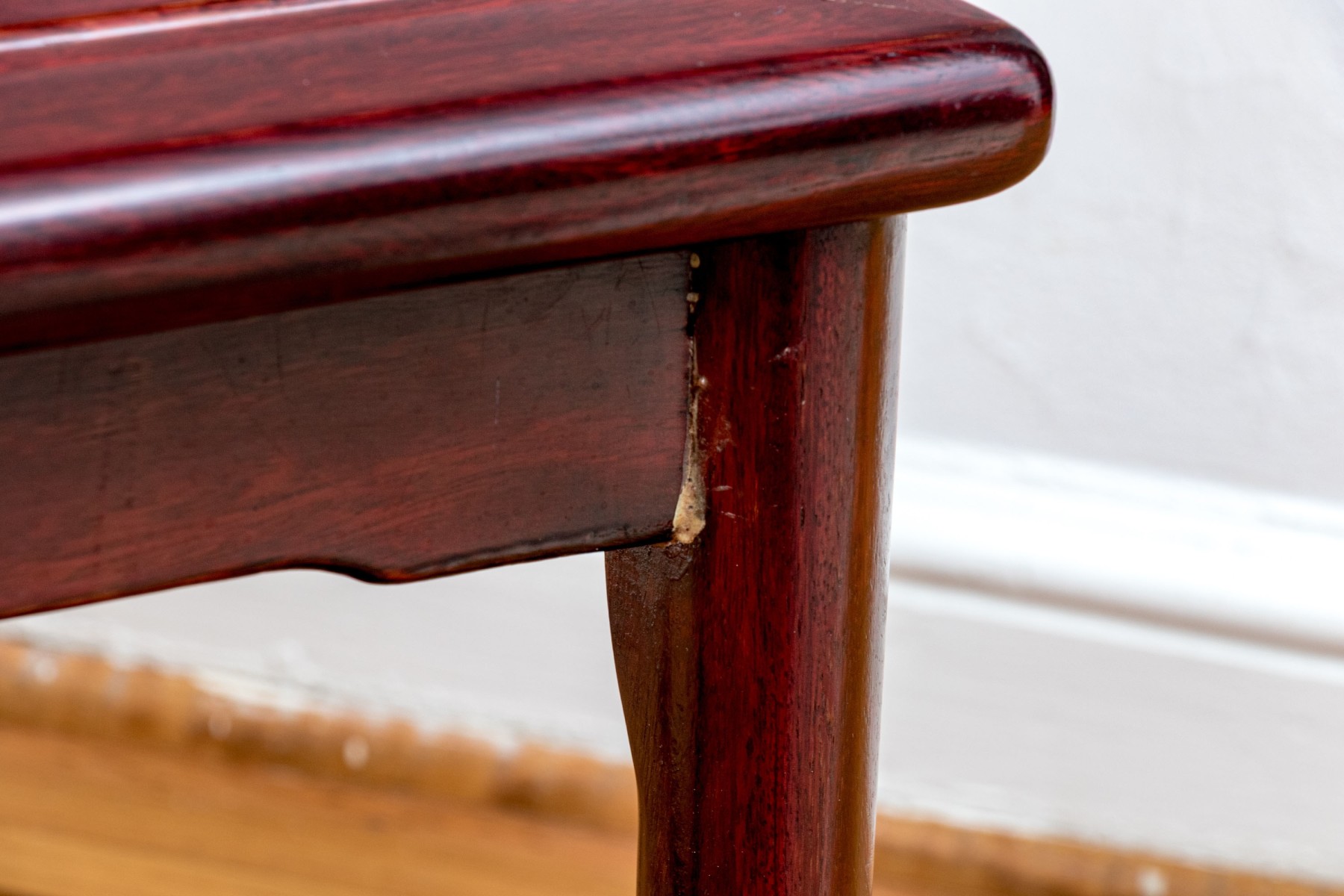 Some chairs with loose joinery, some will need to be reaffixed to secure. Some wear and stain spots to the upholstered seat cushions.