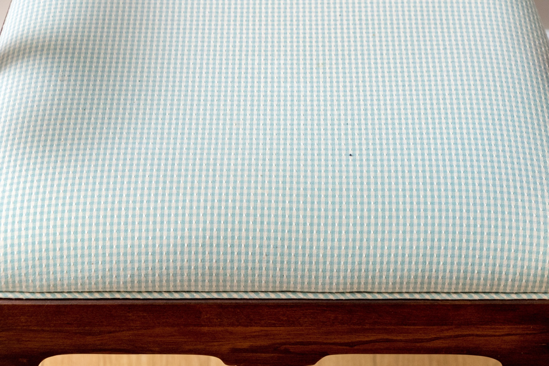 Some stain spots to the seat cushions. Gentle finish wear on the legs and table top but overall a gorgeous dining set.