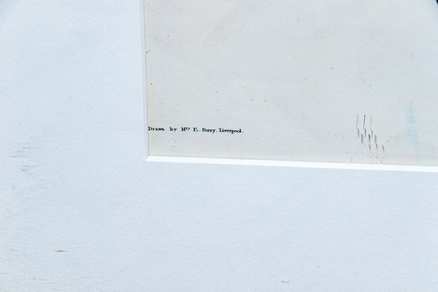 Displayed glazed and matted in a brown wood frame with a gilt inner border.
