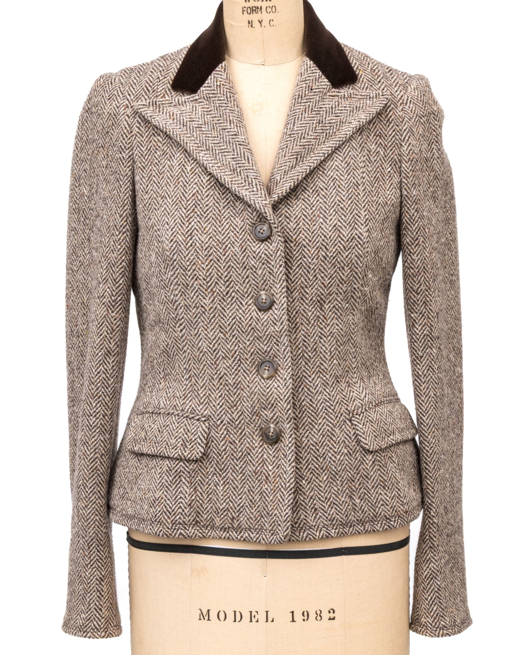 Ralph Lauren black label classic velvet collared herringbone short blazer, size 10