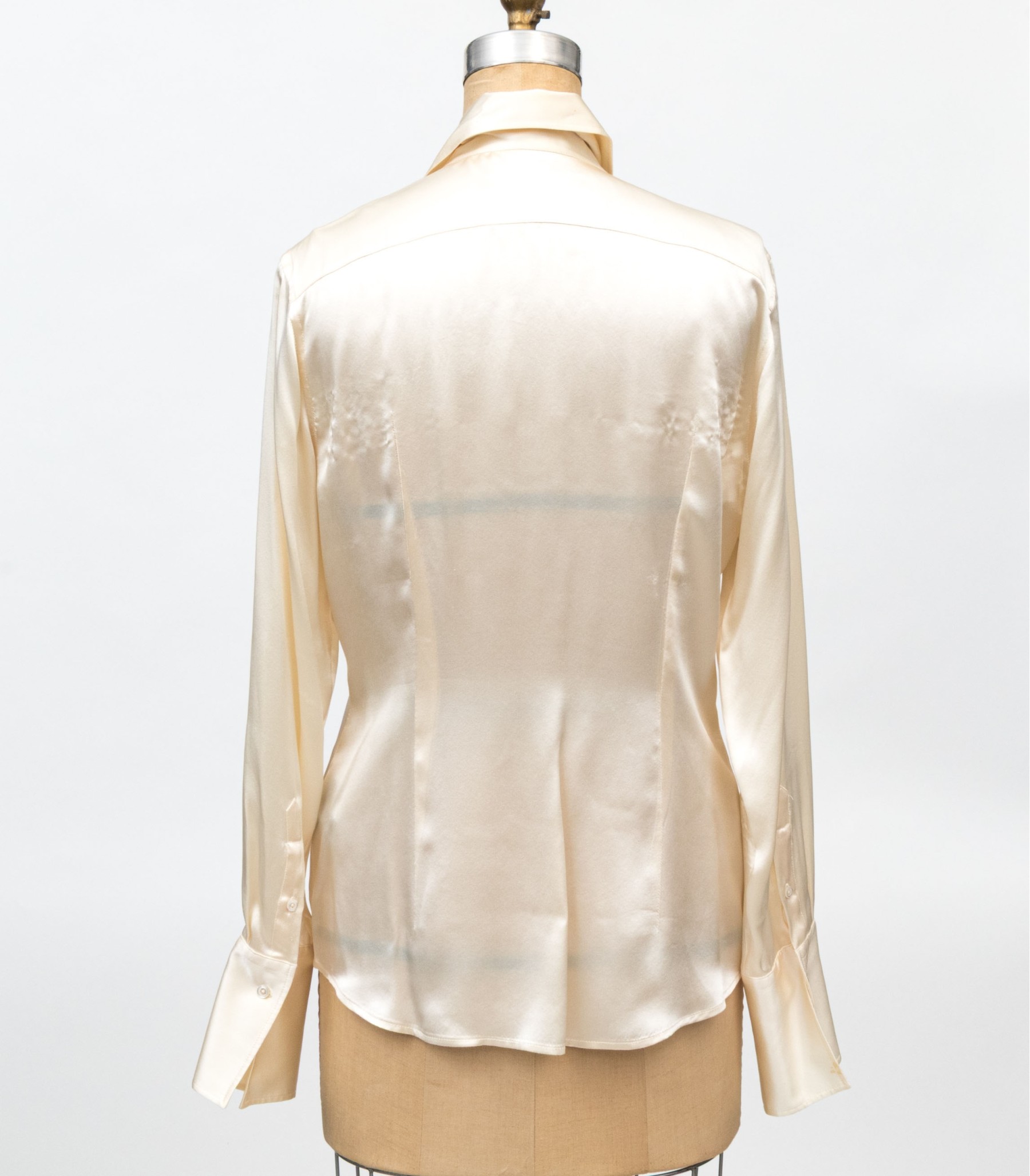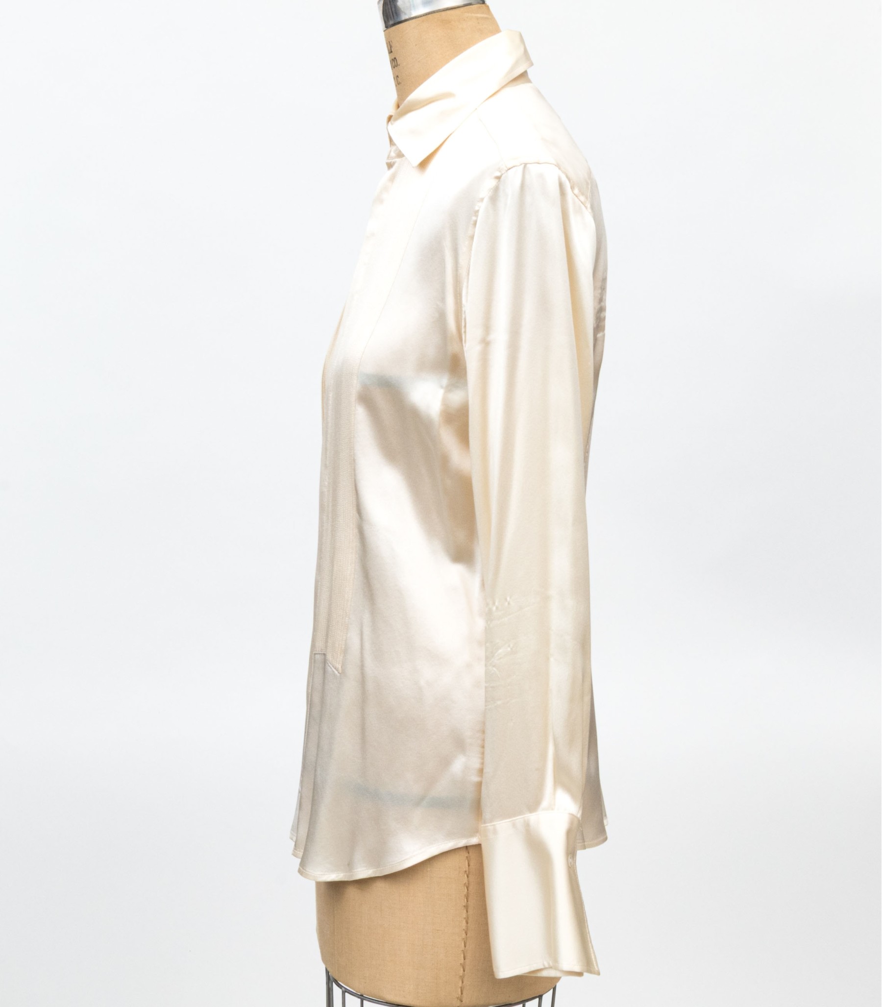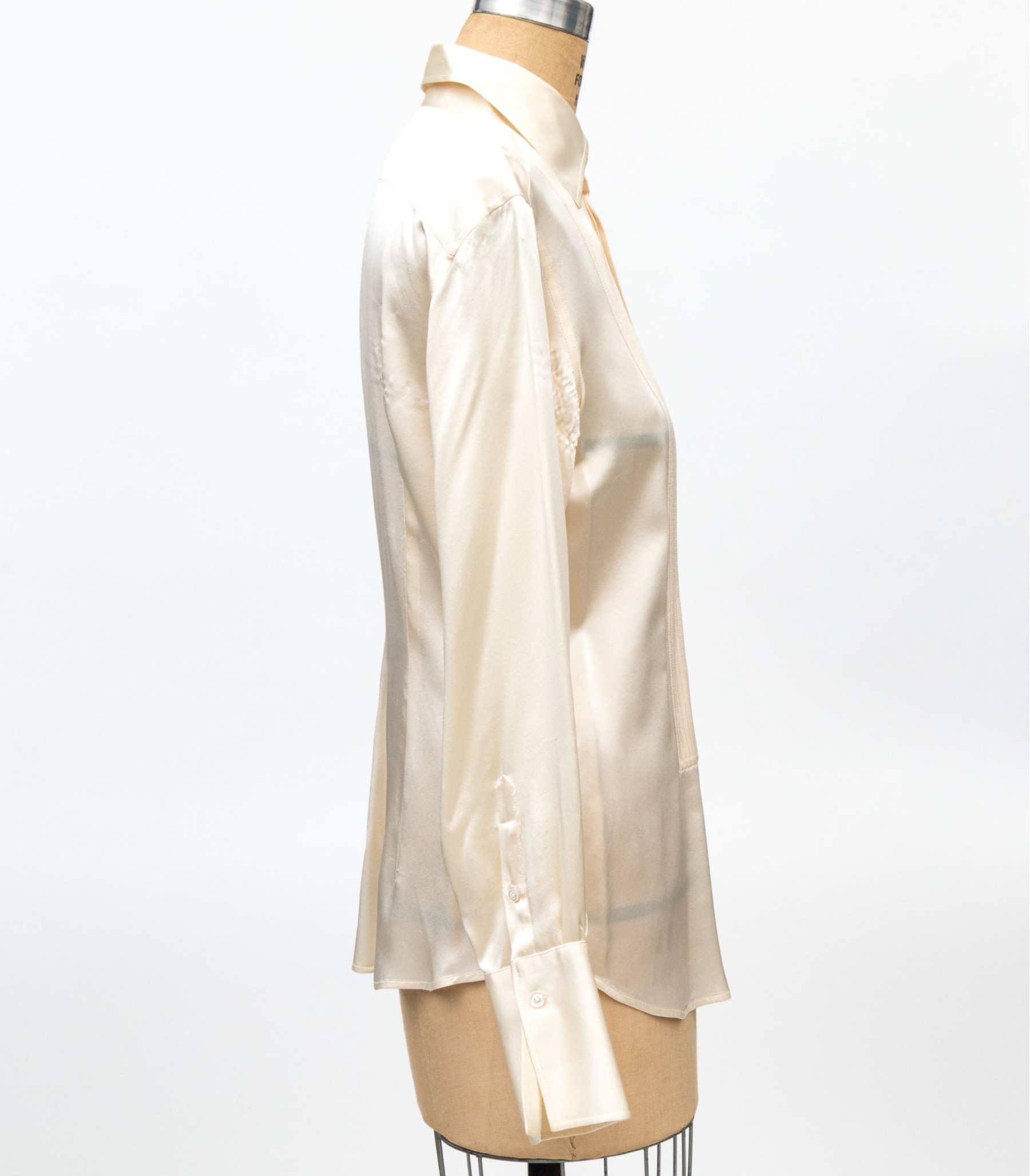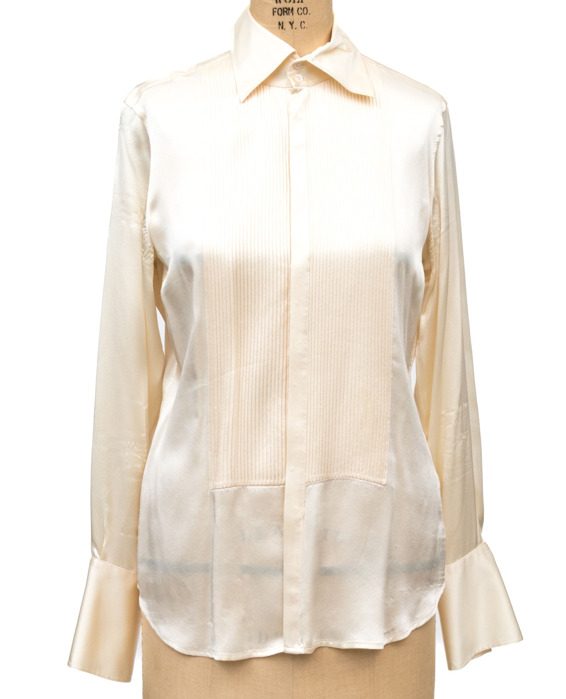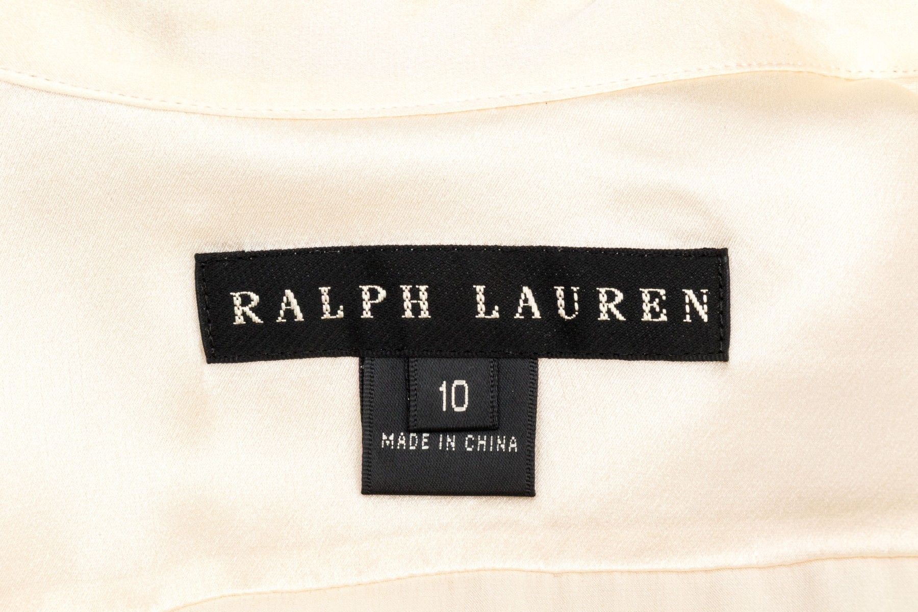 Ralph Lauren black label lovely ivory silk tuxedo motif blouse, size 10