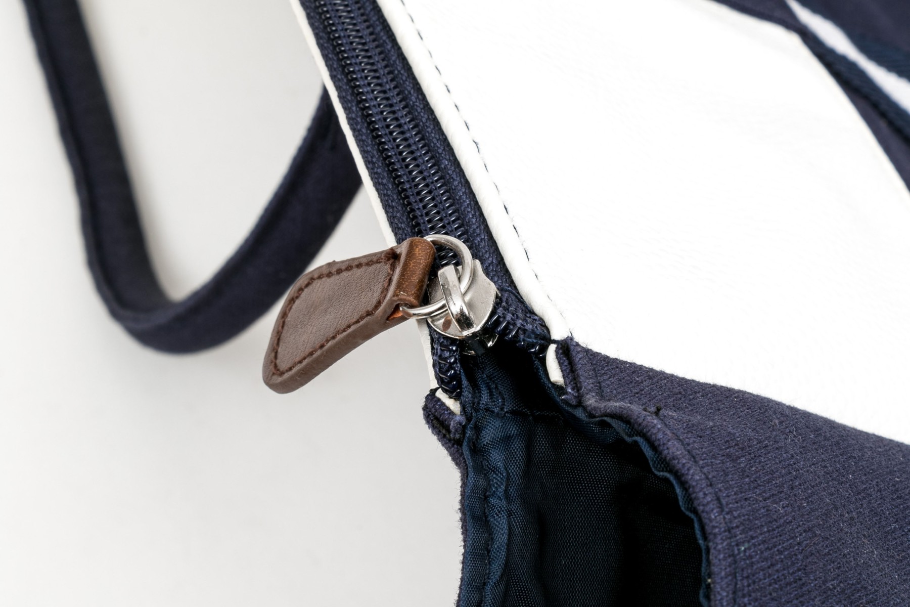 Color: Navy blue, brown, white