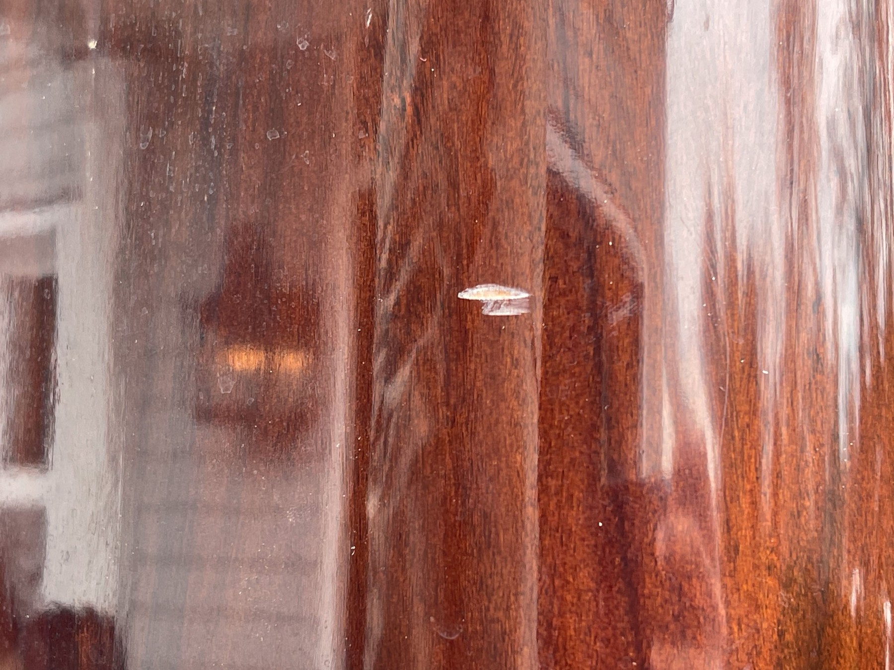 Condition: There are several areas with surface scuffs and scratches, additionally there is wear including losses to the veneered foot of the bar. Wear is commensurate with age and usage. See lot images for further visual inspection as they are considered part of the lot condition report.