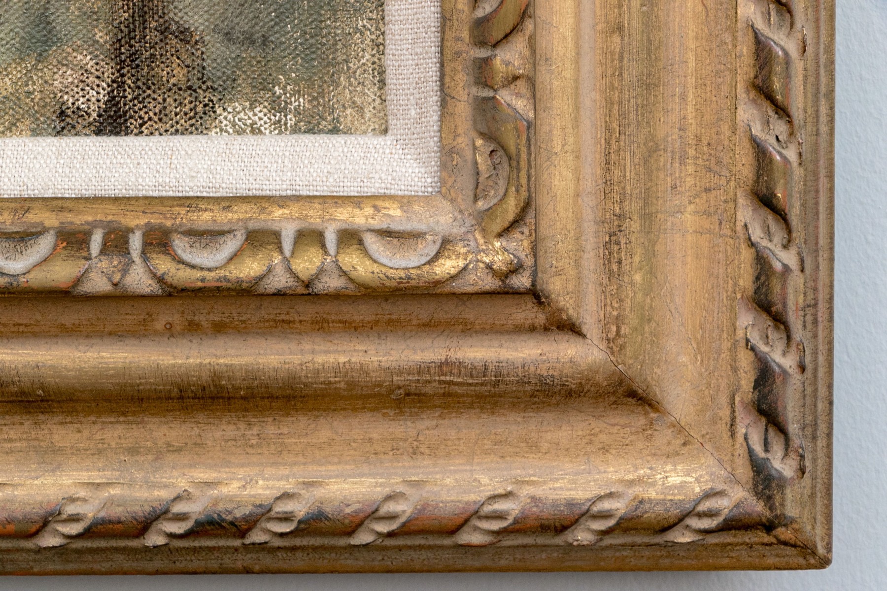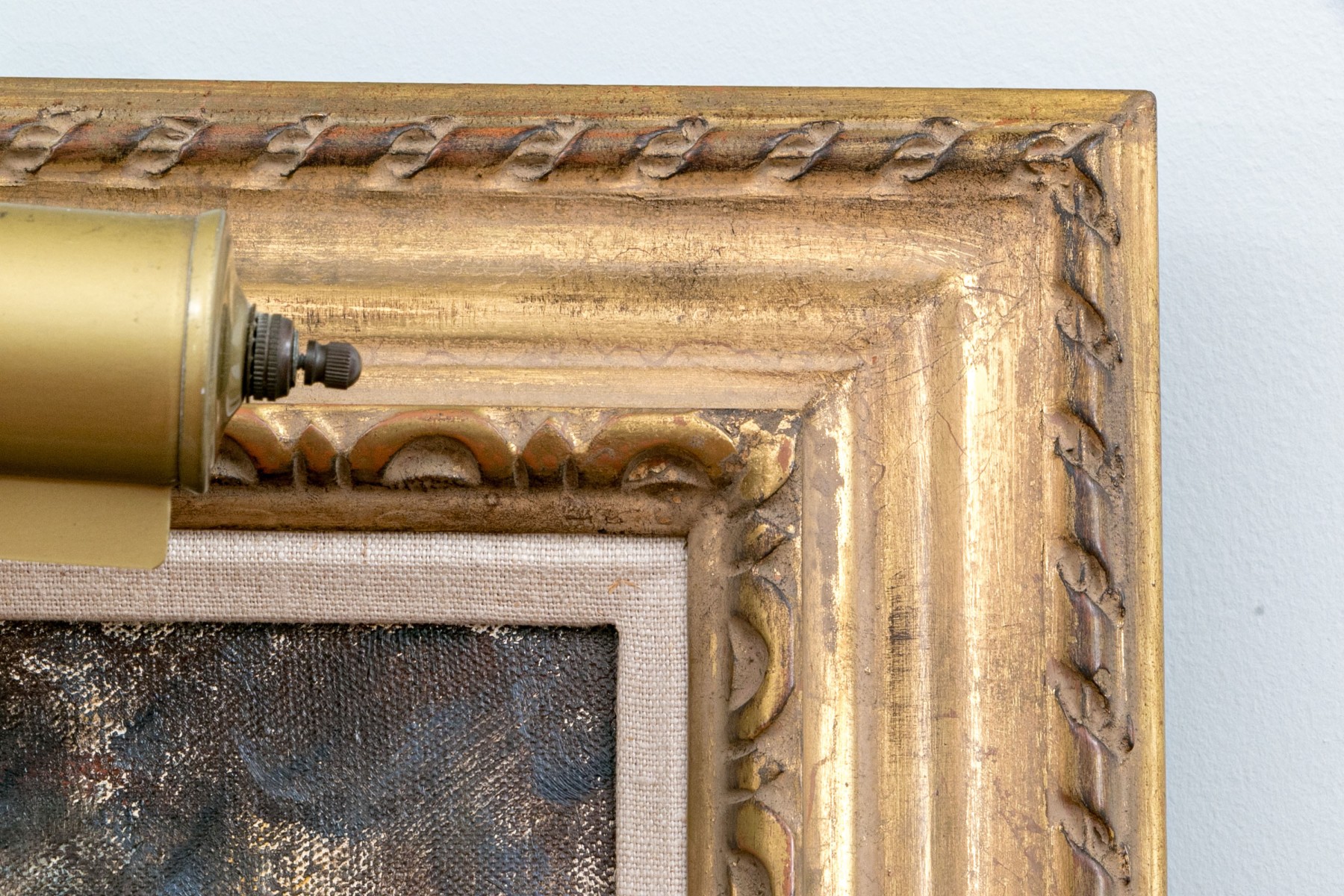 Displayed in a gilt frame with a linen liner and an affixed picture light.