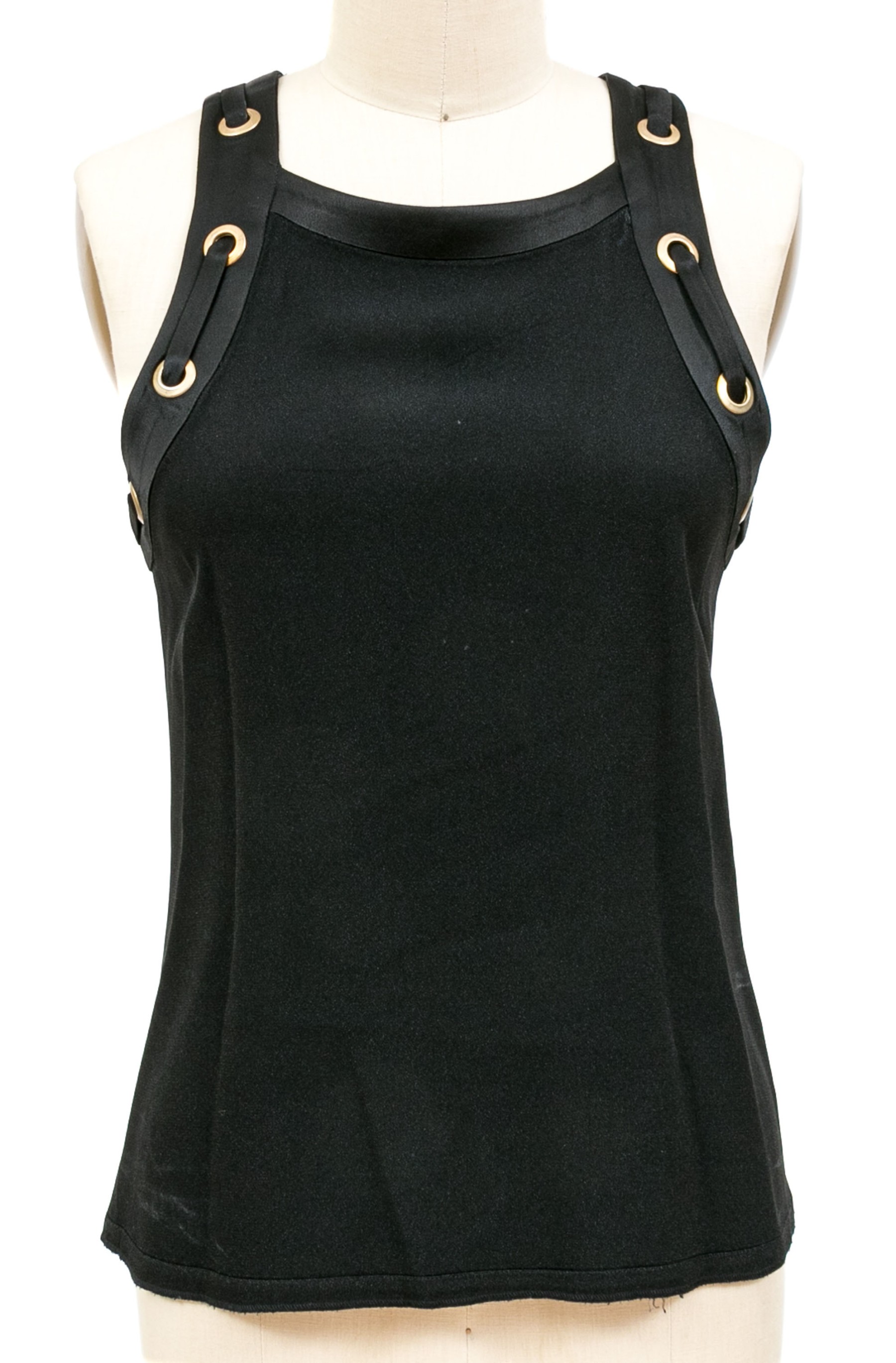 Ramy Brook beautiful black grommet decorated sleeveless tank, size XS or S