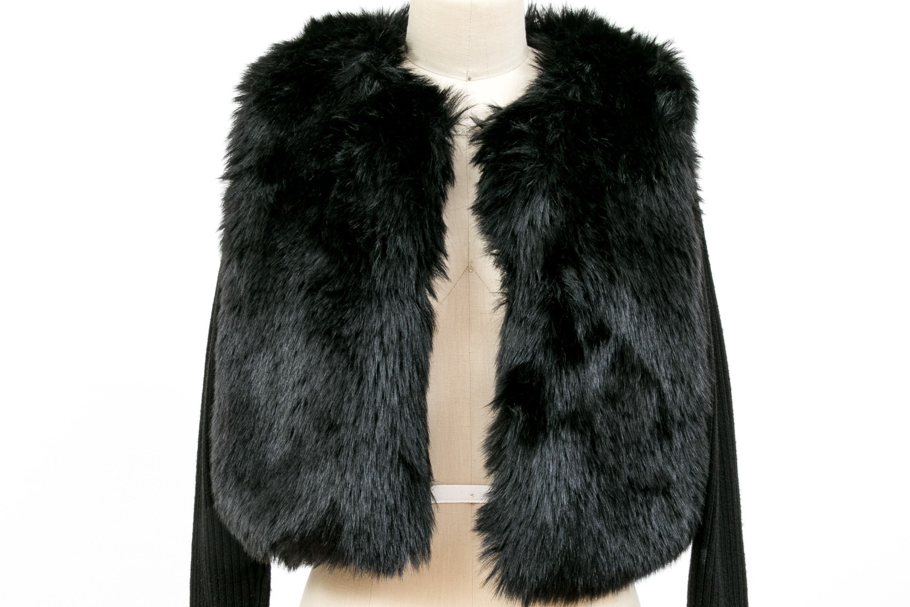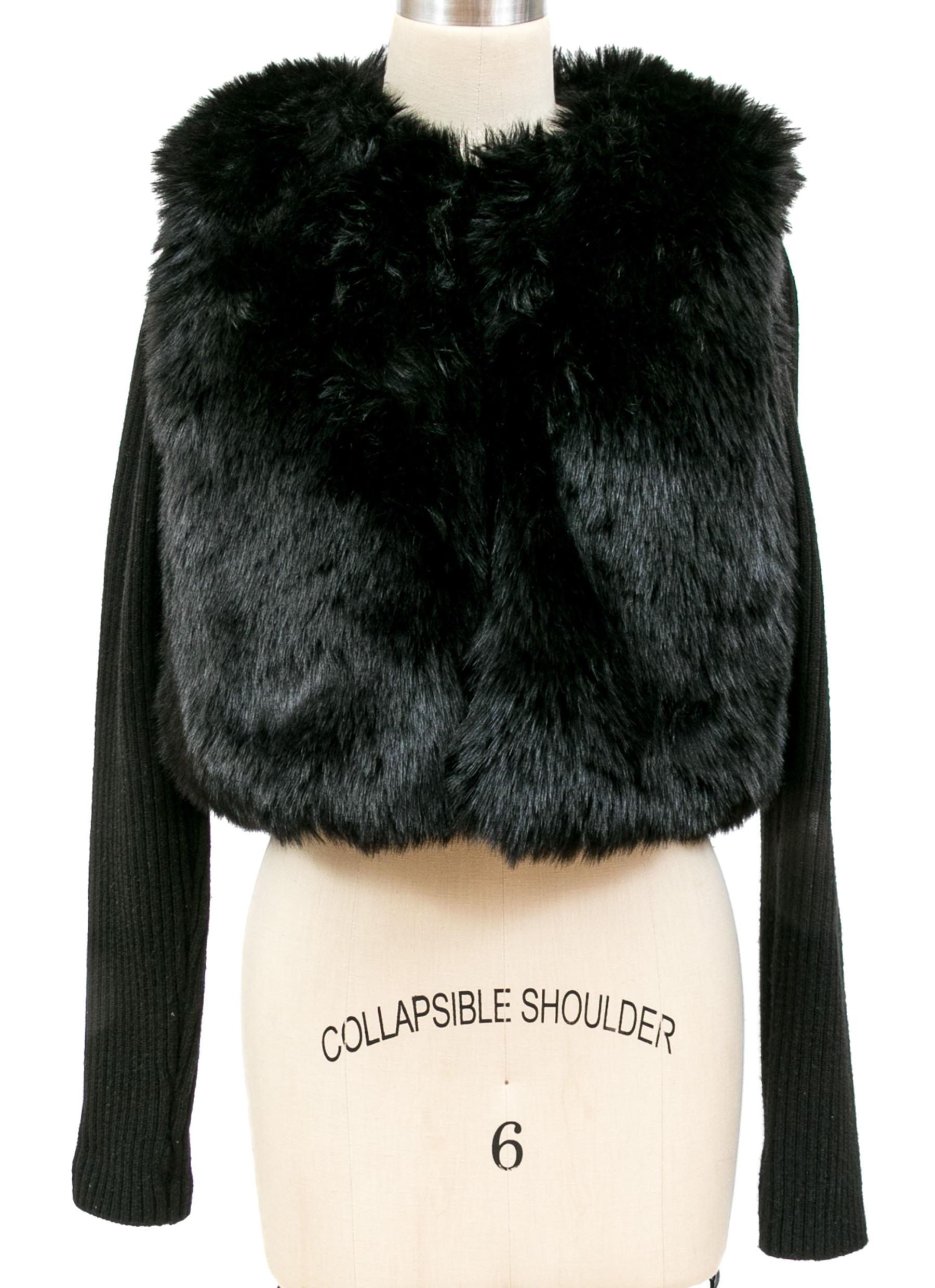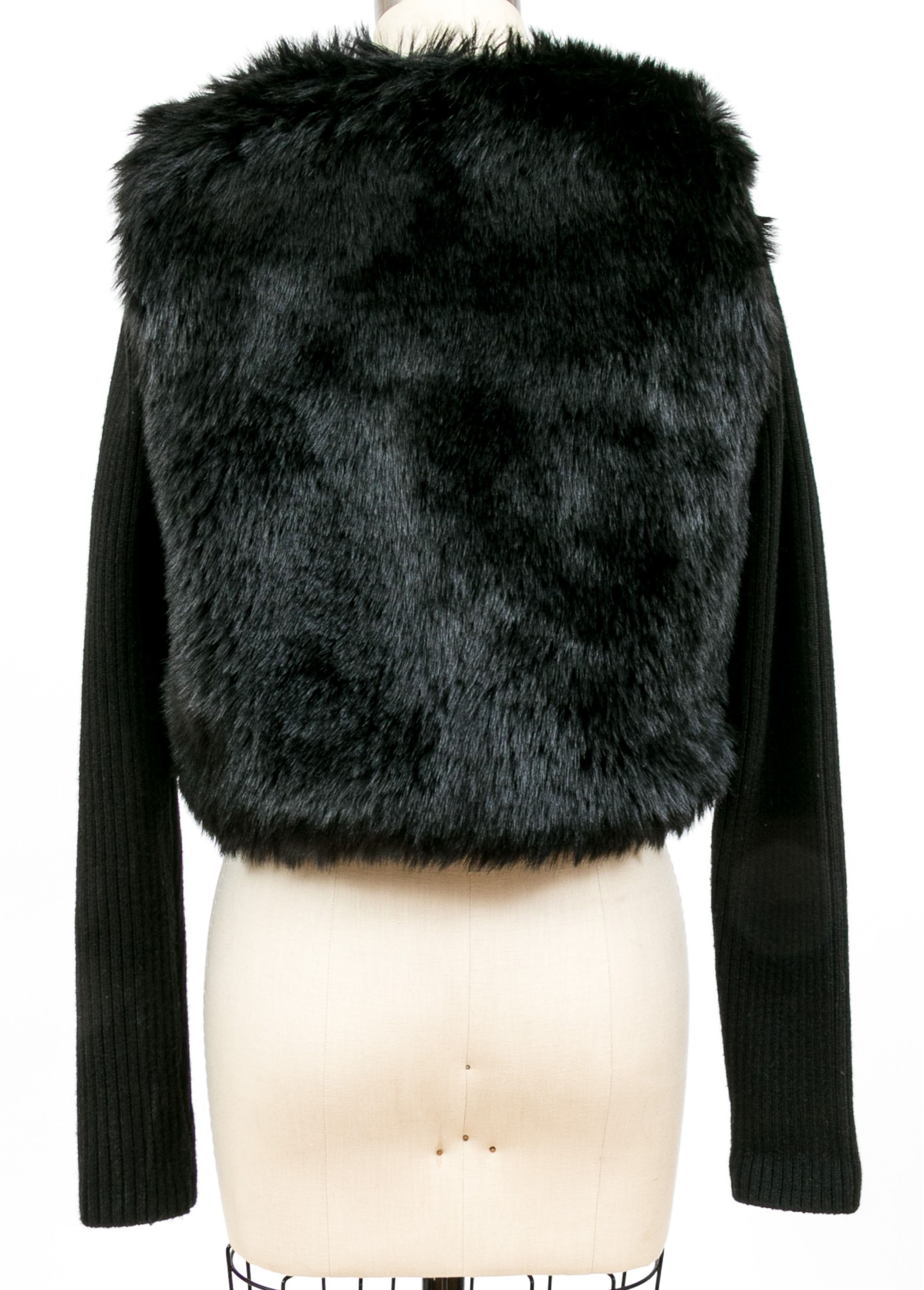 Ramy Brook stunning black faux fur sweater jacket, size XS