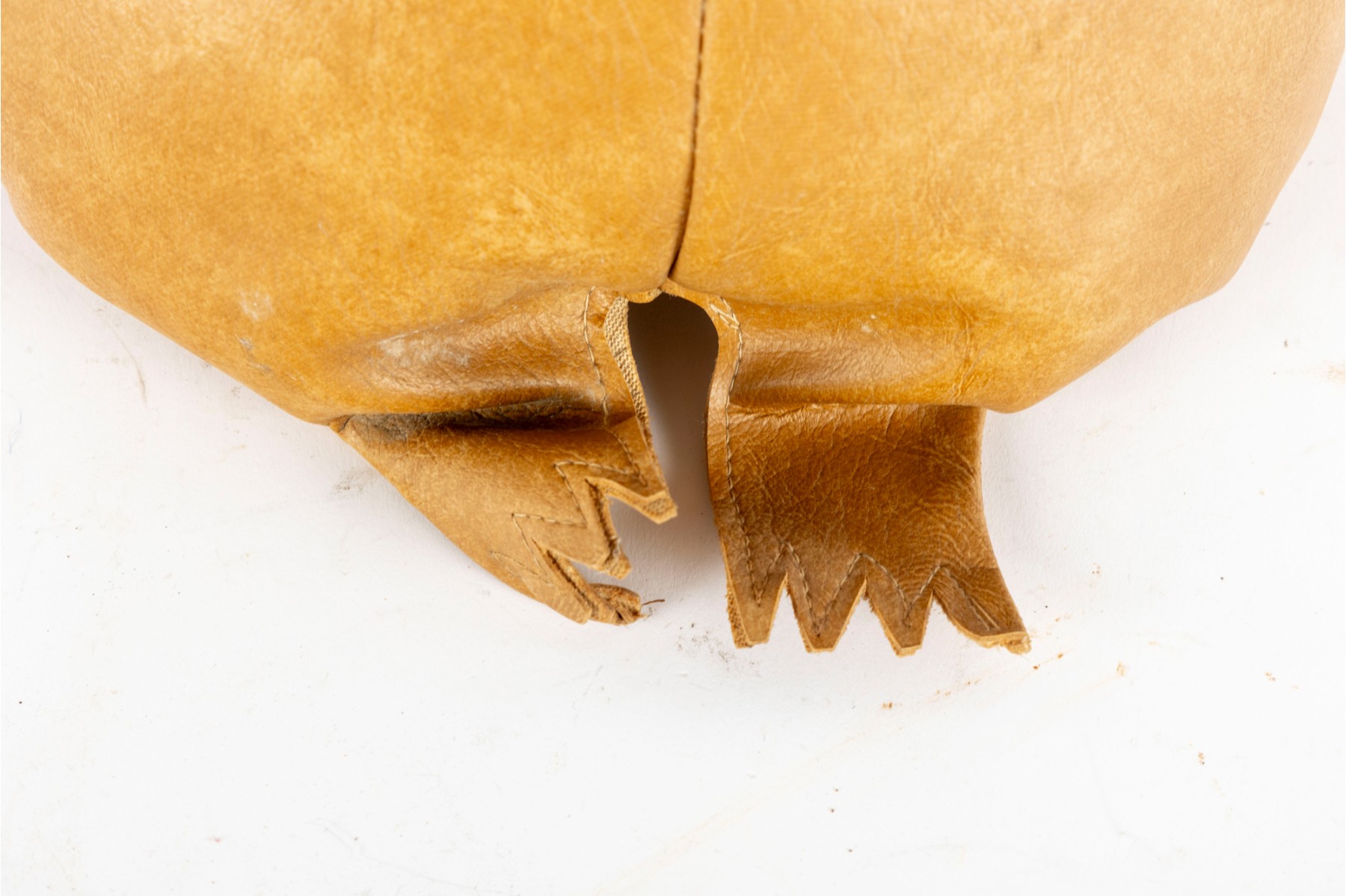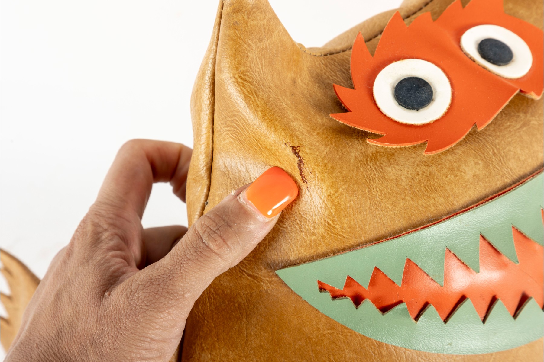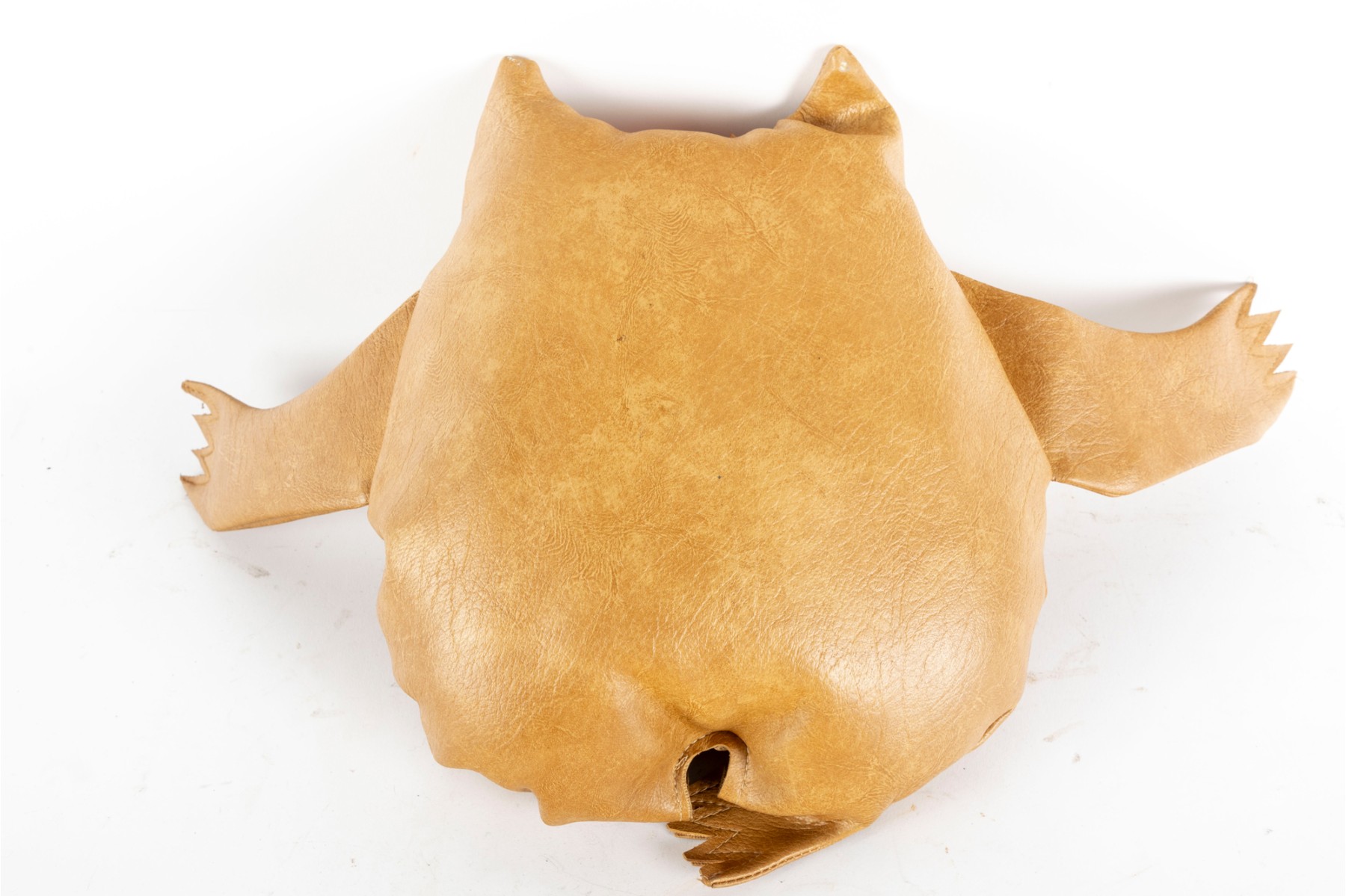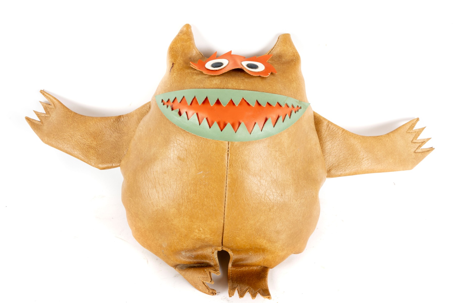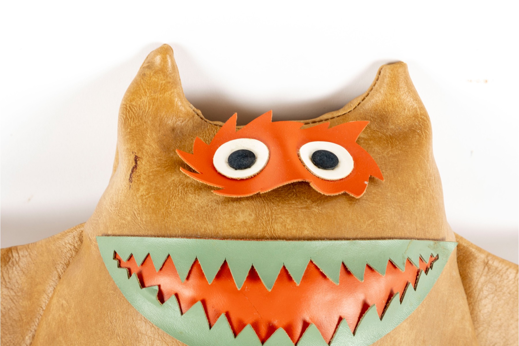 A vintage original "Nauga" monster doll crafted from Naugahyde, an American artificial rubber-based leather. The Nauga was born of a late 1960's advertising campaign for Naugahyde leather products.