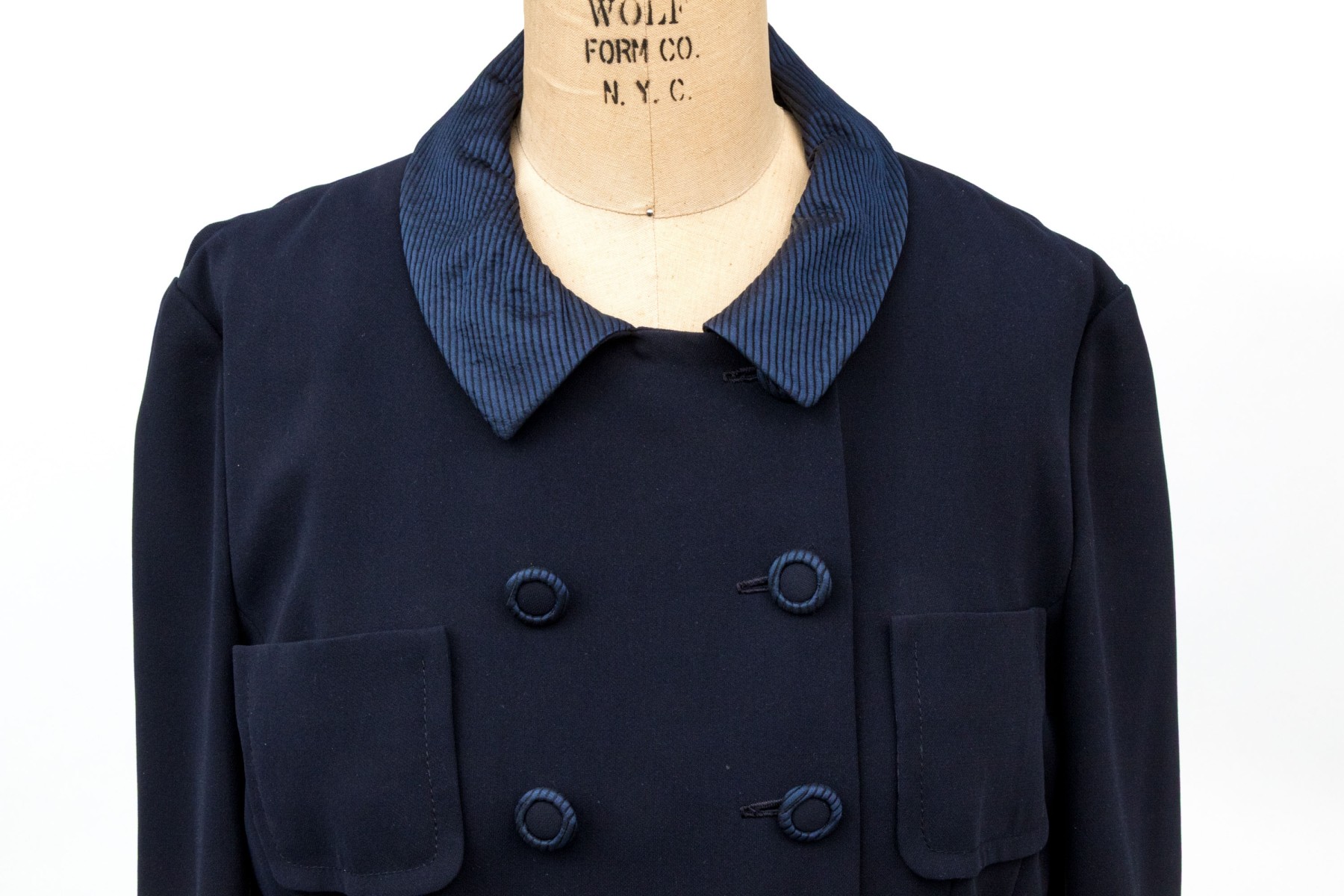Razooks Soir Noir by Angelica Rueggeberg blue double breasted coat dress, size 38