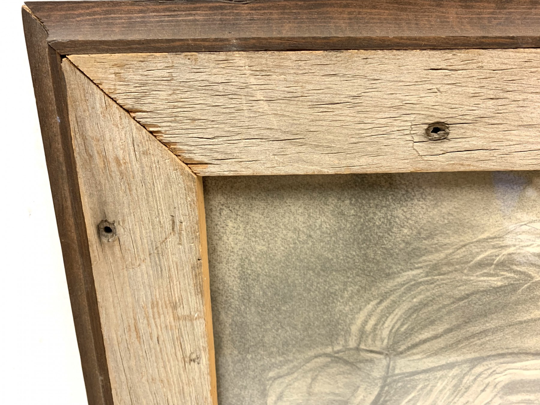 Condition: two old holes in frame, discoloration/sunned to portrait's chest (see photo)