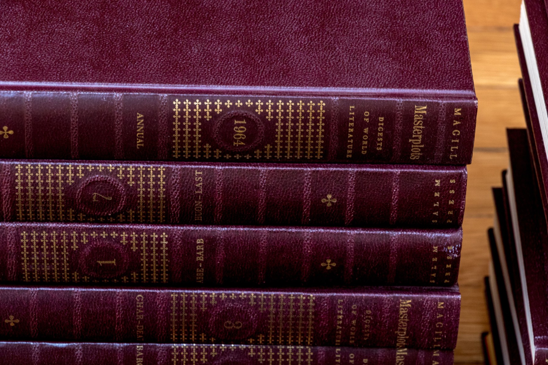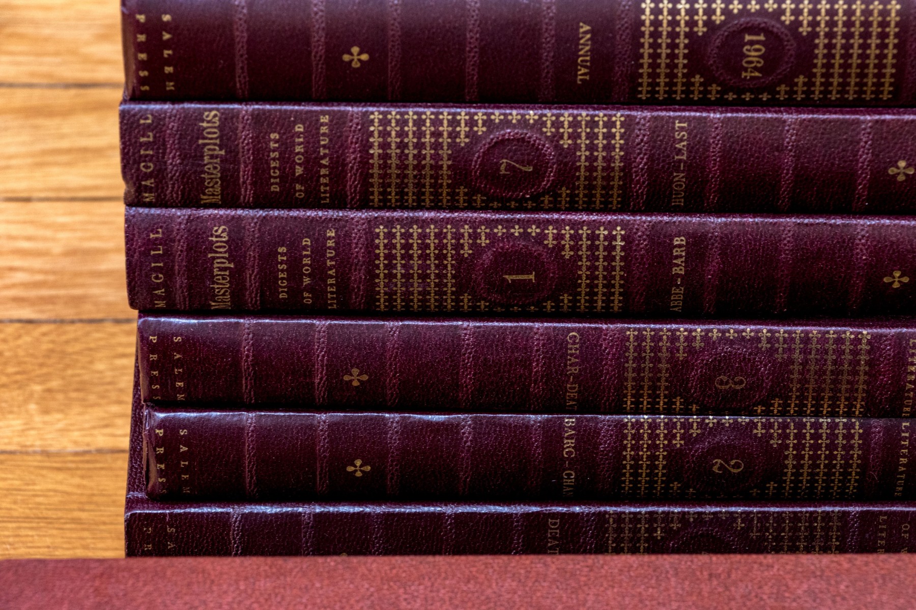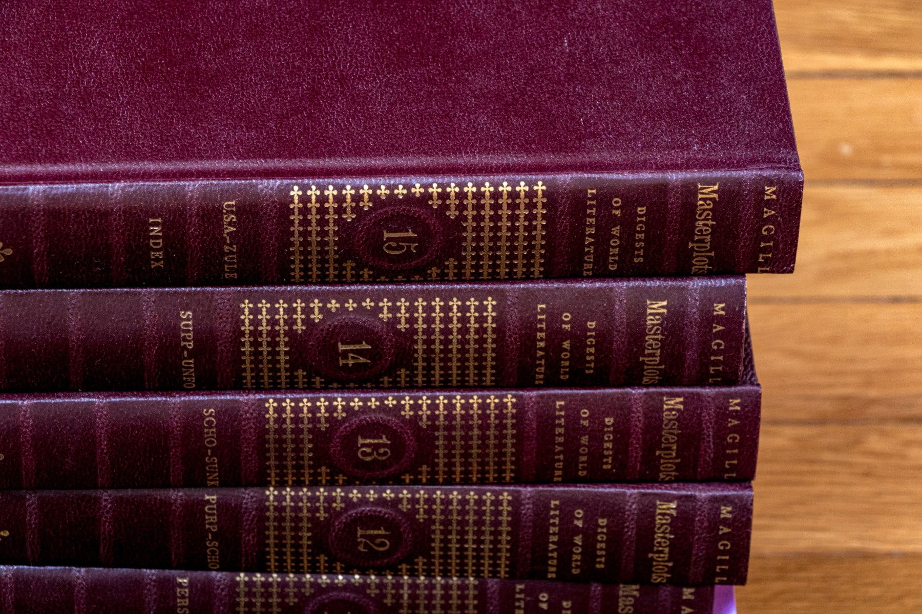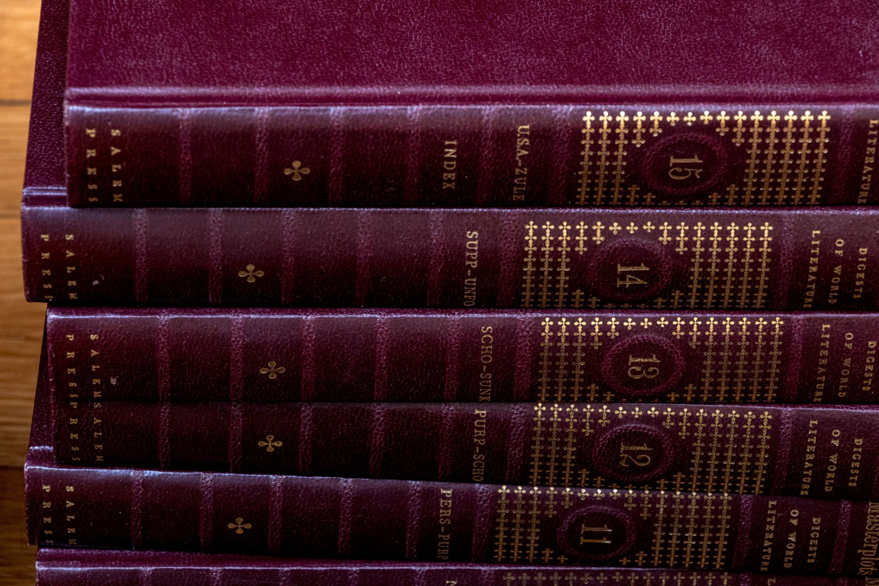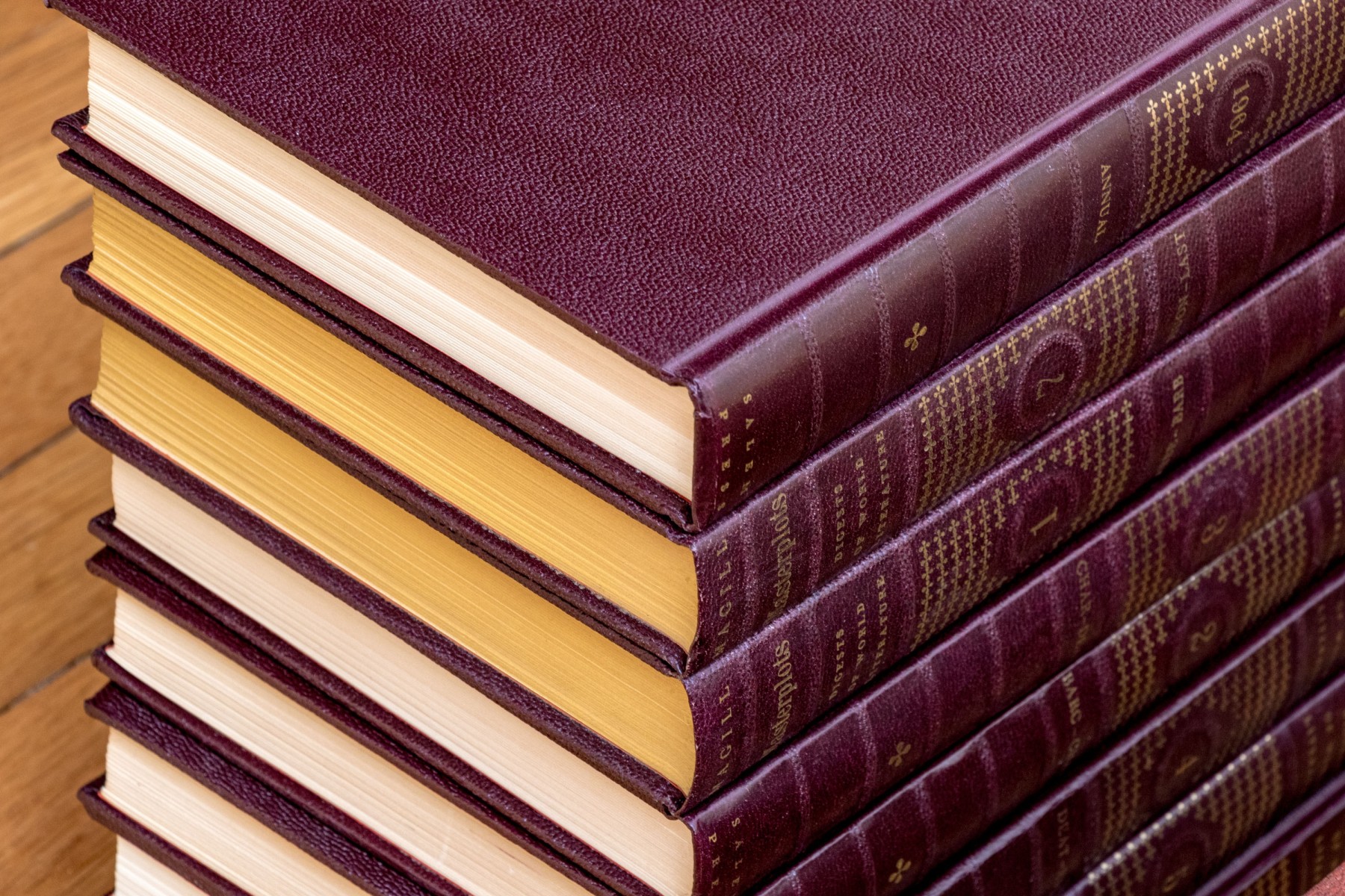 A wonderful collection of twenty-four leather bound books including "Richards Topical Encyclopedia" and "Digests of World Literature."