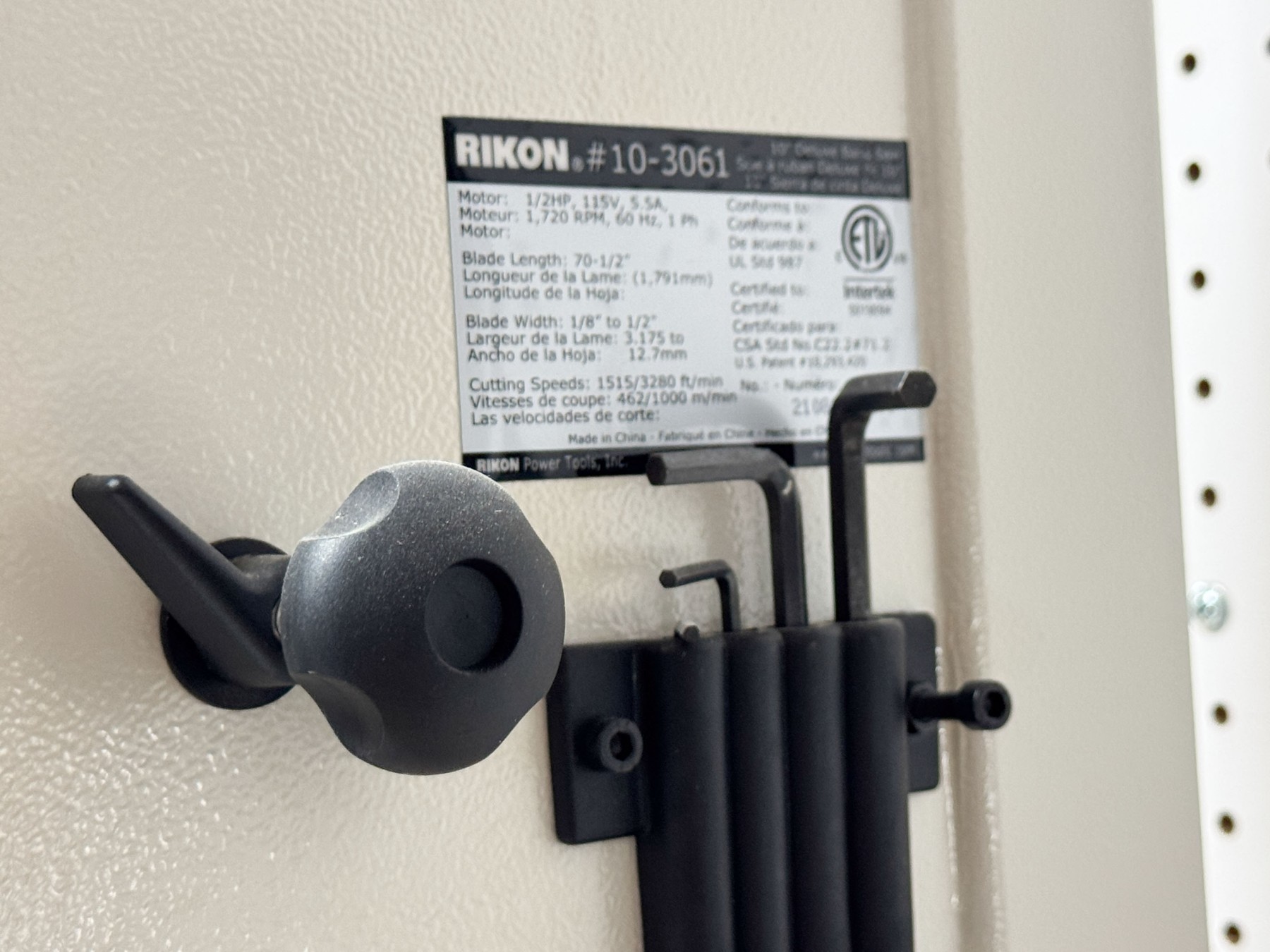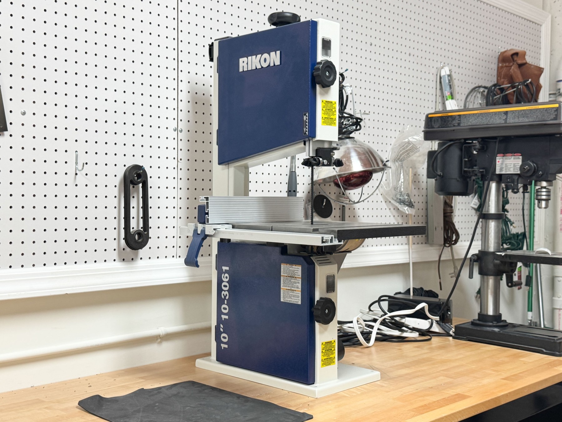 A great Rikon model 10-3061 deluxe bandsaw in wonderful blue and white.