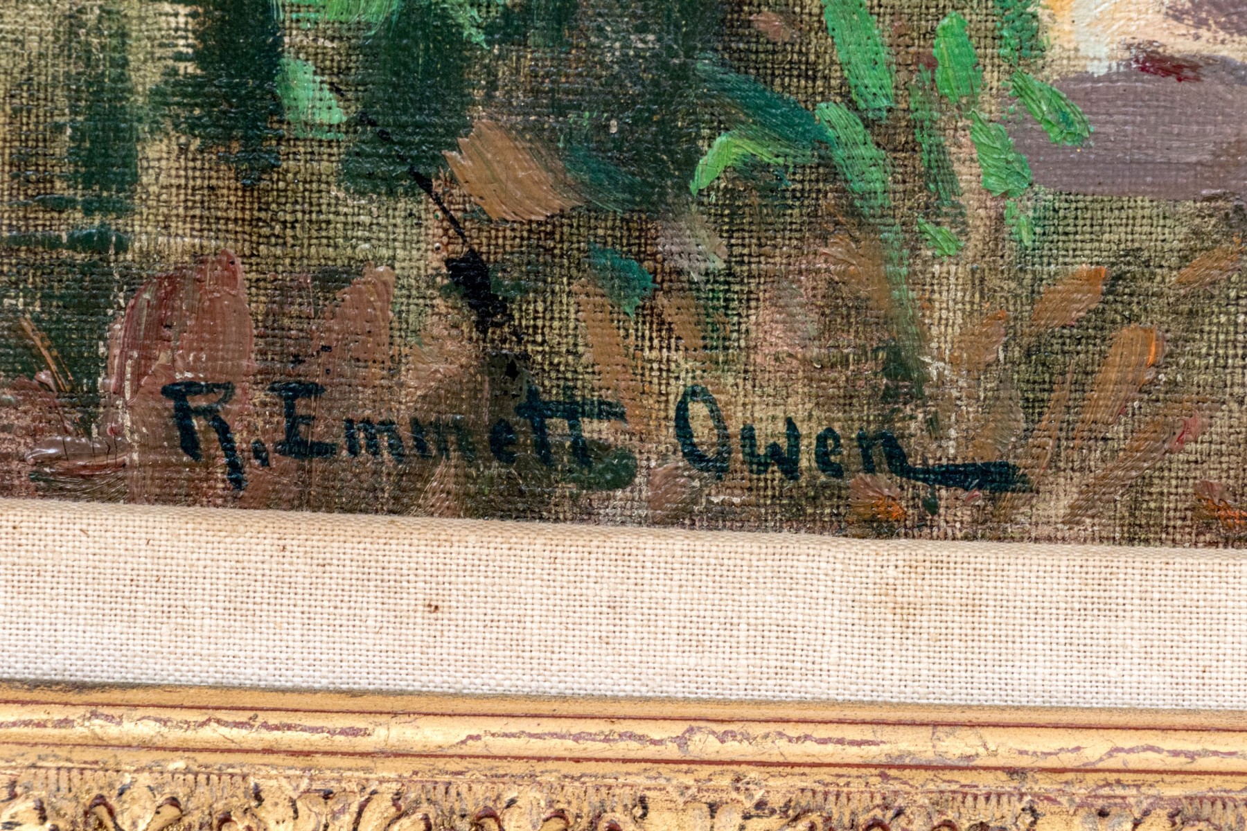 Signed R. Emmett Owen lower left. Provenance: Howard Young Galleries, Old and Modern Paintings, New York label on verso. Presented in a lavish carved wood and gesso gilt finished frame with interior liner.