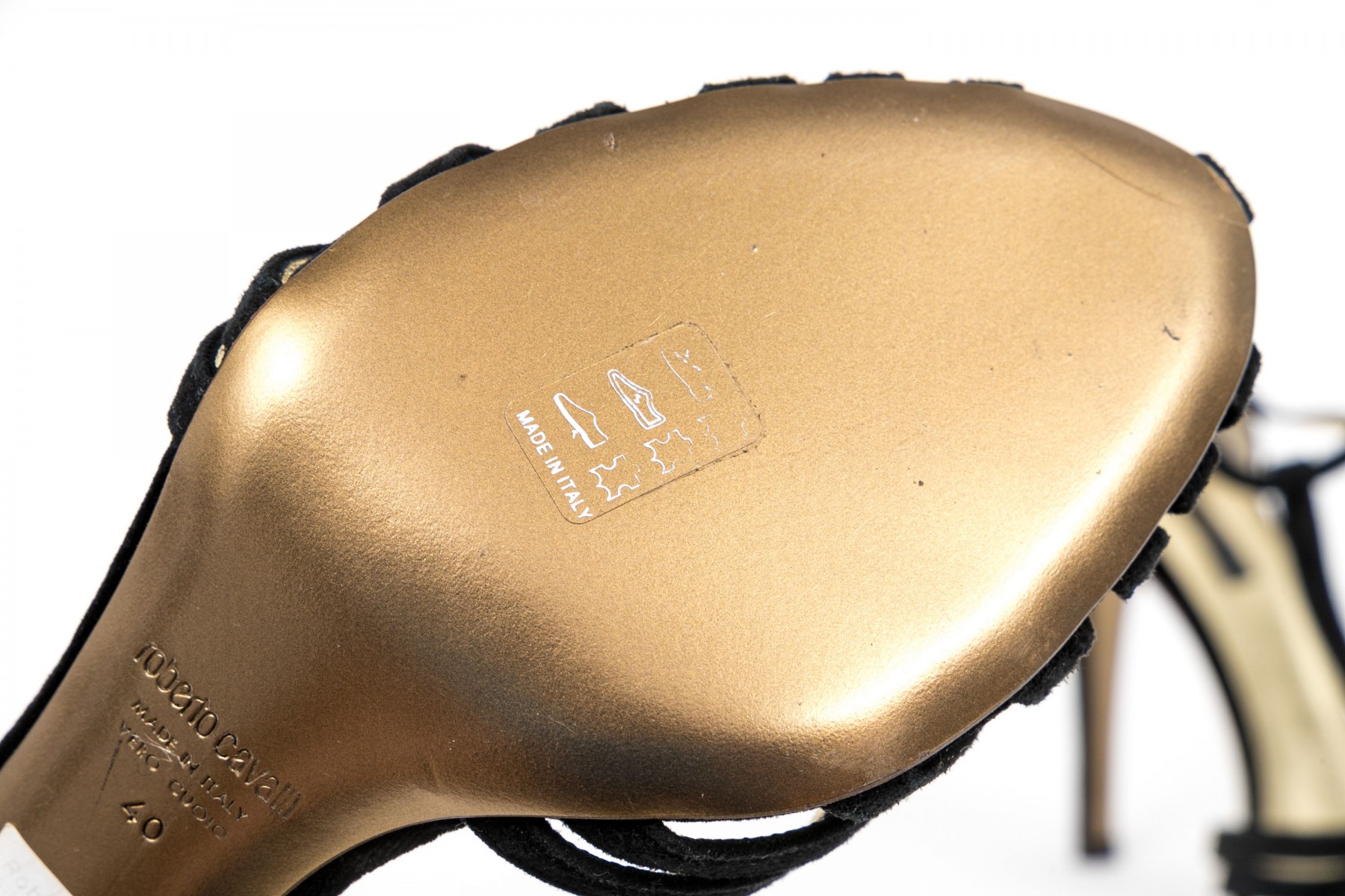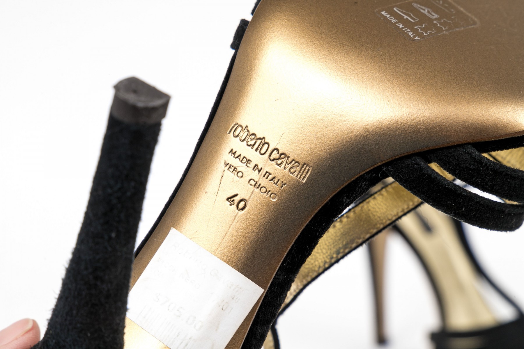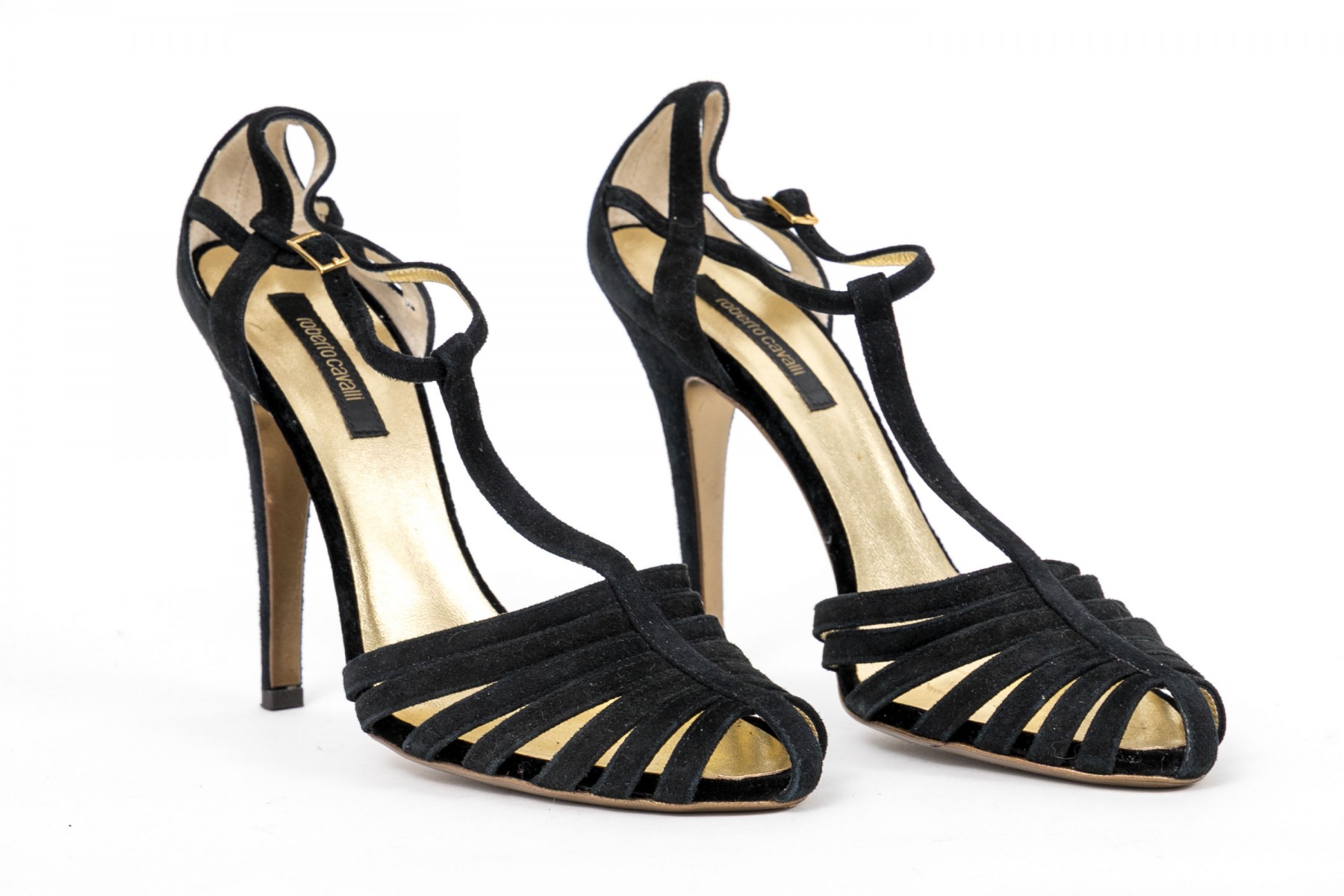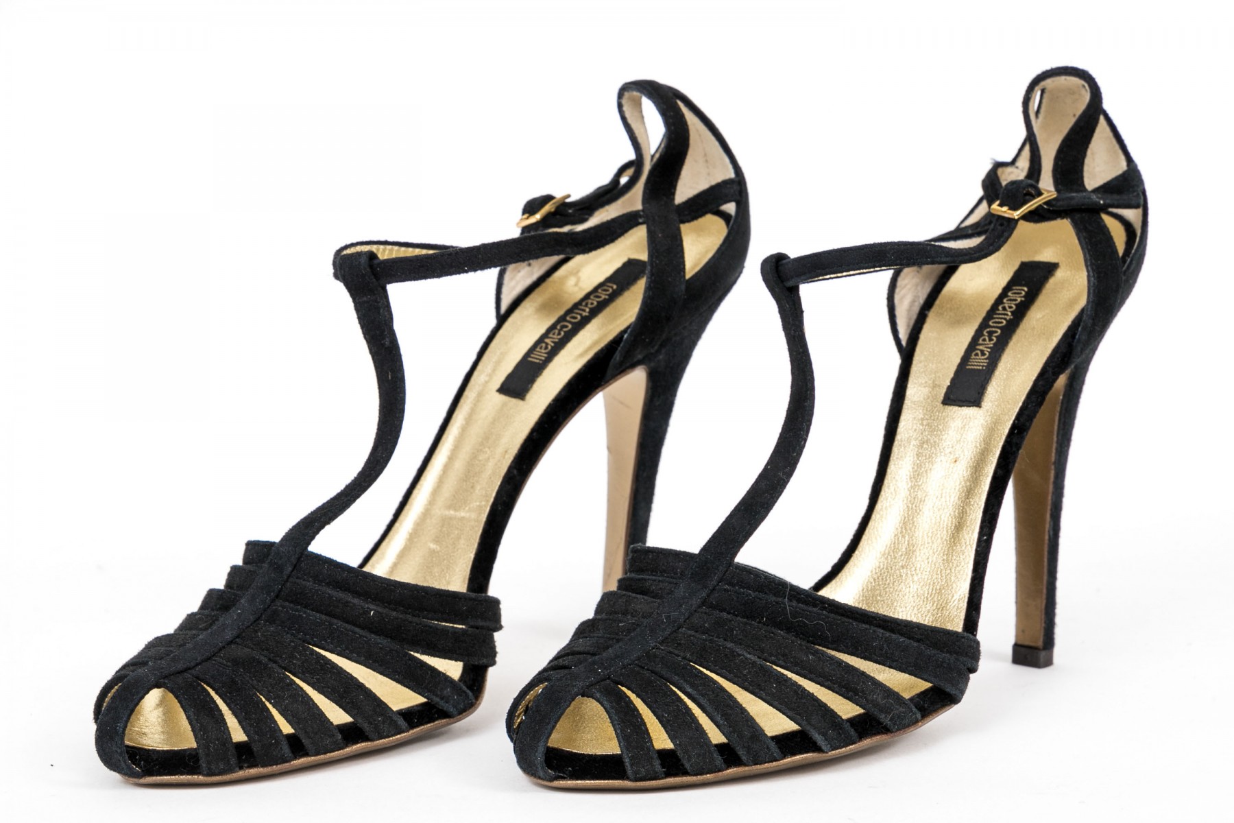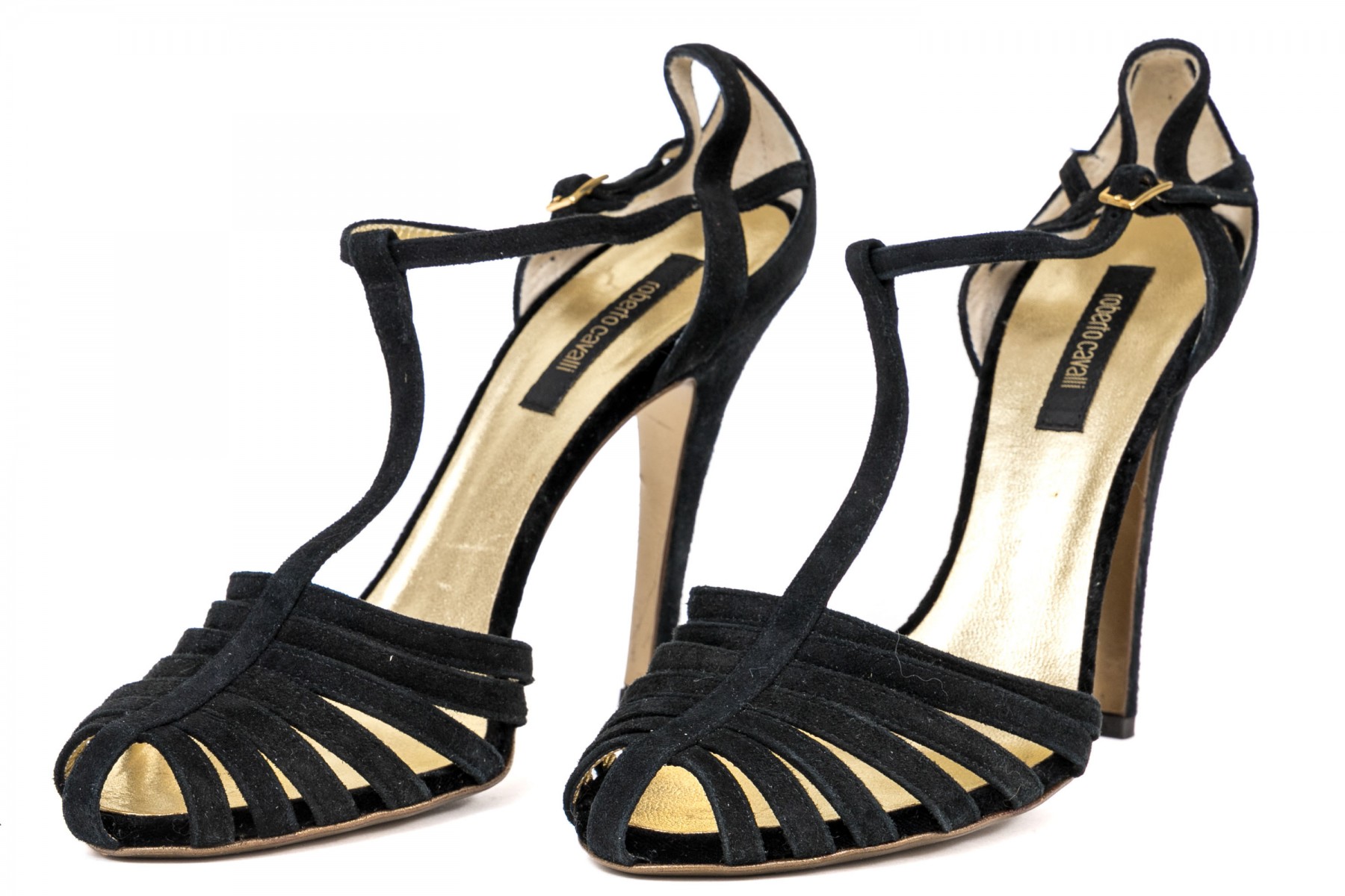 Roberto Cavalli classic black suede stilleto T-straps, size 40