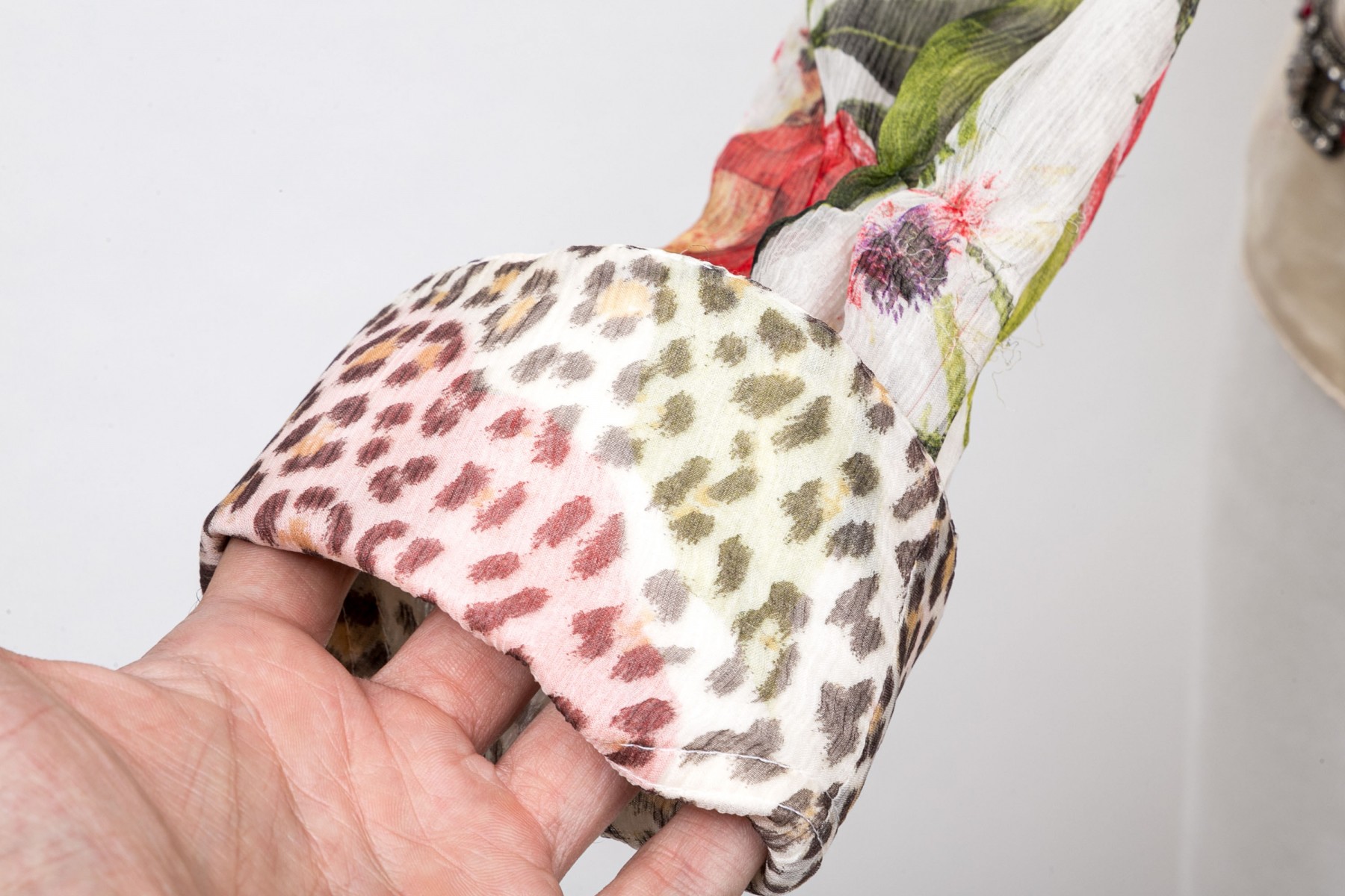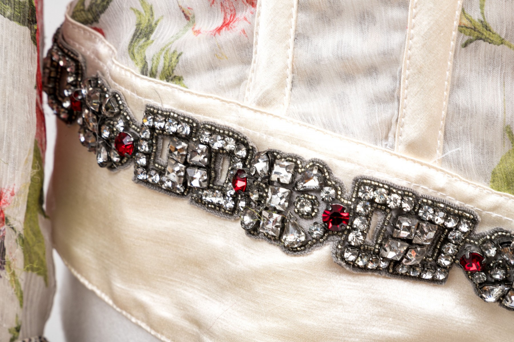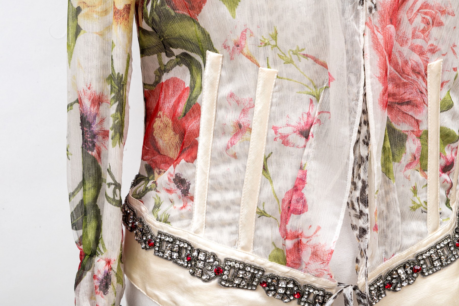 Roberto Cavalli ivory, leopard print and floral blouse, bejeweled, size 48