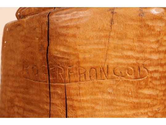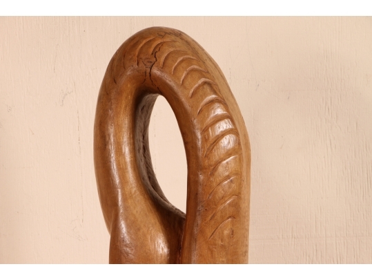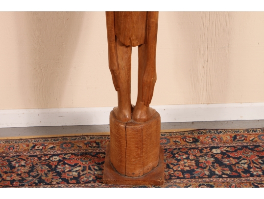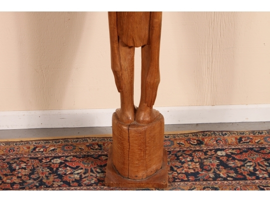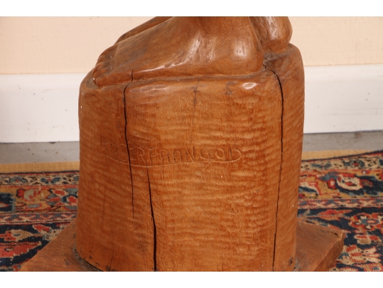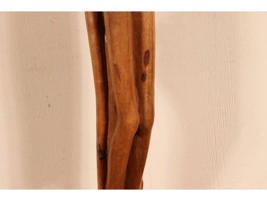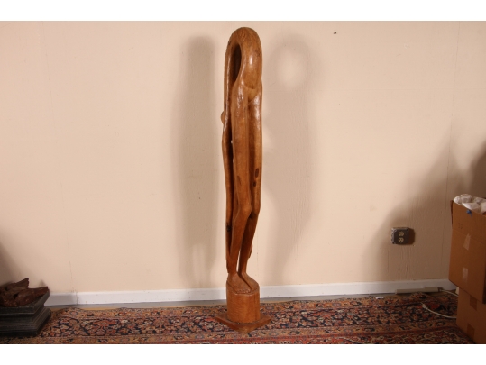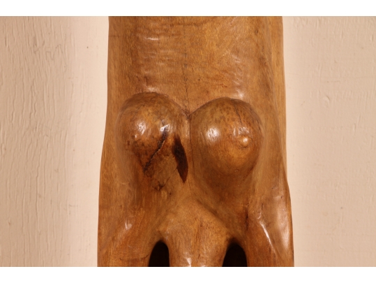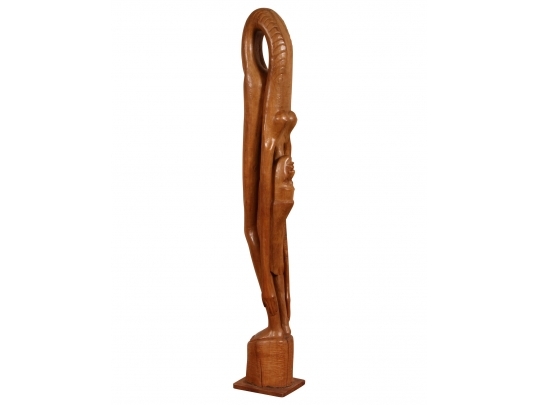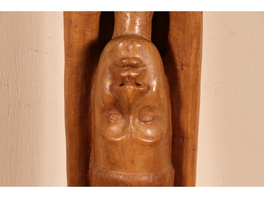 A tall and arresting Hand-Carved wood Sculpture of of an inverted woman. Strongly carved and in very good condition with only acceptable age-related wear including some stable checking to the wood. Signed on base. Nice original patina. Roger Francois was a celebrated Haitian artist who both sculpted and painted, his recurring theme were the Women of Haiti.