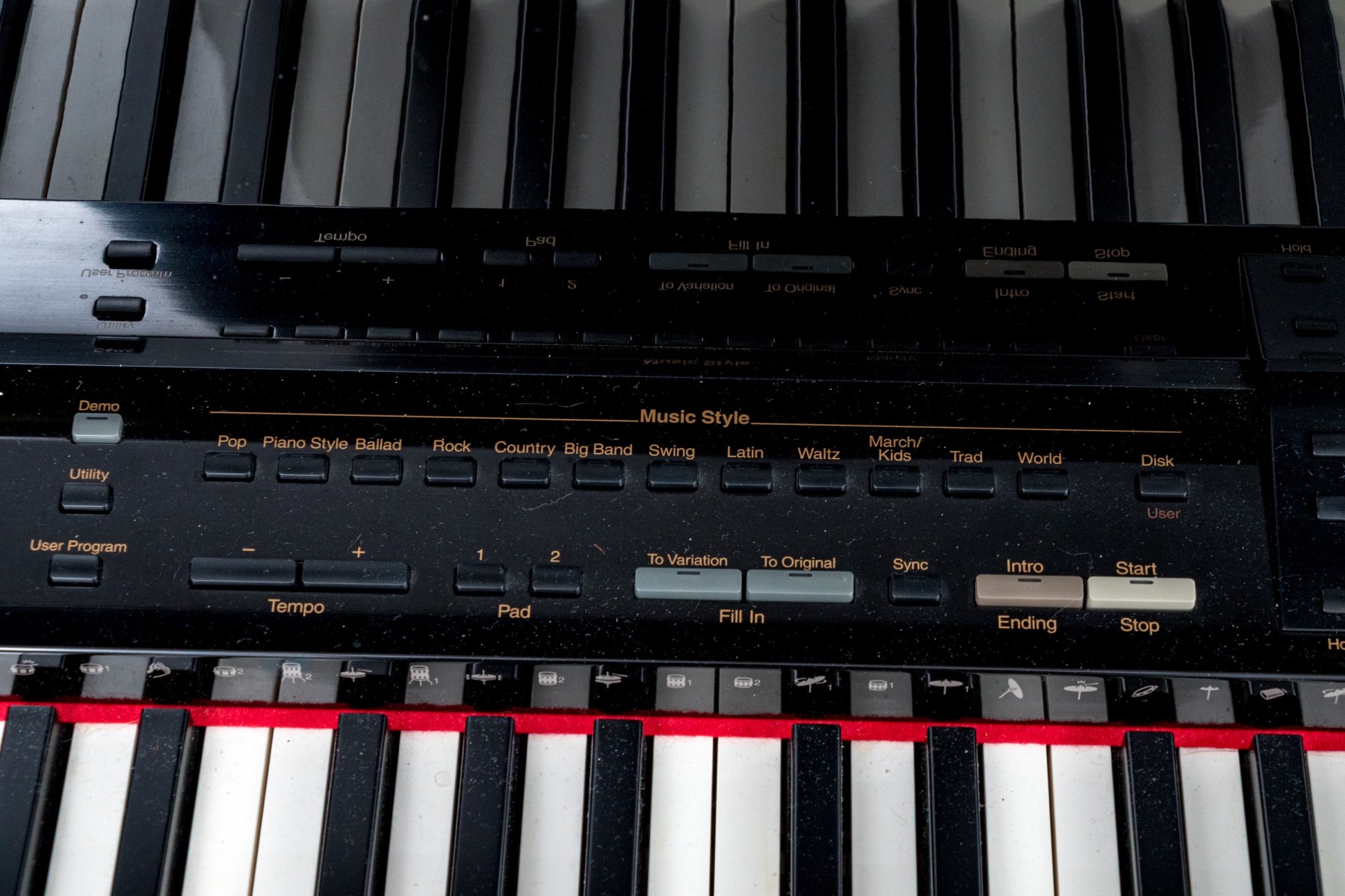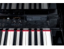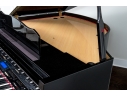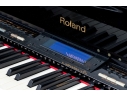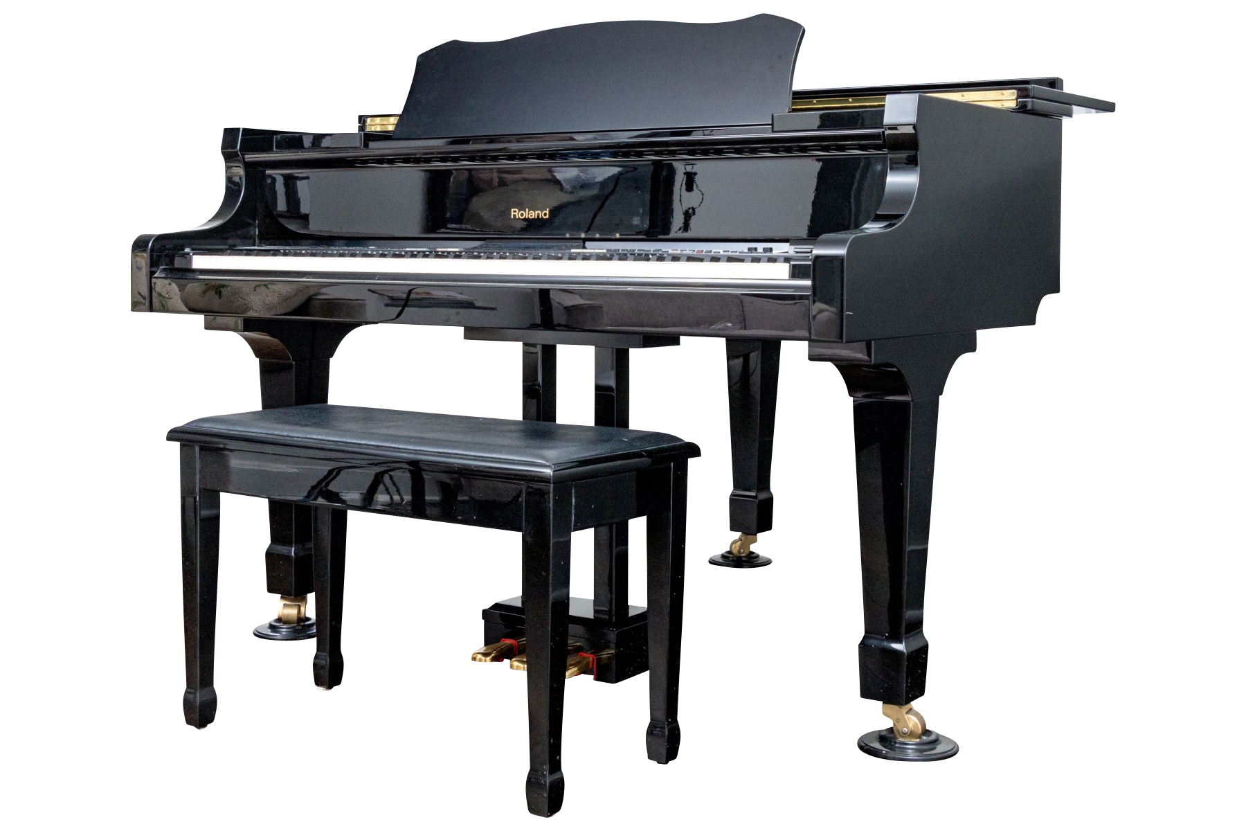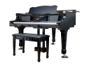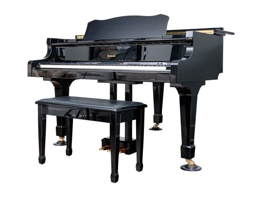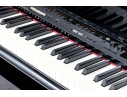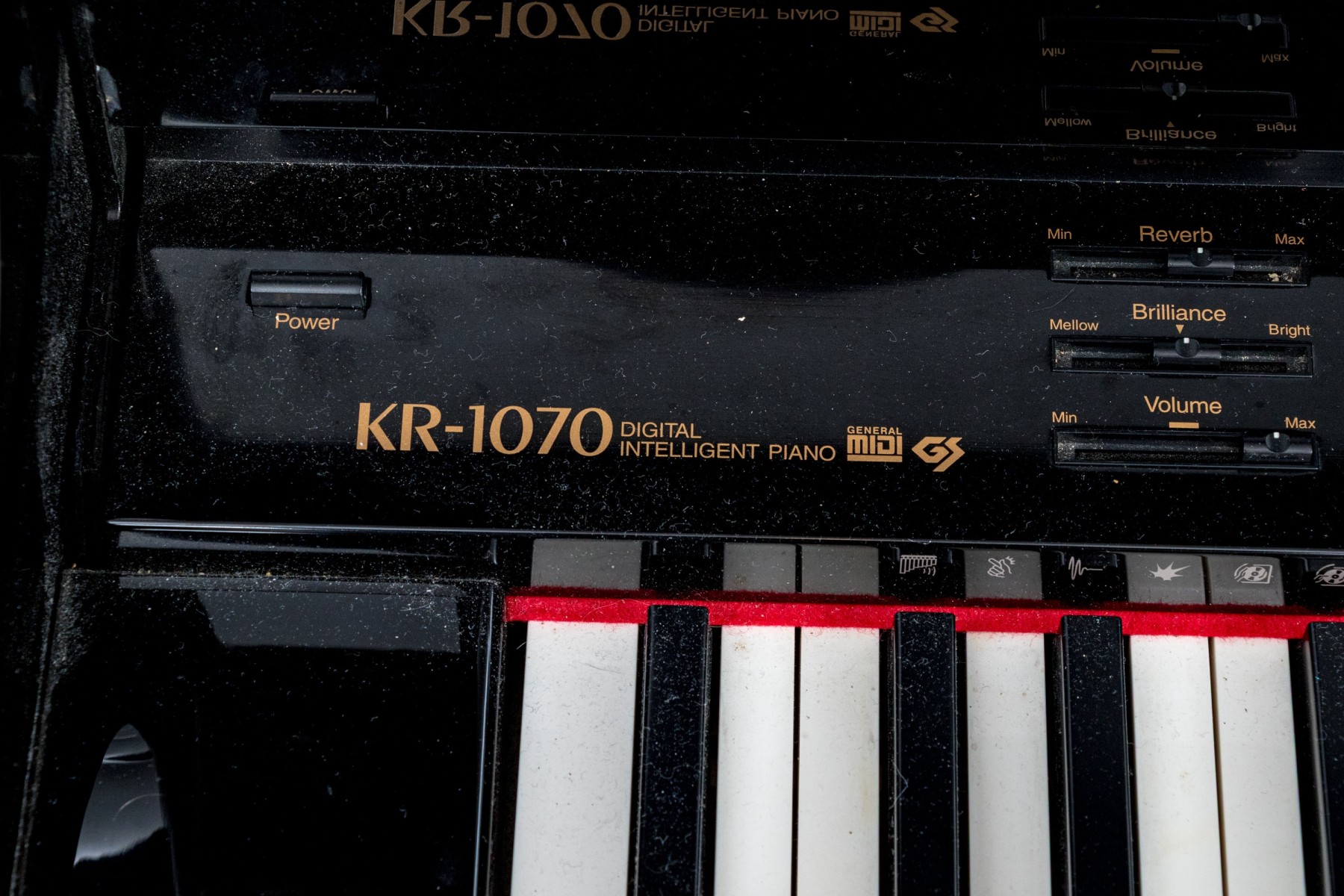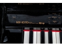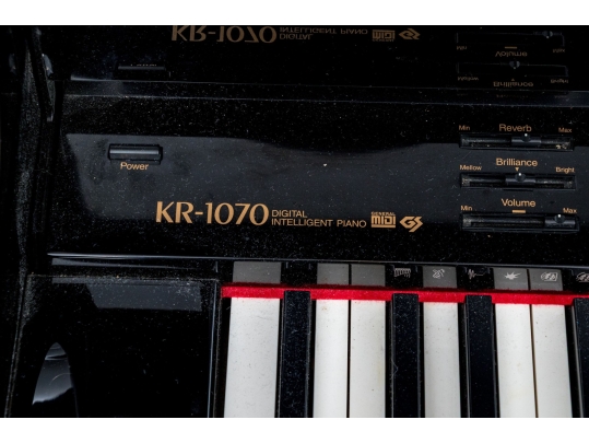 The digital intelligent piano features an "88-note keyboard, with 64-note polyphony and 60W sound system". The piano which comes with a leather upholstered stool stands on three legs with a black laquered finish with brass hardware and flourishes. The digital piano offers a range of features comprised of a variety of piano tones, organ sounds, an automatic accompaniment along with built-in composer. Additionally, the Roland KR-1070 Digital Intelligent Piano has the ability to simulate different piano models.