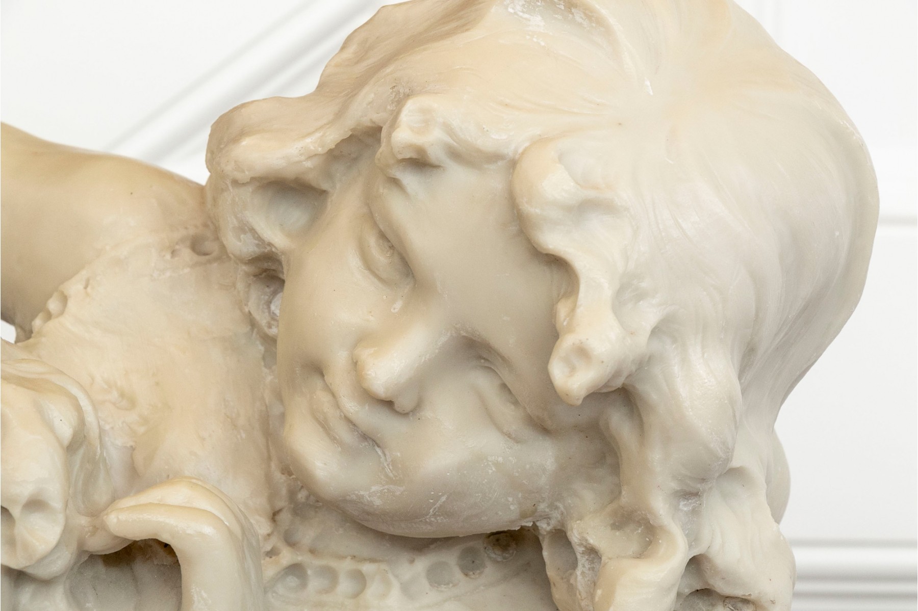 This Italian Marble / alabaster Statue Sculpture by Romanelli captures the innocence and joy of childhood in exquisite detail.